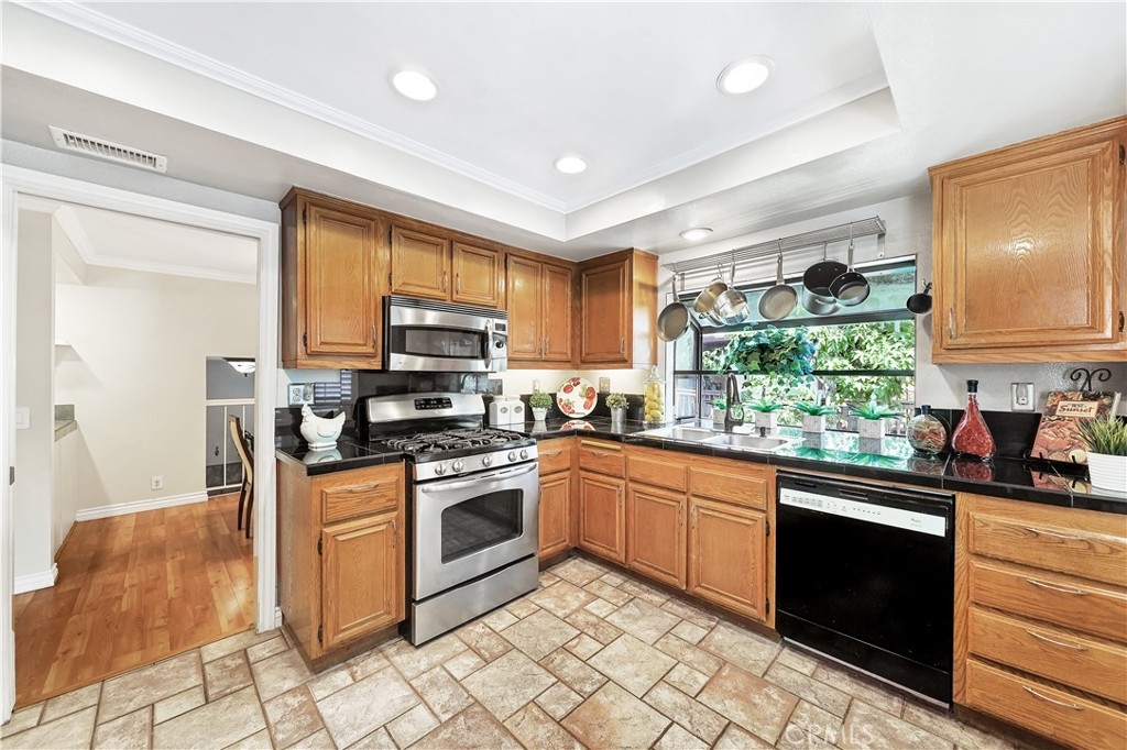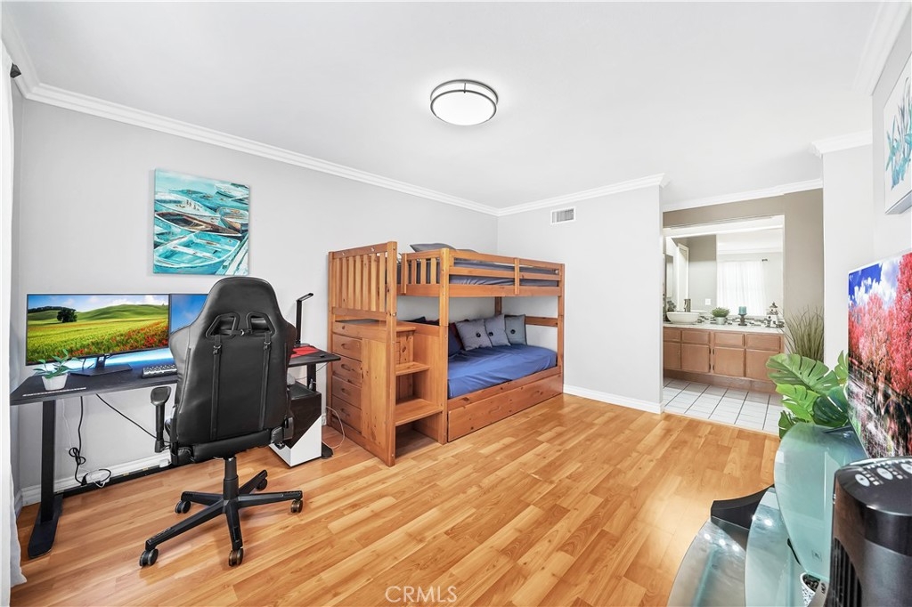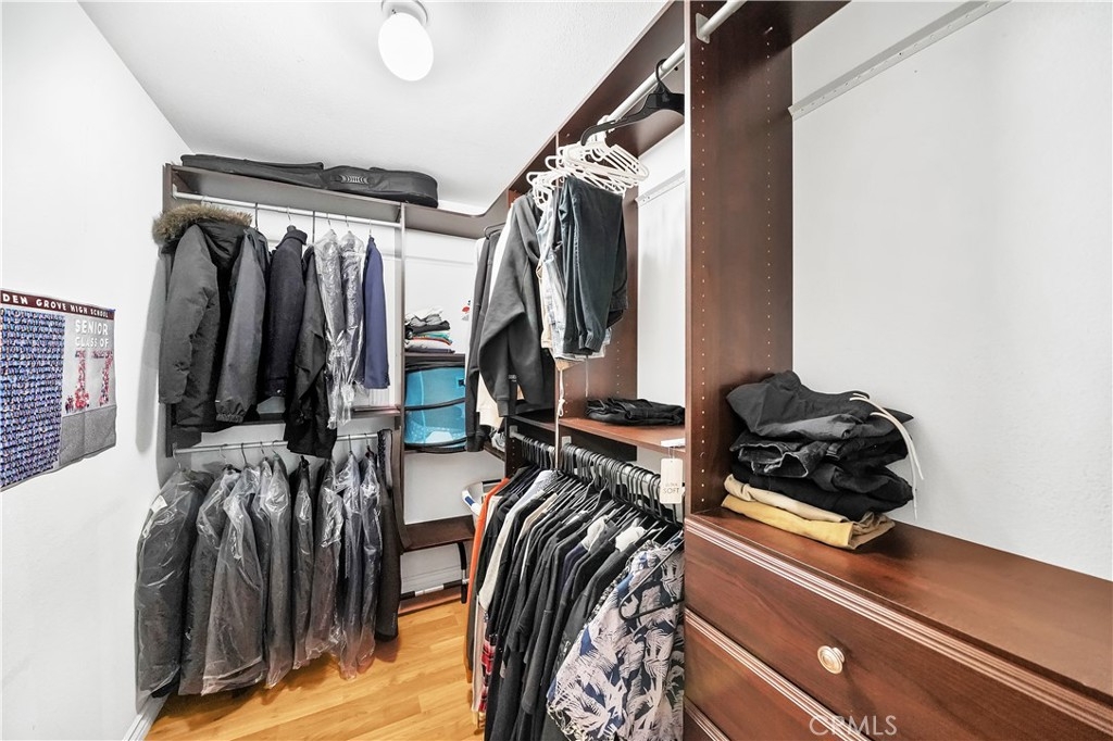 1,819 Square Foot Acacia Park End Unit Townhome - These Rarely Come on the Market! This is the Largest Unit in this Beautiful Well Maintained Gated Community with 3 Bedrooms (2 are Master Suites with Walk-In Closets), 3 Baths, and 2 Car Direct Access Garage. This Stunning, Very Spacious Townhome Features: Central A/C, Wood Laminate Flooring Throughout, Dual Pane French-Style Windows & Sliders, 2 Bay Windows, Skylight, Recessed Lighting, Crown Molding, and Designer Paint. It Boasts a Large Open Living Room with Raised Hearth Fireplace with Cable Connections Above and Slider to a Balcony/Patio, Full-Size Formal Dining Room with Built-In Wine Bar, and an Upgraded Kitchen with Granite Countertops, Tile Flooring, Garden Window, Stainless Appliances (Gas Stove, Dishwasher & Microwave), and a Bay Window Eat-In Breakfast Nook. Also on the Main Level is a Bedroom and Full Bathroom. Upstairs are 2 Master Suites each with Custom Organized Walk-In Closets. One Bathroom is Upgraded with Marble Tile Countertop and a Vessel Sink. An Inside Laundry Area is Also on the Upper Floor with a Large Skylight that Floods the Entire Home with Natural Light. Enjoy the Wonderful Amenities this Community has to Offer - Lush Beautifully-Kept Grounds with Walking Paths, Association Pool, Spa, and Clubhouse. It is Ideally Located Steps to the Park & Strawberry Festival, Across the Street from Community Center Park, GG Main Library, Coastline Community College, and Near Historic Main Street with Many Stores and Restaurants. Also Short distance to the 22 & 5 freeway, Beach, Disneyland, and Much More!! Truly a Great Place to Live!!