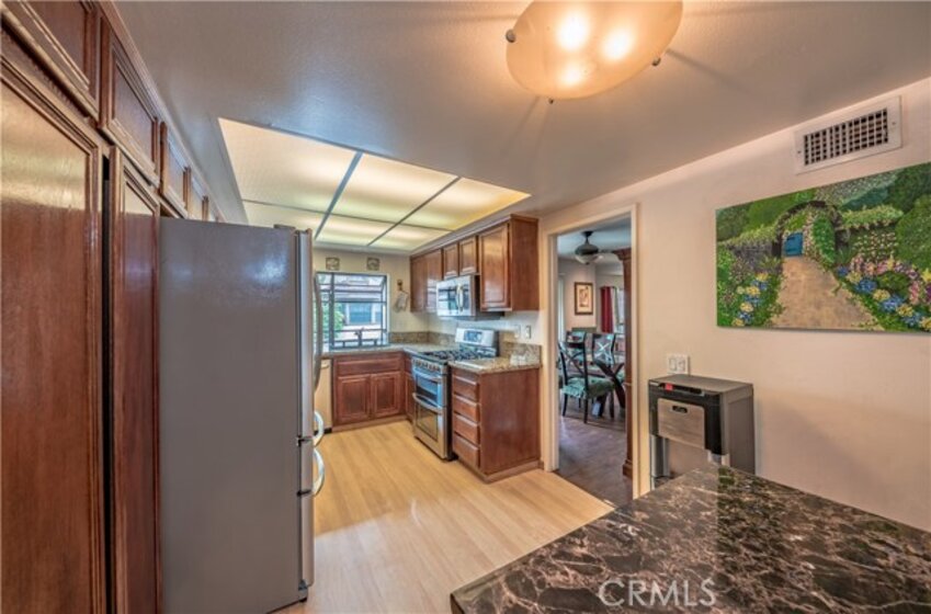 Location, Location, Location! Located in the Acacia Park gated community. End unit townhome with 2 bedrooms, 2.5 baths and 2 car attached garage access. These homes rarely come on the market and is probably one of the most desirable and well maintained condominium developments in Garden Grove. This beautiful unit has over $100k in renovations and upgrades including, granite counters, all windows replaced 5 years ago, both sliding doors replaced recently, scraped ceilings, nice wood floors, new water heater, newer AC, new sinks, toilets, faucets and more. All the major items have been updated, this is a solid, well upgraded property. This spacious open floor plan is perfect for anyone and the cozy fireplace in the living room makes it a great space to relax and enjoy friends and family. Dual master bedrooms are located upstairs with walk-in closets. Very close to Historic Main Street, parks, activities, dining, shops and more.