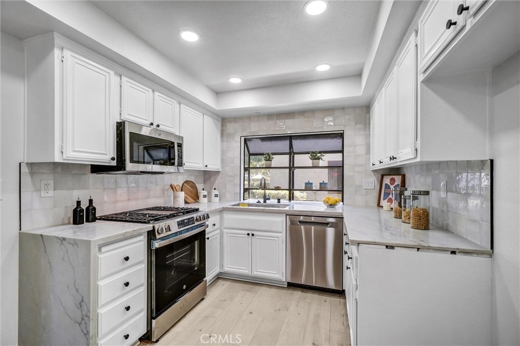 Spacious Renovated 3-Bedroom Condo in Prime Garden Grove Location! Welcome to this beautifully renovated 3-bedroom, 3-bathroom condo offering over 1,700 sq ft of comfortable living space in a quiet and well-maintained community. This move-in ready home features a desirable open layout, with one bedroom and a full bathroom conveniently located on the main floor—ideal for guests or multi-generational living. Enjoy a completely updated interior with new vinyl flooring throughout, new light fixtures, recessed lighting, mirror closet doors, and a stylish wet bar in the living area—perfect for entertaining. The large kitchen has been upgraded with brand new stainless steel appliances, quartz countertops, and a separate dining area for added functionality. Additional highlights include a new bathroom vanity in all baths, central AC, and an attached 2-car garage for direct access and extra storage. This well-kept community offers fantastic amenities, including a pool, hot tub/spa, playground, and plenty of guest parking. Ideally located near SteelCraft, Garden Grove Main Street, South Coast Plaza, restaurants, shopping, and easy freeway access for commuting. Don’t miss this rare opportunity to own a spacious, upgraded condo in one of Garden Grove’s most convenient neighborhoods!
