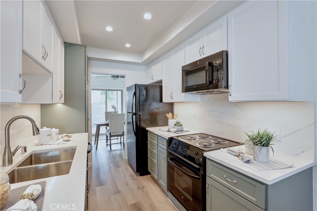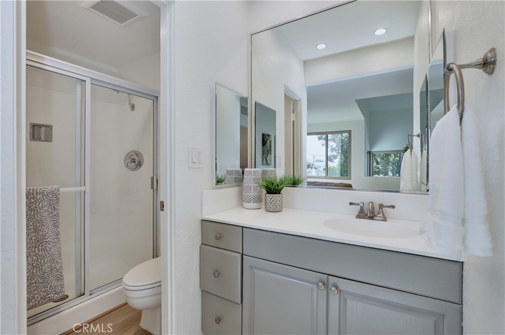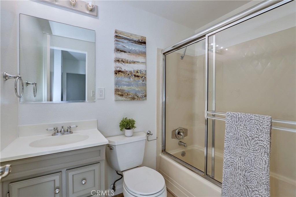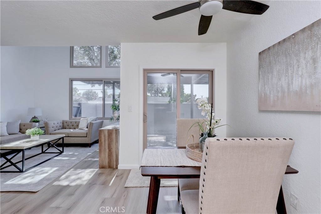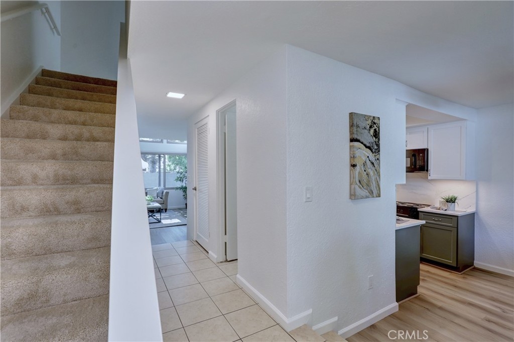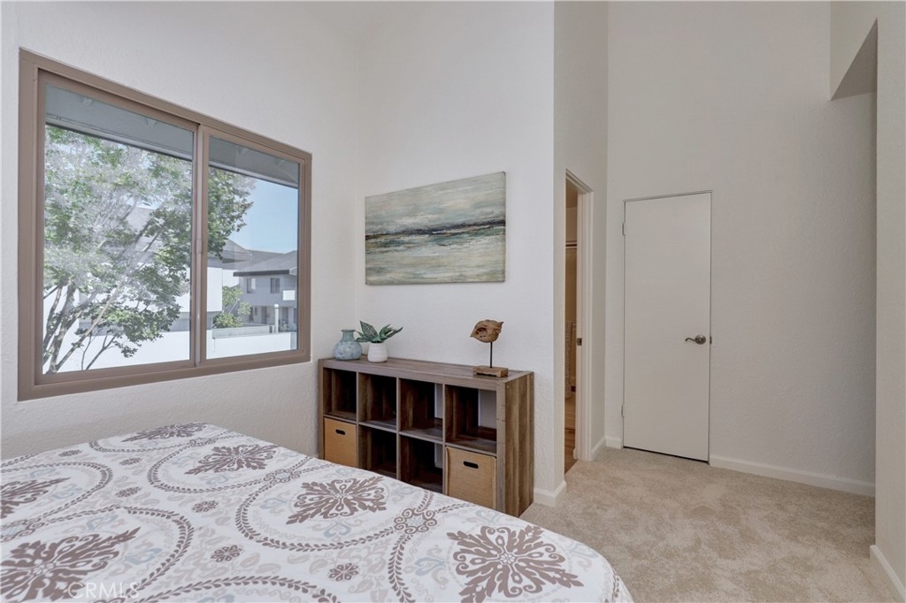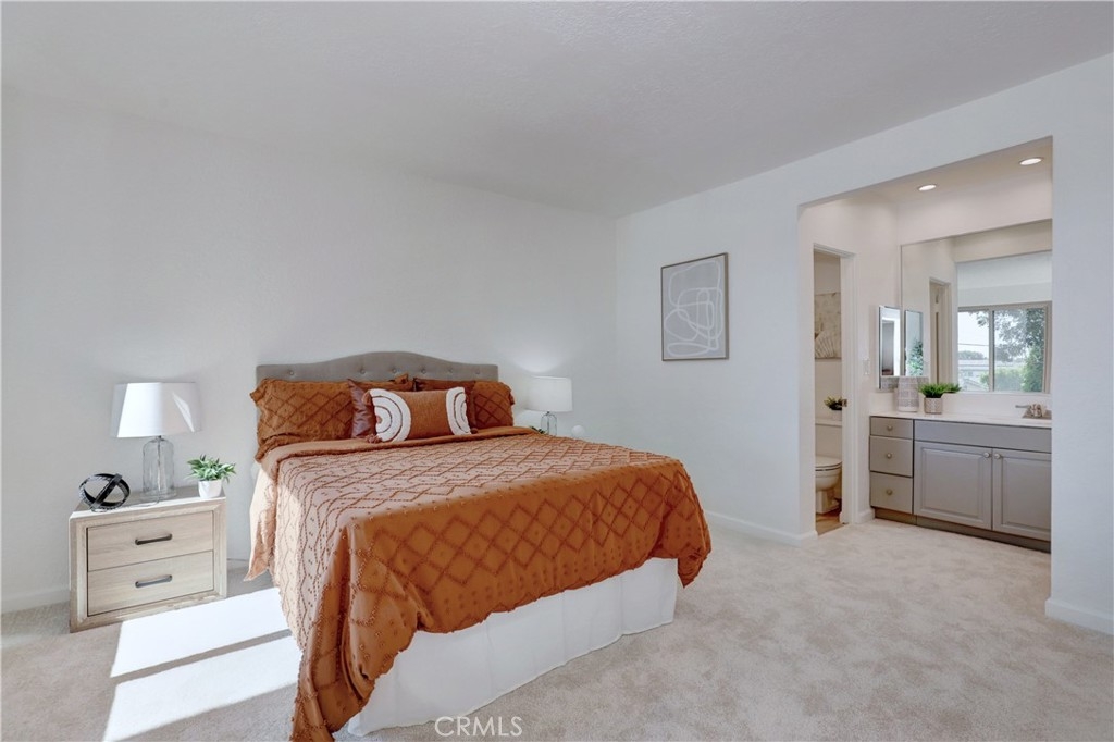 Welcome to this beautifully updated 2-bedroom, 2-bathroom corner-unit condo offering comfort, style, and convenience. This two-story home features soaring ceilings in the family room, creating a bright and airy atmosphere filled with natural light. Recent upgrades include new laminate flooring, plush new carpet, Corian kitchen counters, and modernized bathroom vanities. This community was created by renowned architect Frank Gehry. The spacious primary bedroom boasts a walk-in closet and a private en suite bathroom. Enjoy the convenience of inside laundry and an open, functional layout perfect for everyday living. Community amenities include a sparkling pool and relaxing spa, with assigned parking spot. Ideally located near shopping, dining, and major freeways—this home combines tasteful updates with an unbeatable location. Don’t miss this opportunity!
