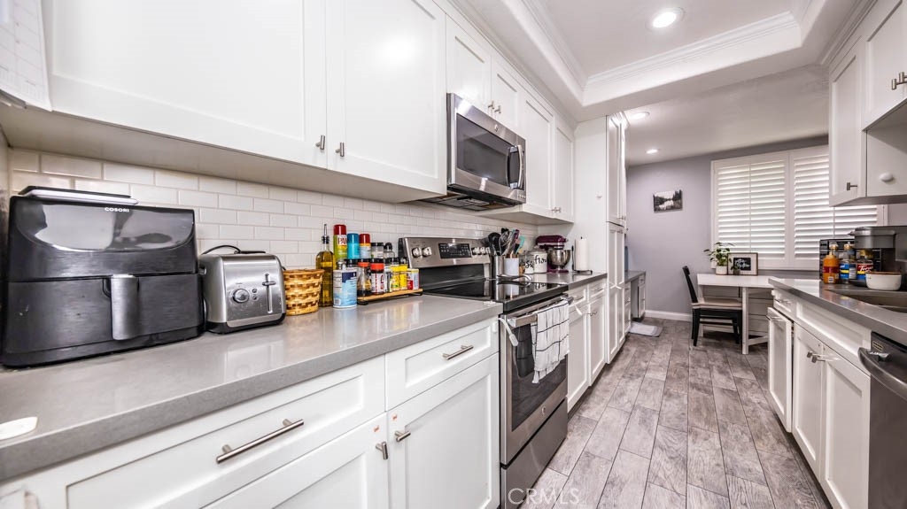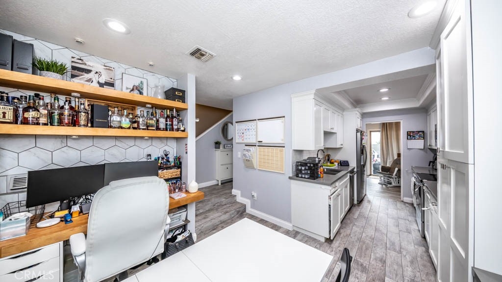 Welcome to the sought-after Bixby Green Community designed by the world-renowned architect Frank Gehry. Located in the beautiful city of West Garden Grove and centrally located to all major freeways and award-winning schools. 12585 Cluster Pines Road has everything you are searching for and with over 1300 sq. feet, this 2 bedroom/ 2.5 bath end unit is a rare find. The recently remodeled kitchen includes white shaker cabinet, quartz countertops and stainless steal appliances. The vaulted ceilings, along with the floor to ceiling windows allow for natural light to shine throughout the day. Included in this unit are double paned windows and plantation shutters which provide privacy, allowing you to enjoy your oversized living room. The outdoor patio also provides a nice breeze on those hot summer nights. No detail was overlooked by Mr. Frank Gehry. Come and experience the Bixby Green Community for yourself, we promise it will not disappoint!!!