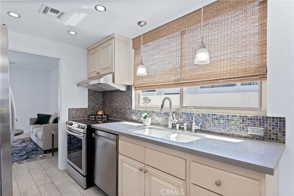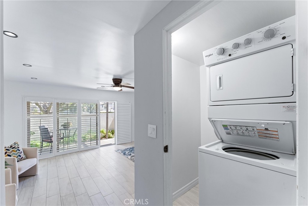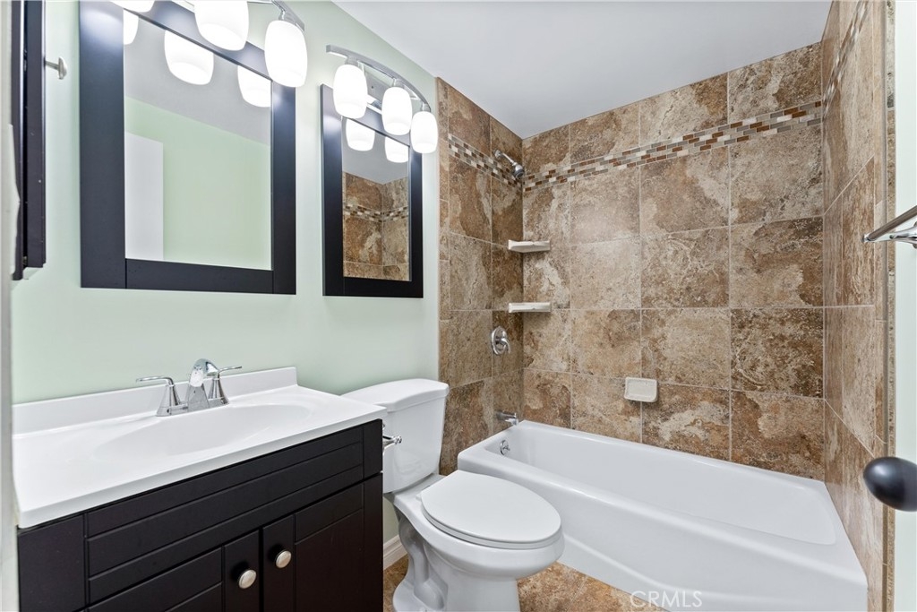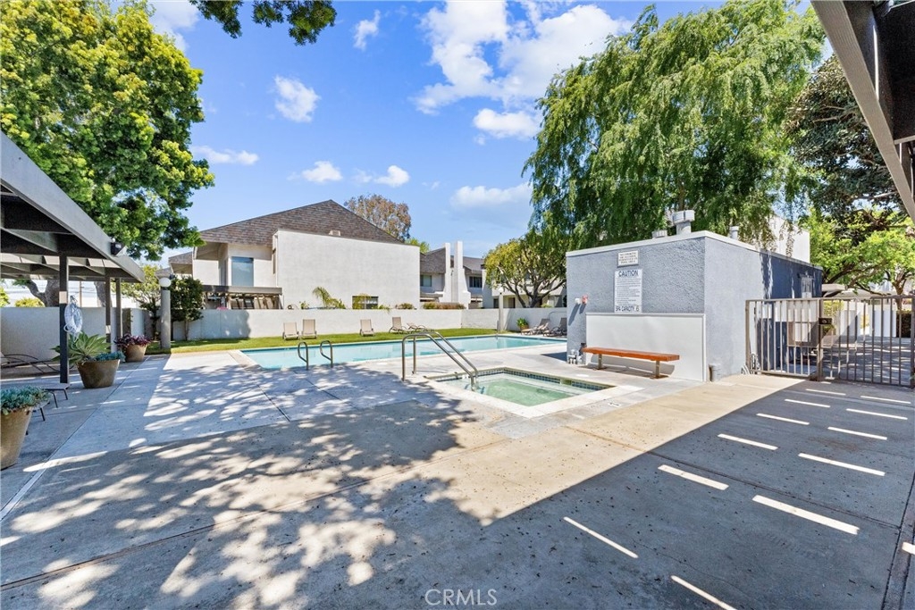 Welcome to the beautiful gated community of Bixby Green, ideally situated near award-winning schools, with convenient access to highways and shopping centers, emphasizing its perfect setting for family living. This end-unit treasure features 3 bedrooms, 2 full bathrooms, and an elegant half bath on the main level, all contributing to an atmosphere of comfortable elegance. Upon entering, you're welcomed by lovely tile plank flooring leading to an upgraded kitchen featuring newer appliances and beautiful backsplash. Adjacent to the kitchen is a cozy dining nook, ideal for shared meals and memories. The expansive living area flows effortlessly to a lovely private gated patio, creating a private oasis for relaxation and entertaining. The home is also equipped with a first-floor updated laundry center, including a newer washer and dryer. Ascending the staircase, adorned with polished engineered wood flooring, you'll find three spacious bedrooms with the wood flooring throughout. The primary suite features a beautifully updated en suite bathroom. The secondary bathroom has also been tastefully updated and features a shower in the tub, perfect for families. The HVAC system has all been replaced within the past 3 years, adding to the convenience and comfort. Residents enjoy the benefits of newly updated amenities including a refreshing community pool, soothing jacuzzi, beautifully landscaped gardens, and peaceful walkways, perfect for relaxing strolls. The HOA recently completed the following updates: exterior paint and stucco, veranda repairs/replacements, new concrete work and plaza decks, new roofing throughout the complex, new wood cabinetry for garage storage, new pool/spa equipment and pool area furniture, and exterior landscaping. HOA covers Water, Trash and Sewer! This Bixby Green residence marries the allure of modern updates, comfort, and a prime location in a sought-after end-unit.