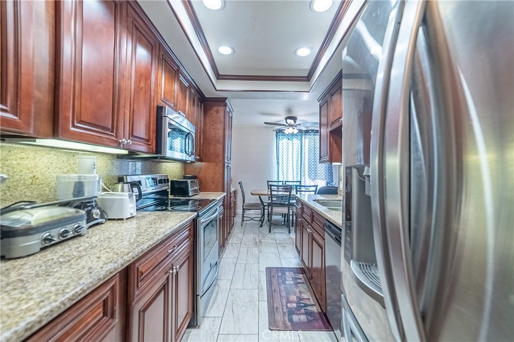 Recently remodeled Bixby Green Townhouse. This 3 bedroom and 2.5 bath home features a very open floor plan. Large living room and dining area as well as a dinette area. The kitchen with granite counter tops newer cabinets are tastefully remodeled and feature stainless steel appliances. The fridge is part of the sale, goes great with the kitchen. Down stairs indoor laundry. Washer and dryer included in the sale. This home is in top rated schools in Southern California. schools being (According to the Garden Grove School District information) Garden Park Elementary, Bell Intermediate, and Pacifica High School. Going back to the features; central heat and A/C, wood floors through out and ceramic tile kitchen and bath floors. The bathrooms are completely re-done with ceramic tile bath stalls and shower enclosures. This is a must see home.