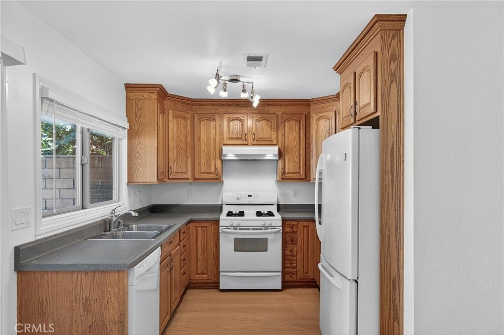 Priced below it's market value of $620,000, this bright and beautiful 2 bedroom, 1 & 1/4 bath home has been recently remodeled and is read for it's new owners! Boasting a laundry list of upgrades including new flooring throughout, baseboards, interior paint, bathroom vanities, mirrors & faucets, door hardware, commodes, lighting, window shades, switches and outlets, this is truly a sparkling gem in a highly desirable, cozy and quiet community. In addition, all of the exteriors of the buildings have been recently repainted by the HOA, visually refreshing the entire community on the outside along with very well manicured grounds. Plenty of green space also allows for nice evening or morning strolls, or to walk your pet. Enjoy the sparkling community pool & clubhouse as well, all contained in a well-established neighborhood with award winning schools. Enjoy quiet evenings lounging on your covered back patio with friends and family, just steps away from your 2 car detached garage, instead of having to walk to rows of assigned garages like other communities. This community is in very high demand with most upgraded units lasting only a few days on the market. Call to schedule your private showing today!