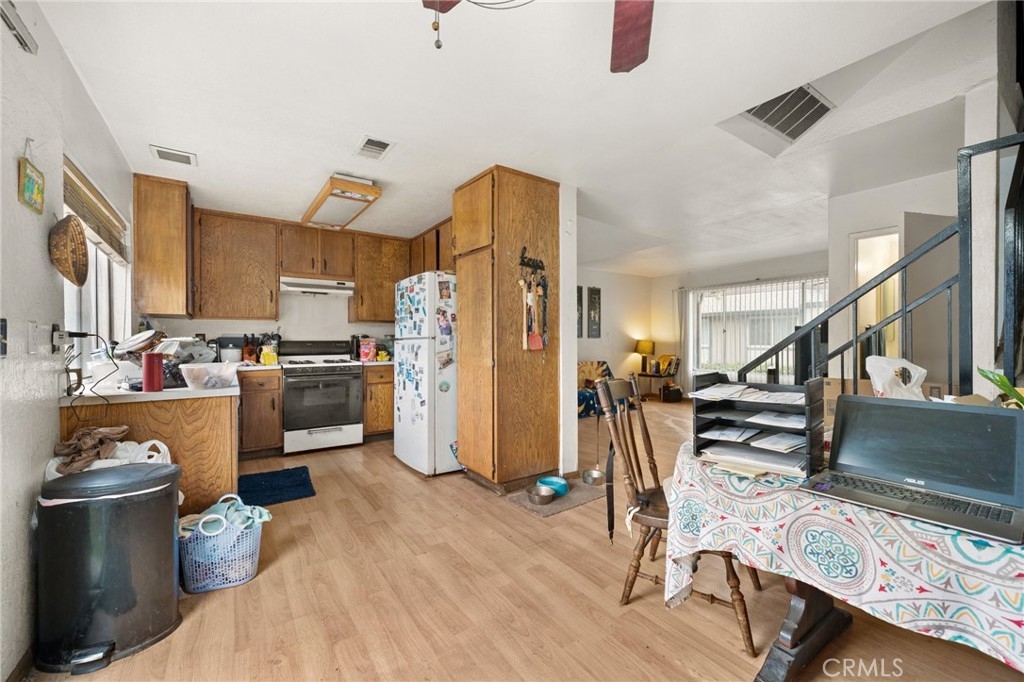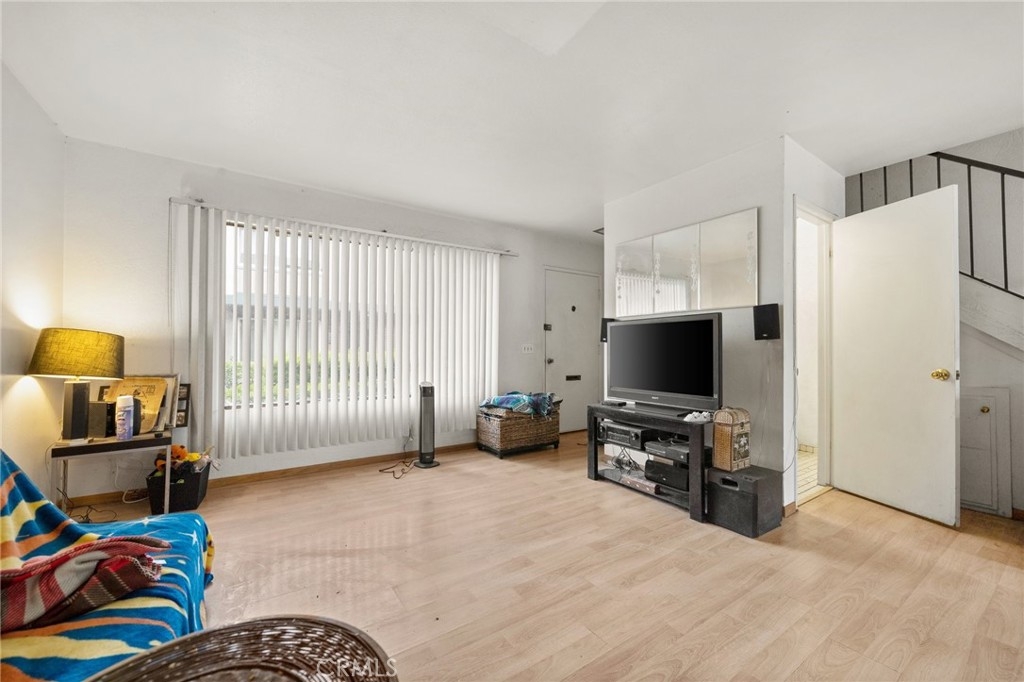 Bright and welcoming, this Garden Grove townhouse offers comfortable living in a convenient location! From the well-maintained grounds, enter a lively interior where neutral tones pair nicely with hardwood-style floors. A well-sized window brings natural light into the open living room - a great spot to mingle with visitors. On warm days, turn the ceiling fan on in the dining area or open the sliding glass door to let in the breeze. Ample cabinetry and appliances in the kitchen ensure the cook is well-equipped. Retire to the generous proportions of your three sunlit bedrooms, including one featuring an expansive walk-in closet. Whether you want to read a book in privacy or dine alfresco as the sun sets, look no further than your outdoor patio with greenspace. A community pool entices you to take a refreshing dip. As a bonus, there’s a large 2-car garage with laundry hookups. Enjoy easy access to the community playground, parks, schools, dining, shopping, and the freeway. Come take a tour before the opportunity passes you by!