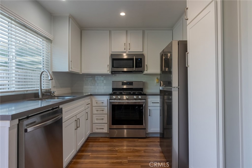 Live Auction! Bidding to start from $499,000! This nicely updated and very well maintained townhome will get you excited to just bring your furniture and move right in as soon as you get the keys! Quartz countertops in kitchen and both bathrooms, subway tile backsplash in the kitchen, almost brand new dishwasher, dual pane slider door and windows upstairs and downstairs, recessed lights, well maintained laminate floors throughout with carpet only in the bedrooms...all these features will make you happy you're getting a ready-to-move-in home. Great floor plan, with large bedrooms and large full bathroom upstairs, very private backyard patio leading you to the two-car garage where your laundry units are located. Quiet community with playground and pool. You'll be very happy to call this wonderful property your home...
