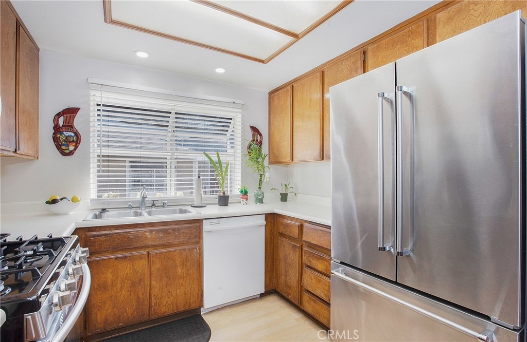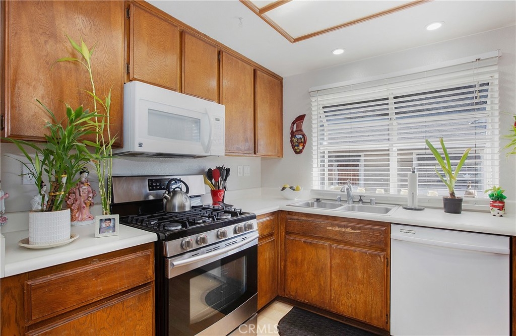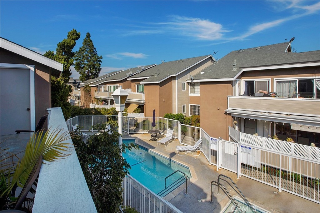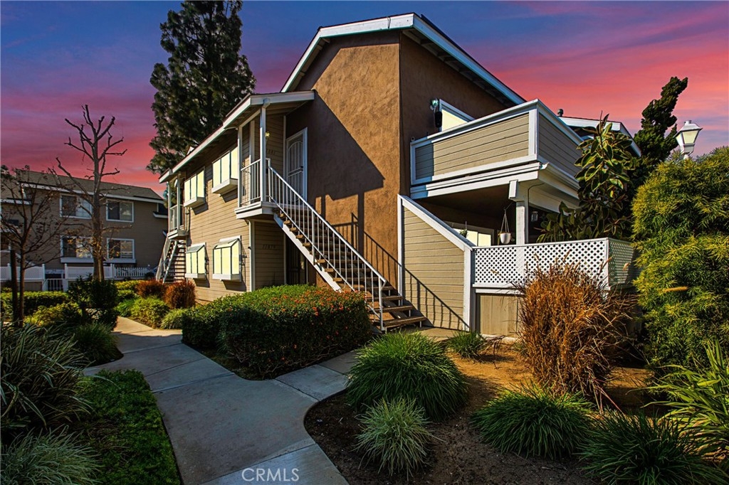 This alluring 2 bedroom 2 bath upper-end unit in the gated community of Brookhaven Circle is a must-see. This turn-key home provides an open floor plan, vaulted ceilings, new recessed lighting throughout, and a large private balcony overlooking the pool and spa! The master bedroom boasts vaulted ceilings, large closets, and an en-suite bathroom. The secondary bedroom also conveniently has its own private bath, with sliding glass doors leading to the balcony. HOA includes water and trash, access to the pool/spa, and manicured walkways around this quaint and secure community. Centrally located in Garden Grove, close to schools, several shopping centers, and entertainment, this unit will not last!