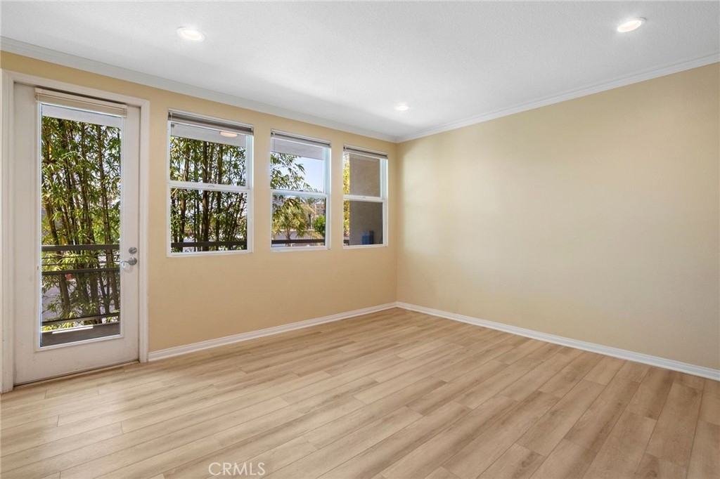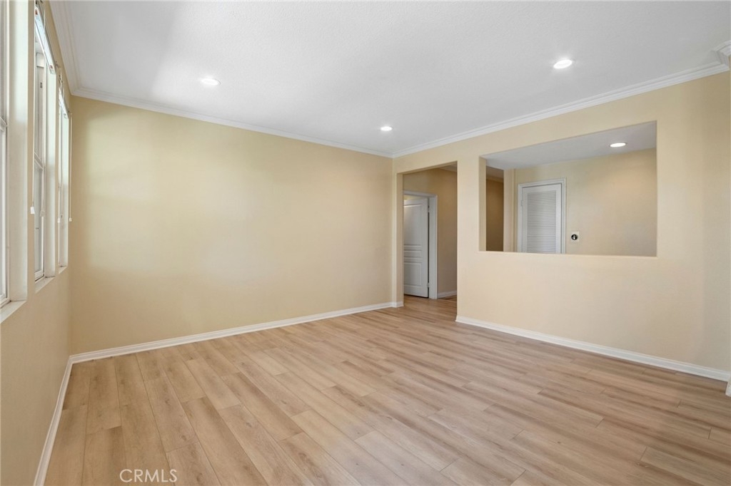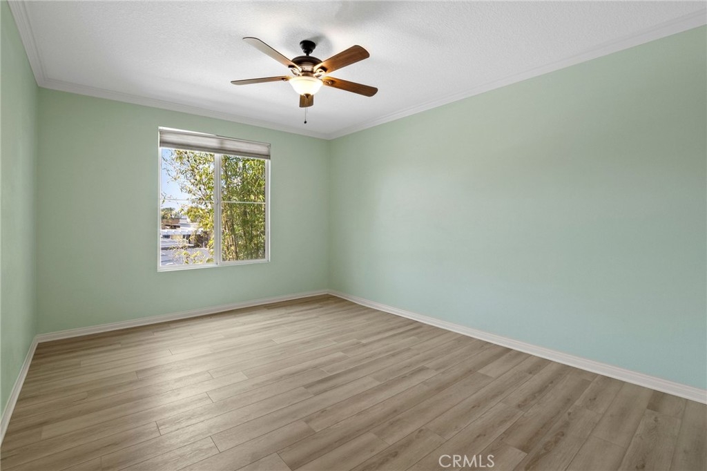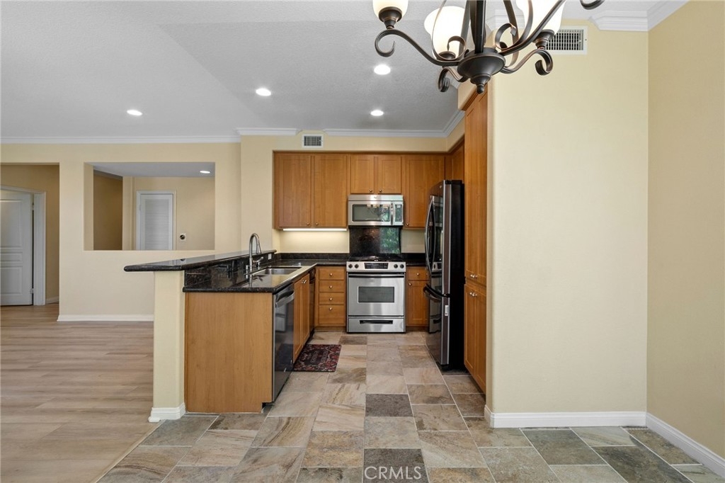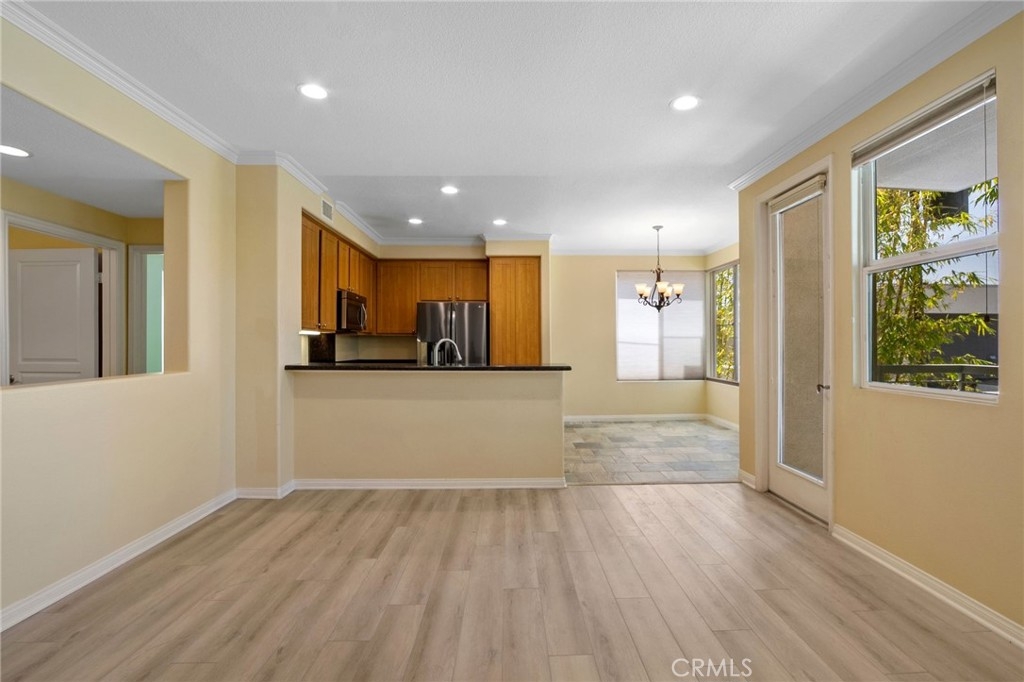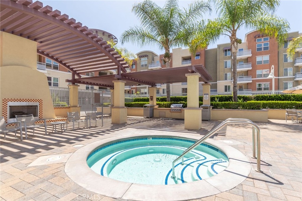 Welcome to this centrally located urban living at the gated community at Chapman Commons! This bright and light 2 bedroom, 2 bath open floor plan has plenty to offer. Located conveniently on the first floor of the community the condo faces a fountain centered courtyard just a few steps from the elevators. Brand new luxury vinyl plank flooring, dual pane windows, custom paint one year old, large baseboards, crown moldings, central heating & new AC unit 6 mo. old, inside laundry with full size stackable unit included in the sell of this home. The upgraded kitchen is adjacent to the dining area and opens up to the living room and it features dark granite countertops set over maple colored cabinets, stainless steel fixtures and appliances include double basin sink, trash compactor, dishwasher, oven with four burner stove gas stove and microwave with recessed lighting overhead. The well appointed large bathrooms have the same matching granite counter tops and cabinets as the kitchen. The sizable master bedroom has a walk-in closet and opens to the master bath with a large tub shower with sliding glass shower doors. Chapman Commons community provides amenities for you to enjoy such as a gym, clubhouse, BBQ area, pool, and hot tub. The community is also handicap accessible. Just beyond the gate is a driveway to your 2 underground parking spaces and a great storage unit as well. Added bonus the HOA pays for water and trash! Conveniently located near the 5 freeway, UCI medical center, tons of shopping & dining options in Anaheim. Not to mention Disneyland is right around the corner!