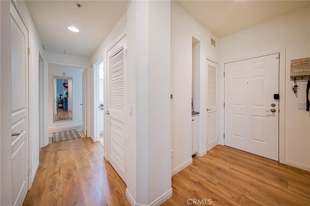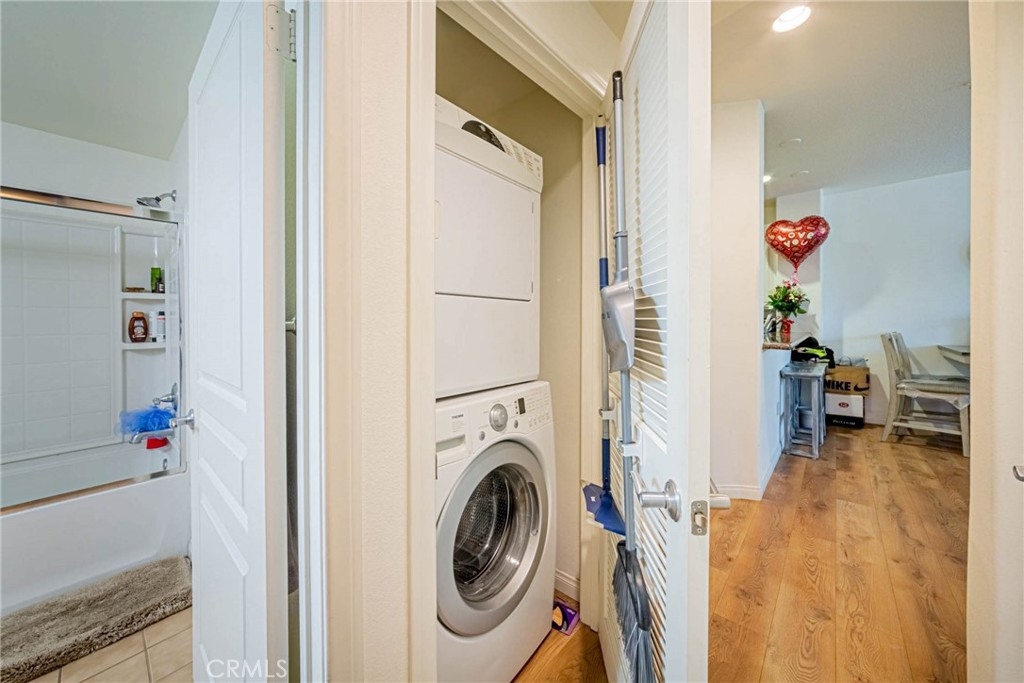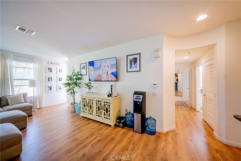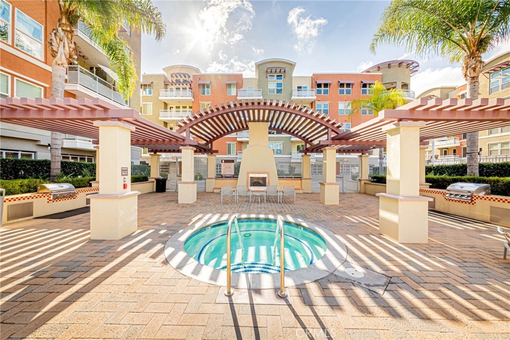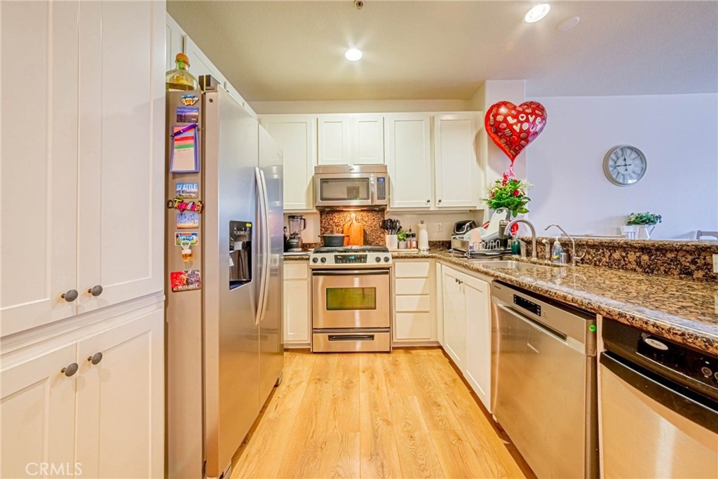 Welcome to the epitome of resort-style living at the Chapman Commons, a gated community nestled in the heart of the Grove District in Anaheim. This stunning contemporary style condo, located on the first floor, offers an array of luxurious amenities including a pool, spa, clubhouse gym, and more. The condo boasts 2 spacious bedrooms, 2 full baths, and a private balcony, all spread across 1,101 square feet of living space. As you step inside, you are greeted by laminate wood floors that flow seamlessly through the living area, leading to tile floors in both bathrooms and plush carpet in the bedrooms. The kitchen is a chef's delight with ample storage space and is conveniently located adjacent to the open dining and living room area. The condo also features a compact laundry room, a full restroom with a tub shower, and two bedrooms, one of which is a master suite with a walk-in closet, a large restroom, and direct access to the balcony. The condo's location is a major highlight, with proximity to major Orange County attractions like Disneyland, Angel Stadium, Honda Center, Anaheim Garden walk & Downtown Disney, the Main Place Mall, and the UCI Medical Center. Easy access to the 5, 22, and 57 freeways makes commuting a breeze. The rent includes water and gas, and the unit comes with 2 car parking spaces and additional storage. Experience the comfort of a vacation resort in your very own home at Chapman Commons. The gated community offers a swimming pool, hot tub, outdoor fireplace, barbeque, and seating all around the pool area. The clubhouse features a kitchen, game room, and a private gym on the 2nd floor. This beautiful single-level condo, built in 2007, showcases an open floor plan with granite counters, stainless-steel appliances, new wood flooring, and neutral paint colors. The luxurious master retreat includes a well-appointed master bath with a soaking tub, granite-topped vanity, and a walk-in closet. The condo also includes 2 assigned parking spaces & extra storage in the parking garage. Association dues cover trash, water, sewer & gas. Don't miss this opportunity to live in a resort-like community, just minutes away from all the action.