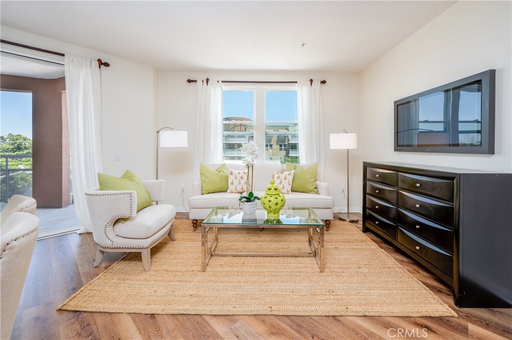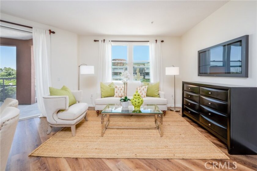 BREATHTAKING VIEWS SURROUND THIS 3rd FLOOR,MOVE IN READY UNIT FEATURING 3 BEDROOMS & 2 BATHROOMS LOCATED IN CHAPMAN COMMONS.A COMMUNITY BUILT & DEVELOPED BY D.R. HORTON W/ ULTRA MODERN AMENITIES.RECENT UNIT REFINEMENTS INCLUDE BRAND NEW LUXURY VINYL PLANK WOOD FLOORS IN THE LIVING ROOM & PLUSH CARPETING IN THE HALLWAY & 3 BEDROOMS.INTERIOR WALLS & BASEBOARDS HAVE BEEN REFRESHED & REPAINTED.EXPERIENCE EASY ELEGANCE UPON ENTRY AGAINST BRIGHT PICTURESQUE SURROUNDINGS.WELL LAID OUT CERAMIC TILES WELCOMES YOU INTO THE OPEN & FUNCTIONAL SPACED KITCHEN ACCENTUATED W/ STAINLESS STEEL APPLIANCES AGAINST SLEEK THERMA-FOIL FINISHED CABINETS.A CENTRAL KITCHEN ISLAND LENDS ADDITIONAL WORK SPACE OR TABLE FOR QUICK EVERYDAY MEALS.CLEAN LINES SEPARATING ALL SPACES ALLOWS FOR COMFORT & EASY DECORATING.ETHEREAL TRITE WHITE WALLS EXUDE SERENITY & CALM.THE PRIMARY BEDROOM EXTENDS TO A BALCONY/PORCH THAT ALLOWS HOMEOWNERS TO ENJOY LOOKING OUT TO THE ASSOCIATION POOL & BBQ AREA.2 SECONDARY BEDROOMS ARE SPOTLESS & SPACIOUS W/ FULL CLOSET SPACE.ALL COUNTER TOPS ARE MATCHING GRANITE.THE INSIDE LAUNDRY CAN ACCOMMODATE FULL-SIZED WASHER & DRYER,TUCKED AWAY IN A SEPARATE CLOSET.THE UNIT IS PRE-WIRED FOR AT&T U-VERSE.A COZY LIVING & DINING COMBINATION EXTENDS TO A COVERED BALCONY TO ENJOY CITY VIEWS,DISNEYLAND FIREWORKS & THE HOTEL STRIP.COMMUNITY AMENITIES:SPARKLING POOL & SPA,BBQ AREA,FIRE PIT,CLUBHOUSE W/ SEPARATE GYM & NEARBY PARK FOR DOG WALKING.HOA PAYS FOR TRASH,WATER & GAS & 3 CAR PARKING SPACES