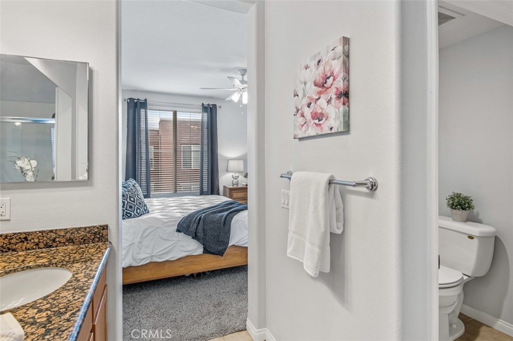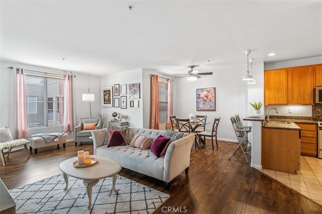 OPEN AND SPACIOUS CONDO! Located on the top floor with no shared walls, this gorgeous unit is a rare and highly sought after plan 3; featuring the largest living area in Chapman Commons with an open and spacious floor plan, extra-large balcony. Brand new AC was installed recently and a Nest Thermostat will help you stay comfortable all year long. Enjoy warm light and the soothing sounds of the water fountain through the South-facing windows overlooking the peaceful courtyard below. The kitchen features tile flooring, a full-size pantry, granite counter tops w/ breakfast bar, new hanging light fixtures and stainless steel appliances. The large master retreat includes a private bathroom w/ soaking tub/shower, granite counter tops, a massive walk-in closet and access to your private balcony. Additional features include; high ceilings, double pane windows/doors, full-size washer/dryer closet, and LOTS of storage space. Chapman Commons is located close to the 57, 22 and 5 freeways & walking distance to Disneyland & Downtown Disney w/tons of dining and nightlife options. The community is loaded with amenities and features over 40 guest parking spaces both inside and outside the community, tranquil courtyards, a pool and spa with BBQ's and lounge area, clubhouse & fully loaded fitness center. Association includes Free Heating, trash, water, sewer & gas.