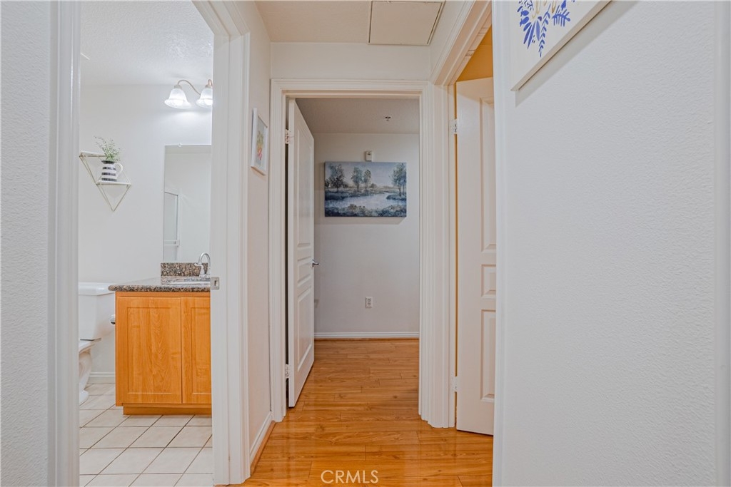 Peace, Quiet, and Tranquility with an abundance of entertainment just minutes away. This spacious open concept 2-bedroom, 2 full baths has everything you are looking for in your new home. As you enter the home you are met with a gorgeous kitchen with plenty of cabinets, and counter space. Never miss a moment with family and friends as the kitchen gives a picture-perfect view into the dining and living room area. Off down the hallway you have 1 full shower/tub combo bathroom, two bedrooms, hall closet, and laundry room closet housing the washer and dryer. The primary bedroom hosts a large walk in closet, and spacious ensuite featuring a tub/shower combo with separate toilet room for maximized privacy. Bonus feature of this beautiful ground level- end unit, is the private long gated balcony which can be entered into from both the primary bedroom and living room. Enjoy a little R&R as you can hear the beautiful community water fountain steps away from the unit. The home has two assigned parking spaces, storage, and tons of guest parking. The Chapman Commons is a resort style oasis in itself. From the pool to the clubhouse, up to the gym, and back down to the BBQ/ fire pit area, the beautifully maintained grounds will exceed all of your new home desires. In the mood for some good ole entertainment? This gem of a location is unbeatable and central- roughly 2 miles from a host of entertainment venues such as Disneyland, Angels Stadium, Honda Center, Garden Walk, Block of Orange just to name a few, and literally just minutes to access the 22, 57 and 5 freeways, which will take you to other parts of the sprawling Orange County, and Los Angeles areas. Come and fall in love with this beautiful haven in the city that has both central air and heat, so it’s the perfect place to call home all year-round!