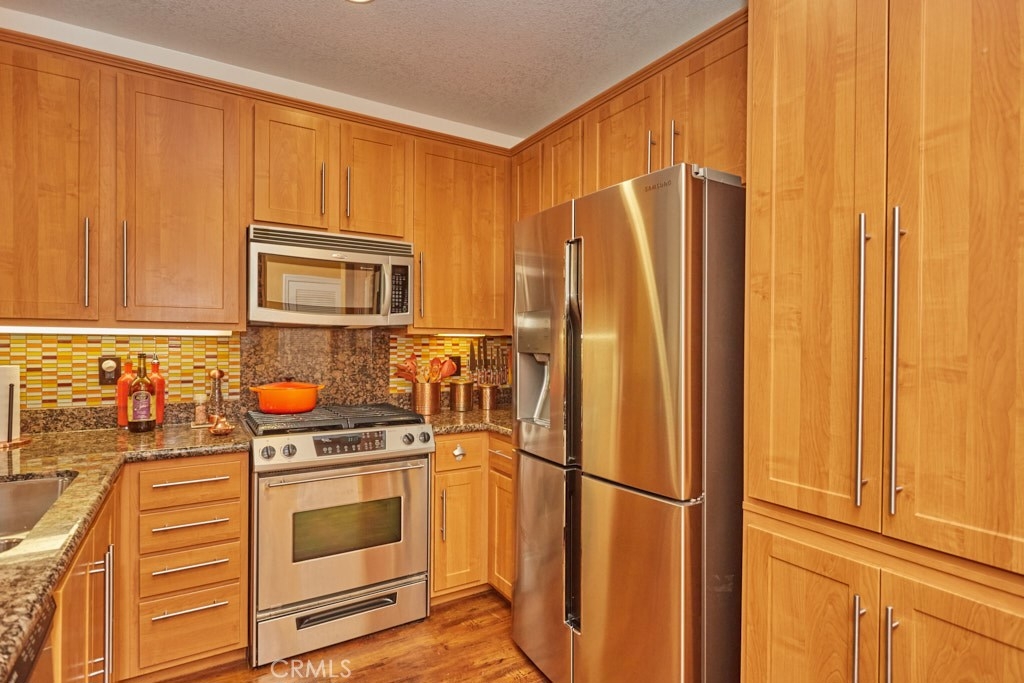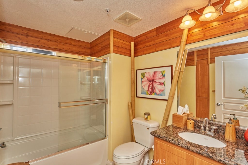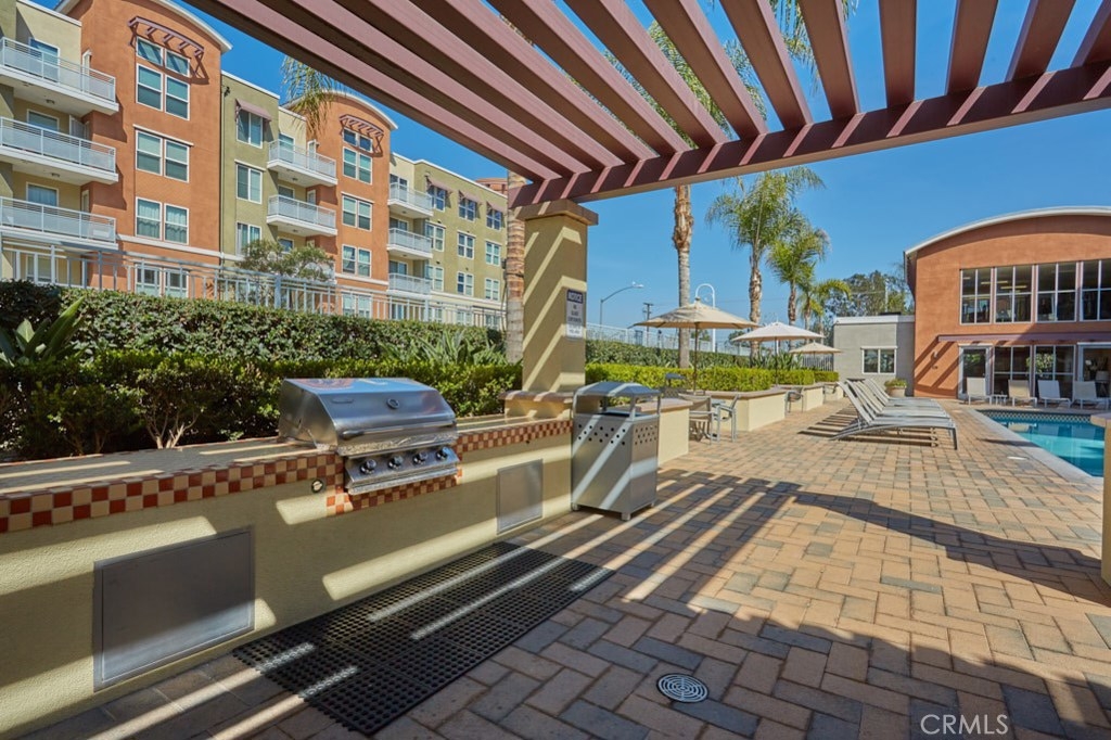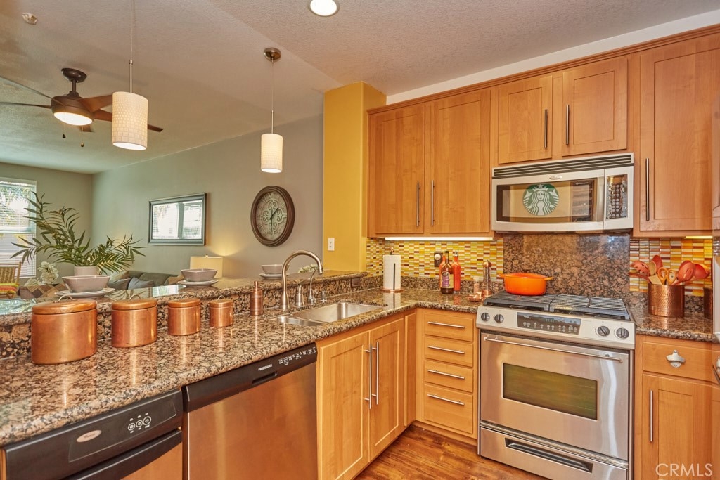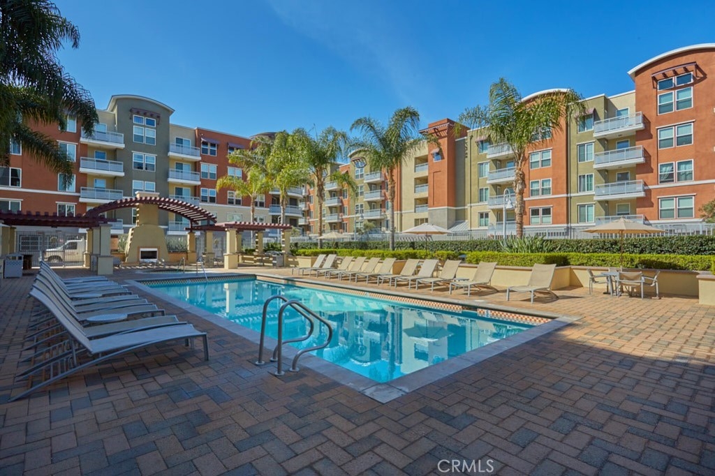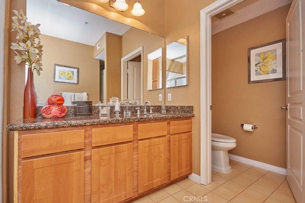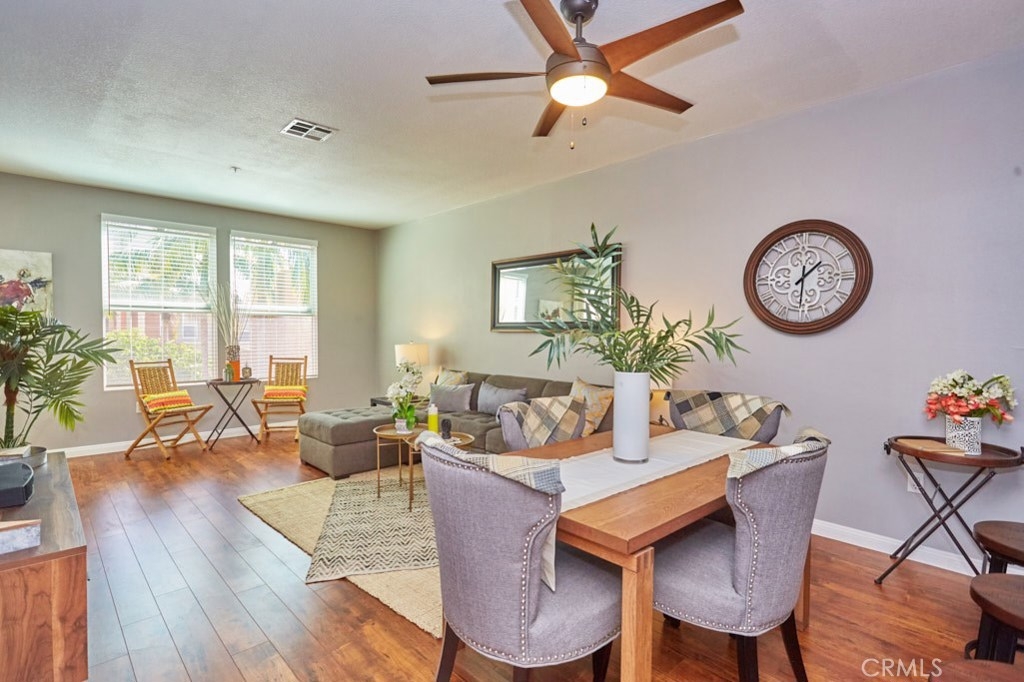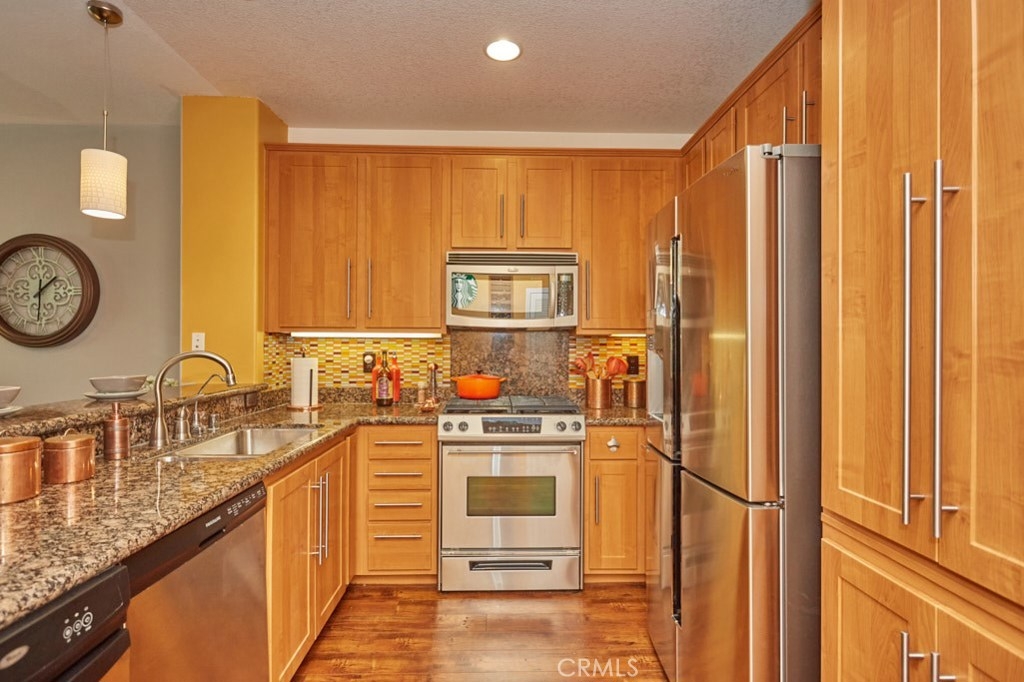 Resort Style Living with the Comforts of Home Await you at Chapman Commons in this beautiful single level condo on the 2nd floor. As you enter the home you will notice the beautiful granite counters and stainless-steel appliances in the kitchen. The open concept living and dining rooms with engineered wood flooring and neutral paint color lend themselves nicely to entertaining guests. There is a private balcony area that extends from the living room to the master bedroom that overlooks a tranquil garden courtyard with fountain. The luxurious master retreat includes a well-appointed master bath with soaking tub, granite topped vanity and a walk-in closet. Off the hallway you will find a large secondary bedroom, guest bath with granite counter tops and hook ups for a stackable washer and dryer. New carpet in the hallway and bedrooms. The unit includes two assigned parking spaces and extra storage in lower garage. The well maintained gated community offers a resort like pool and spa with an outdoor gas fireplace, BBQ's, and seating to enjoy a day around the pool. The clubhouse features a kitchen, game room large gathering area with a private gym on the 2nd floor. There is on-site property management. Association fees include trash, water, sewer & gas. Chapman Commons is located in the Grove District-Anaheim Resort area, close to the 57, 22 and 5 freeways and minutes away to Disneyland, Downtown Disney and The Garden Walk with tons of dining, shopping and nightlife options.