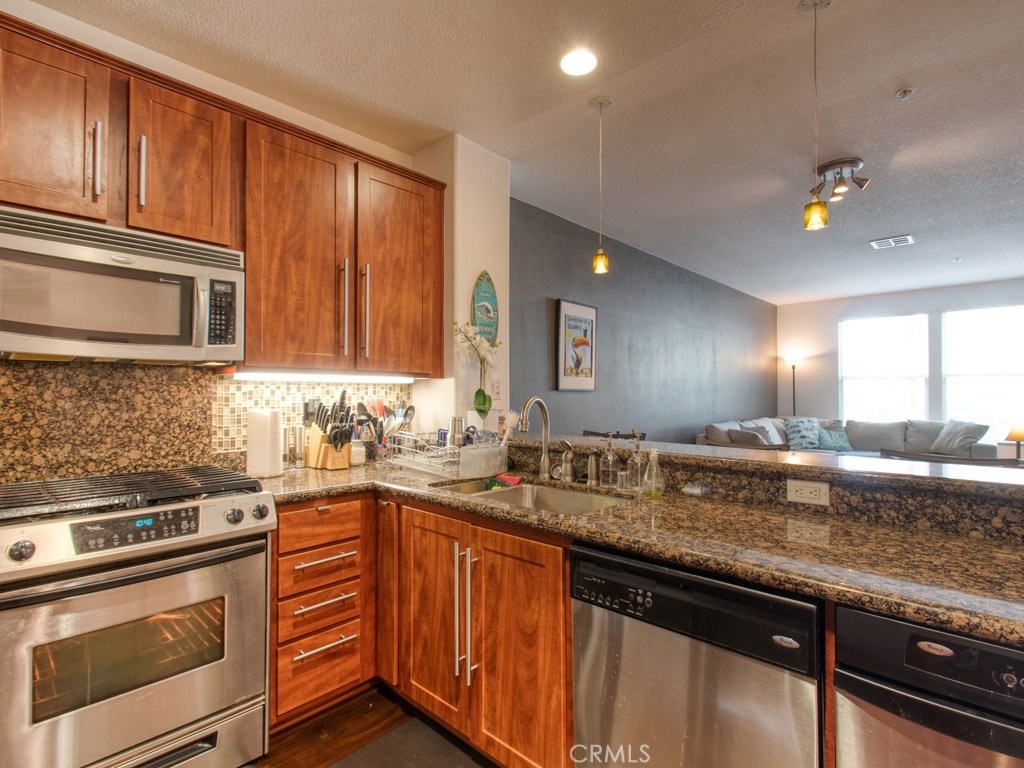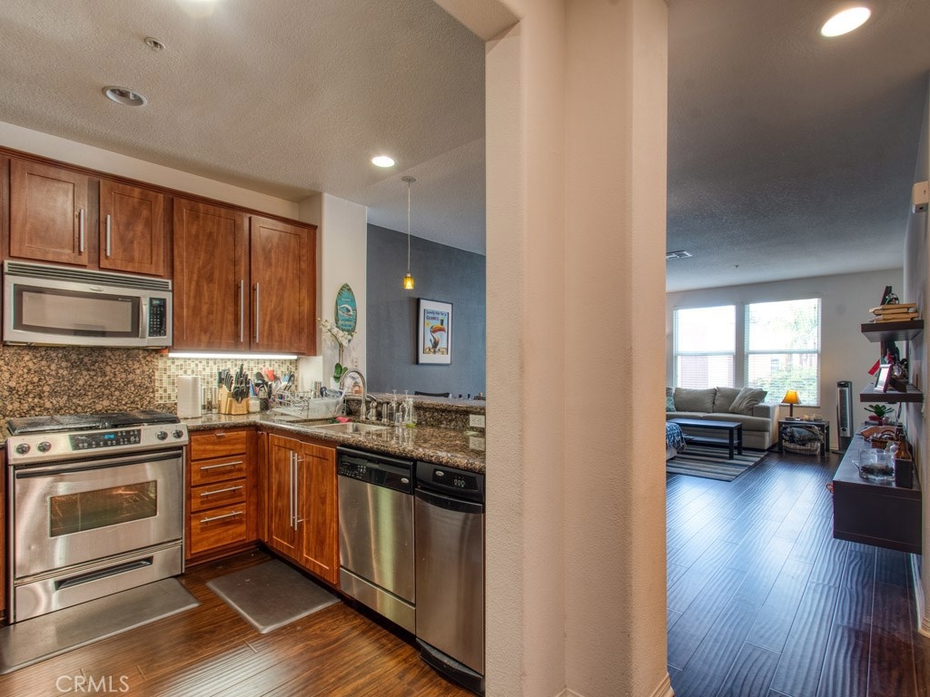 Adorable and Affordable perfect starter home or investment opportunity. This is your chance to own this wonderful 2 BR, 2 BA in sought after Community of Chapman Commons. This complex is minutes to Disneyland, California Adventure and the Orange Outlets. A gated community complete with sparkling pool and SPA, exercise room (Gym) and a stylish recreation room. 2 assigned parking spots located in the basement. Upgraded home with granite counter tops, designer cabinetry, beautiful engineered wood floors, fabulous tiles in bathrooms and a private balcony. Home is in an ideal location overlooking the courtyard and away from the busy streets. Private entrance accessible by elevators. Assigned storage unit in basement close to the parking spaces. Washer/Dryer, Refrigerator and Trash Compactor Included. HOA dues include water, trash, gas and sewer. This is a must see.