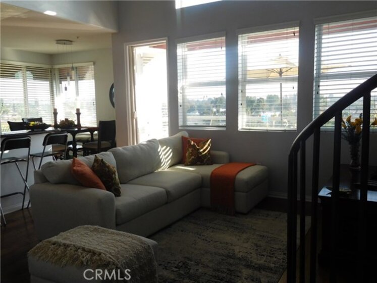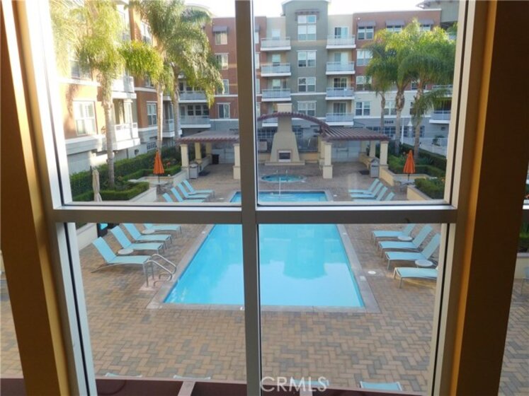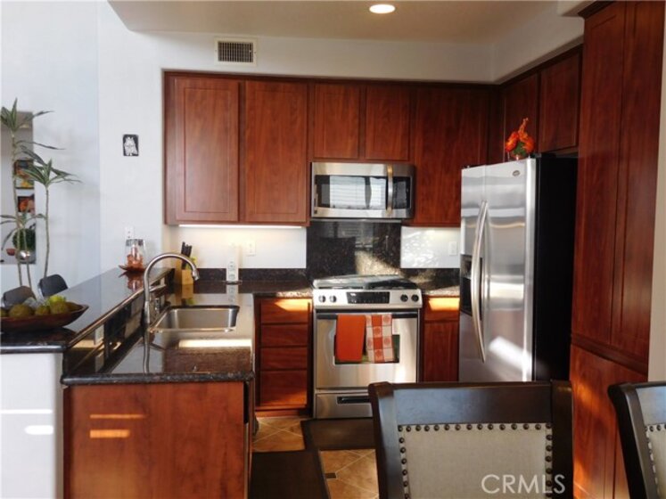 A must see rare end unit with a view and elevator access in a gated community that includes: 2 bedrooms 2 bath with a loft that could be used as a 3rd bedroom. Open, natural light and spacious floor-plan with high ceilings feels much bigger than the square footage of 1,311. Wood flooring through the home except the bedrooms. The private master suite has a large walk-in closet and a huge master bedroom with soaking tub, large vanity and lots of storage. Inside large laundry closet. Granite countertops and stainless steel appliances in kitchen. Underground 3 side to side parking spaces and a full size storage cage close to your parking. Chapman Commons is located close to the 57, 22 and 5 freeway and walking distance to Disneyland & Downtown Disney with lots of restaurants and stores. The community is loaded with high-end amenities and lots of guest parking. Courtyards, a pool/spa with BBQ’s and lounge area. Clubhouse with game room and fully loaded fitness center. HOA dues include water, gas, sewer and trash.