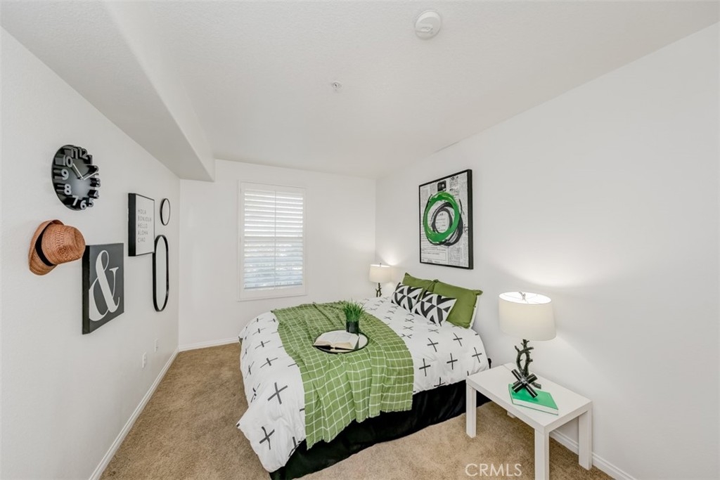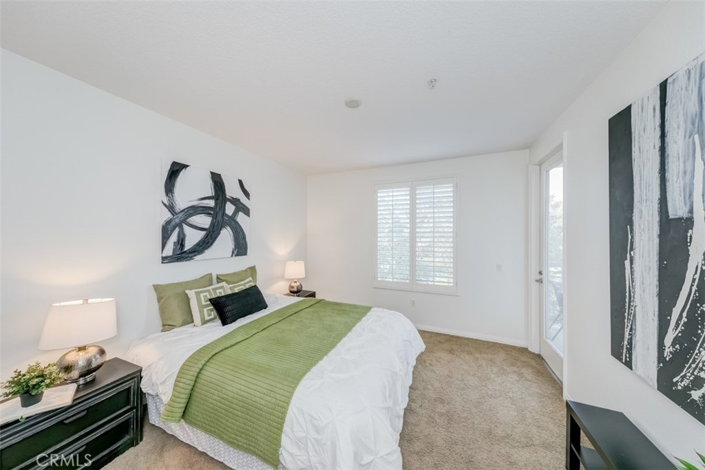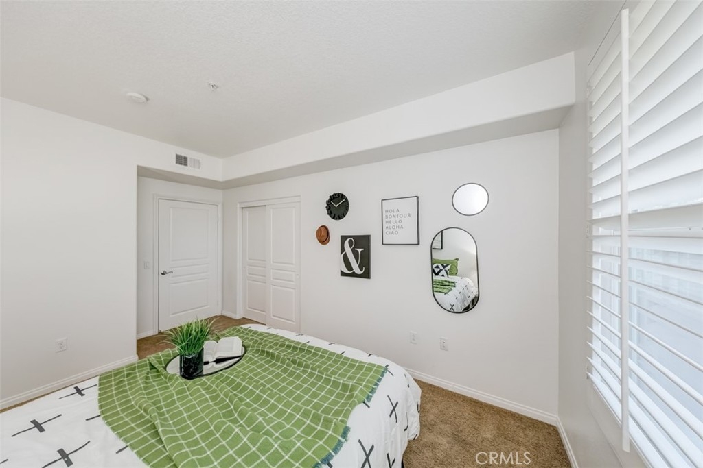 Charming Move-In ready unit. Walk-in and will notice the wide-open floor plan with windows and doors throughout to let plenty of natural light in. Wood flooring in the main living area and new carpet installed inside both bedrooms. The upgraded kitchen overlooks the living area which is perfect when entertaining guests. The kitchen features a granite countertop, stainless steel appliances, a built-in microwave, and plenty of cabinet storage spaces. There is a spacious outdoor balcony patio space connected to the living and master bedroom. Both bathrooms are upgraded with granite countertops and tile flooring. The master bedroom has its own master bath inside. The outdoor patio space overlooks the community pool. The washer and Dryer are included inside the unit. Included are 3 designated assigned parking spaces inside the gated parking structure and 1 storage unit (Parking space 295, 296, 297). The community offers a swimming pool, jacuzzi, clubhouse, and fitness room. Conveniently located near shops, restaurants, markets, Disneyland, and walking distance to Target. Easy nearby access to the 5 and 55 freeway.