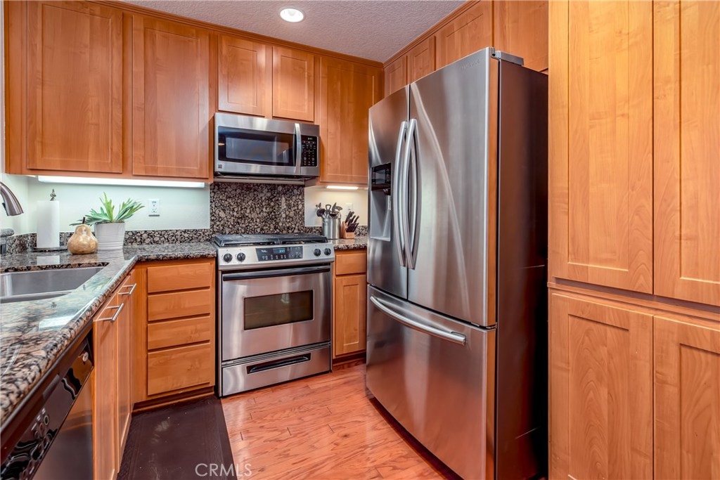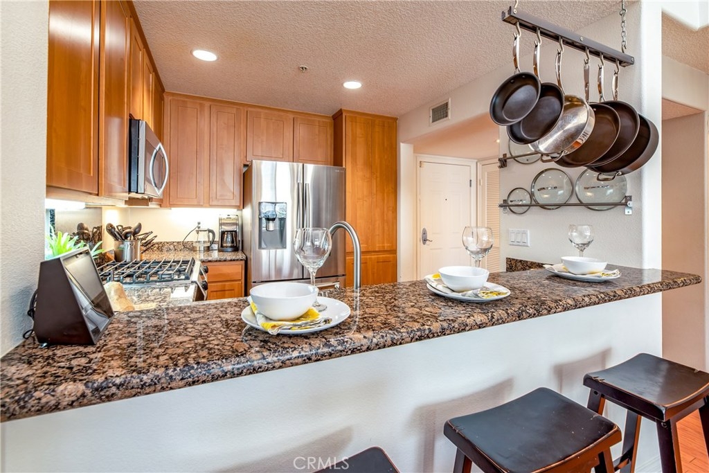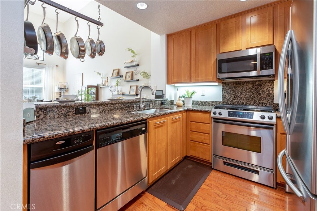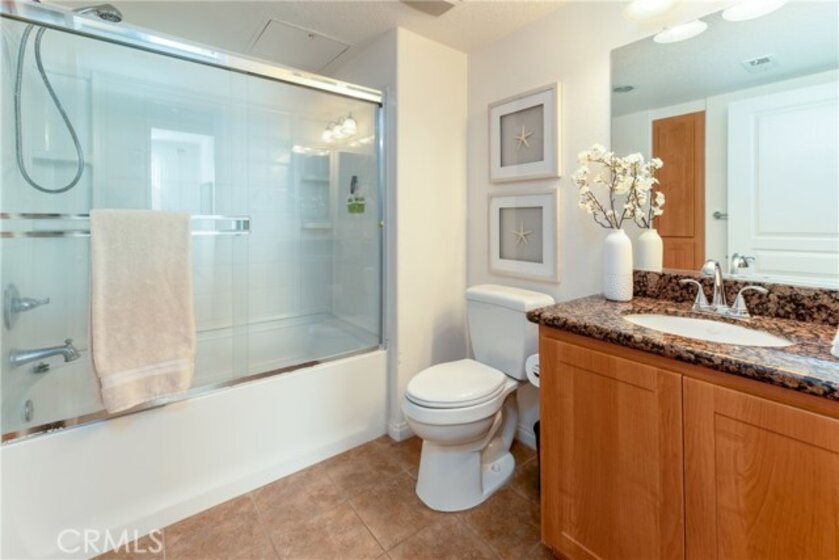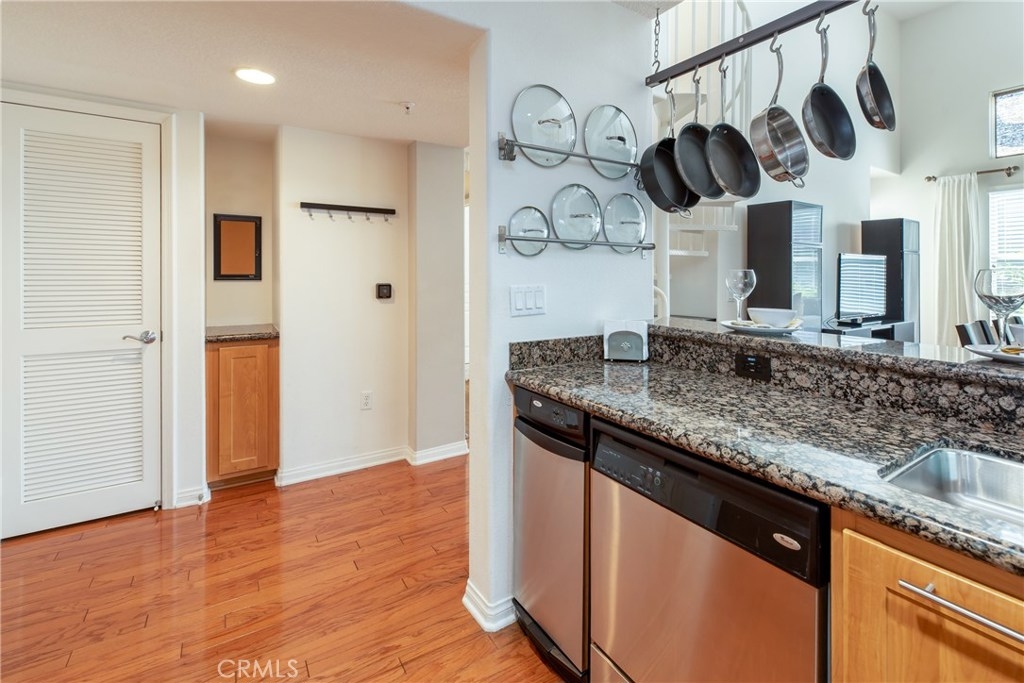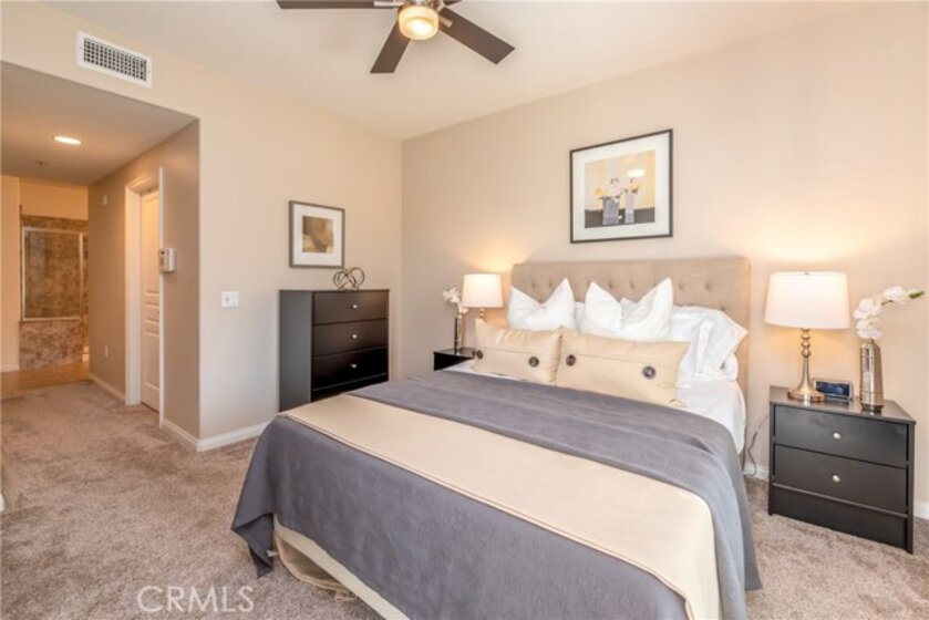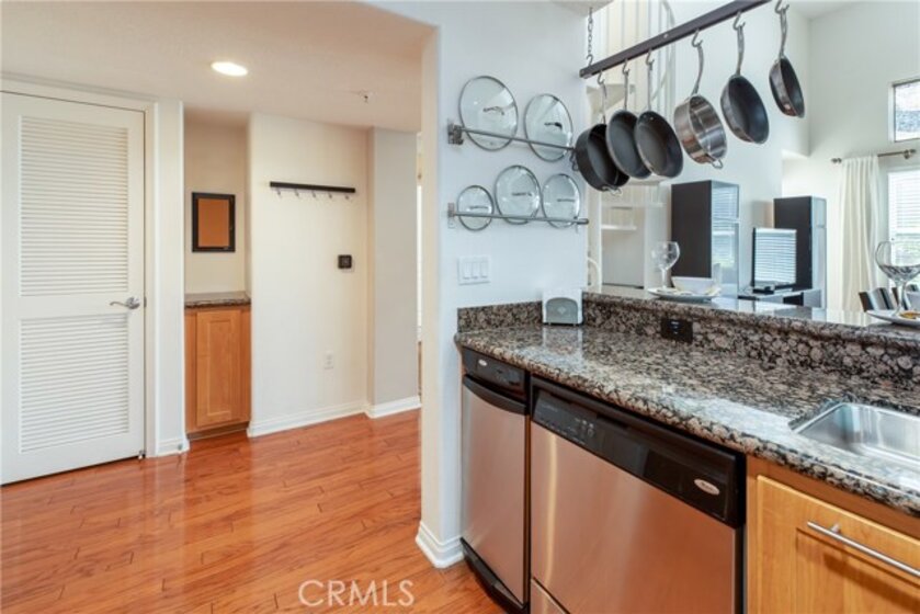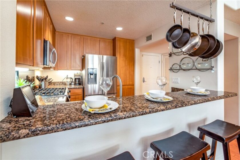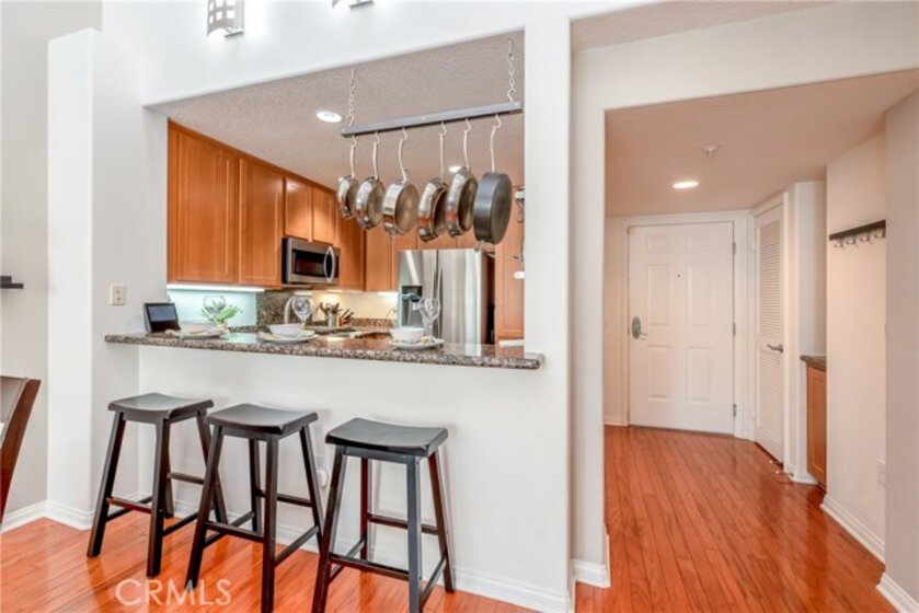 DELIGHT YOURSELF IN THIS TOP FLOOR,MOVE-IN READY,END UNIT W/ ONLY 1 COMMON WALL FEATURING 2 BEDROOMS & A MULTI-PURPOSE LOFT.TOWERING HIGH CEILING & FULL SIZED WINDOWS RENDER NATURE BRIGHT INTERIOR.THE FUNCTIONAL SPACED KITCHEN IS FITTED W/ GRANITE COUNTERS & NEUTRAL TONE THERMA FOIL CABINETS AGAINST STAINLESS STEEL APPLIANCES.EXQUISITE WOOD FLOORS LAY THE MAIN FLOORING FROM THE ENTRYWAY,THE KITCHEN THEN TO THE OPEN LIVING & DINING SPACE.UNWIND IN YOUR BALCONY CONNECTING THE MASTER BEDROOM & THE LIVING ROOM FOR BEST VIEWS OF THE INNER ZEN/BAMBOO GARDENS.NEWLY INSTALLED PLUSH CARPETING COVER THE HALLWAYS & THE 2 BEDROOMS.THE MASTER BEDROOM TUCKED AWAY FOR PRIVACY & COMFORT HAS A PERFECTLY PLACED WALK IN CLOSET.THE MASTER BATHROOM HAS BEEN RECENTLY RENOVATED W/ SHOWER WALLS FINISHED W/ AN ACRYLIC OVERLAY DESIGNED TO INHIBIT MOLD & MILDEW GROWTH COMPLETE W/ FULL SLIDING GLASS ENCLOSURE.THE SPACIOUS LOFT IS PERFECTLY SUITED FOR ANOTHER BEDROOM,MEDIA ROOM OR HOBBY ROOM.INTERIOR WALLS REFRESHED W/ SOFT CREAM COLOR THAT EXUDES A CALM VIBE.A STACKED WASHER & DRYER IN A SEPARATE CLOSET SPACE LENDS FUNCTION & CONVENIENCE.THIS TOP FLOOR UNIT HAS 3 ASSIGNED PARKING SPACES LOCATED CLOSE TO THE ELEVATOR ON PARKING LEVEL 1.ULTRA MODERN RESORT QUALITY COMMUNITY AMENITIES W/ PRIVATE GYM/EXERCISE ROOM.A SEPARATE CLUB HOUSE FOR PRIVATE FUNCTIONS.LOUNGE BY THE POOL & SPA OR CHILL BY THE FIREPIT AREA.COME HOME & FEEL LIKE ON VACATION EVERY DAY.HOA MONTHLY FEE OF $420 PAYS FOR TRASH,WATER & GAS