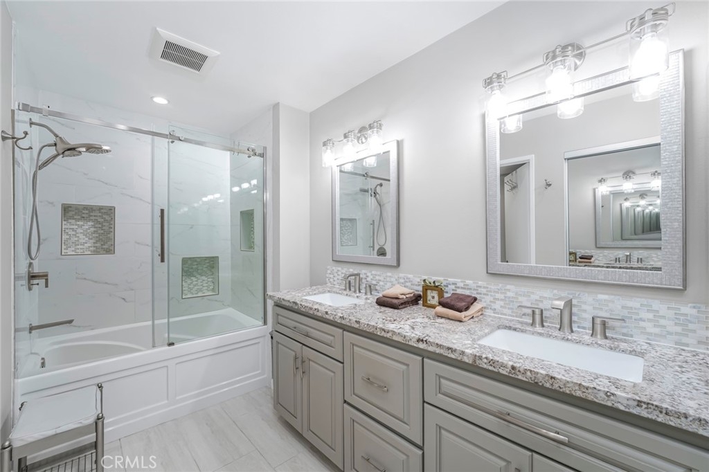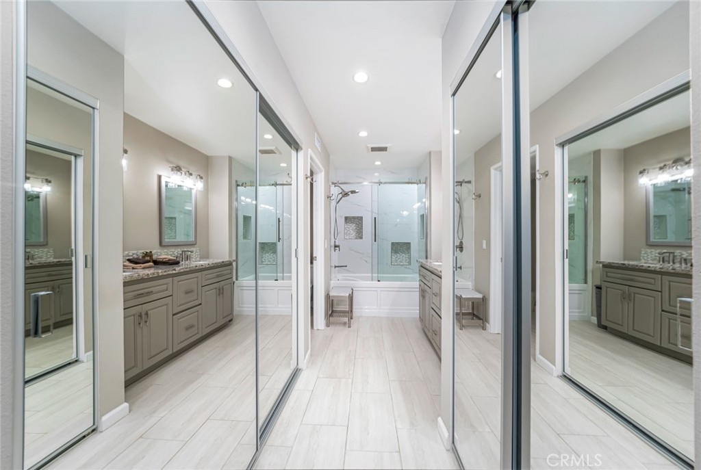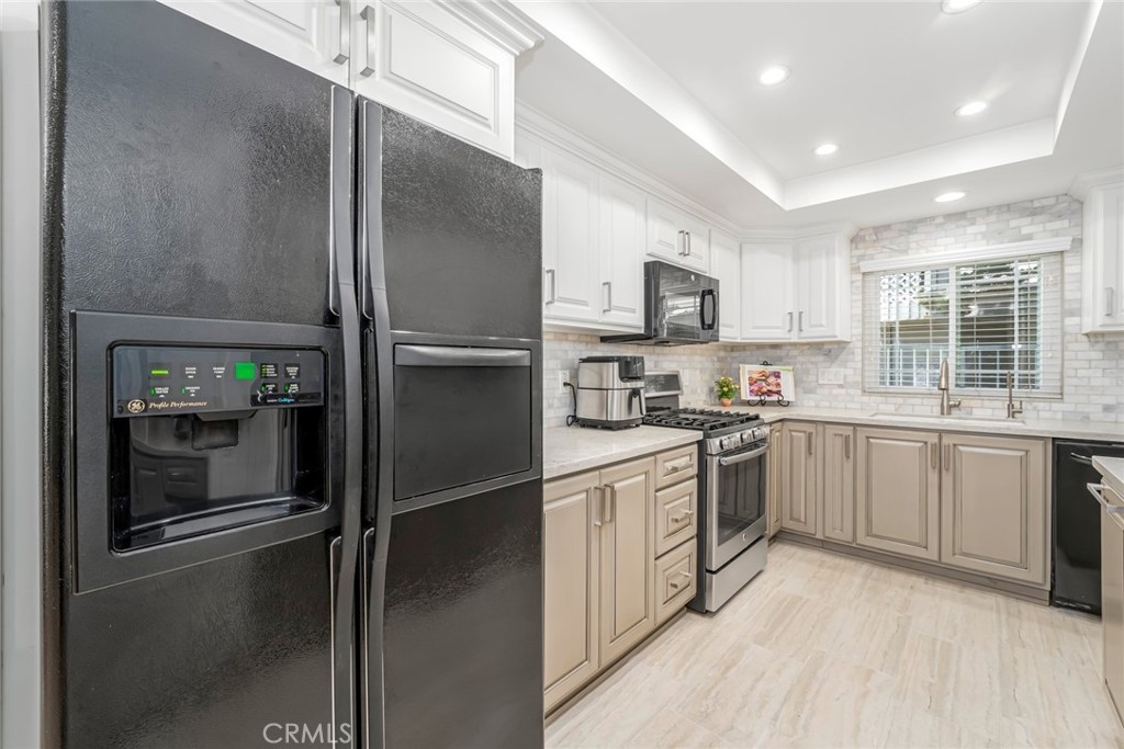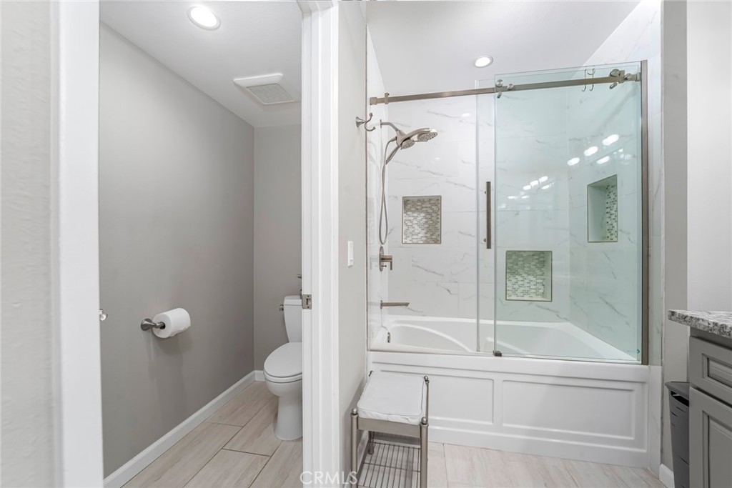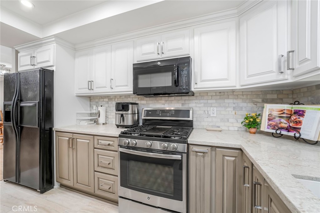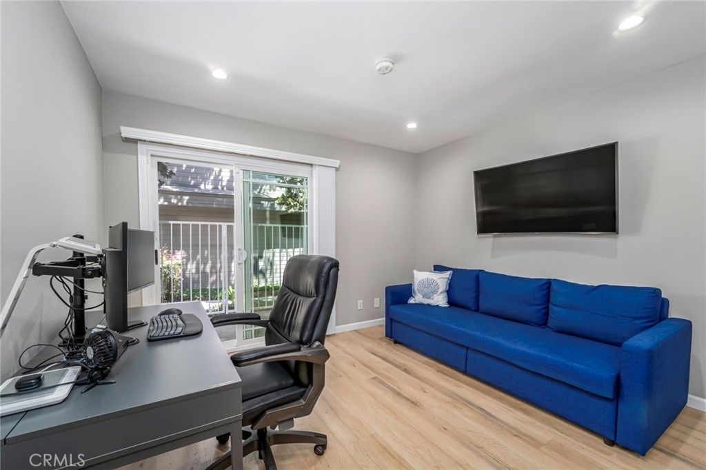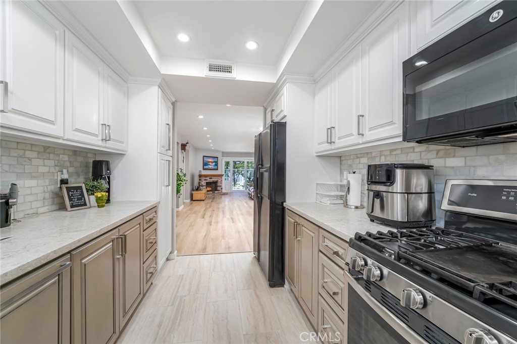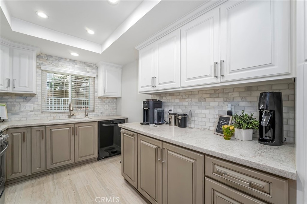Welcome home to this beautifully updated 2-bedroom, 2-bathroom downstairs end-unit condo, filled with thoughtful upgrades and warm, modern touches throughout. Tucked away in a quiet, gated, peaceful community, this this interior location home offers both comfort and convenience in one ideal package. Inside, you'll find a bright and inviting space with newer neutral paint and recessed lighting that adds a cozy, contemporary feel. Upgraded Anderson vinyl sliders and windows with new blinds that let in plenty of natural light while helping keep things energy efficient all year round. The remodeled kitchen is a true standout—featuring newer cabinets, self-closing drawers, stylish countertops, and a clean, updated carpet-free environment throughout that's ready for everyday meals and entertaining guests. Both bathrooms have also been tastefully remodeled with quality finishes you'll appreciate. You'll stay comfortable year-round thanks to the newer HVAC system, and the convenience of two enclosed patios and two private one-car garages—a rare bonus! The home also comes equipped with a Ring Security system, offering video doorbell monitoring and smart home integration for added safety and peace of mind. Located just minutes from shopping, restaurants, and easy freeway access; this home truly has it all.