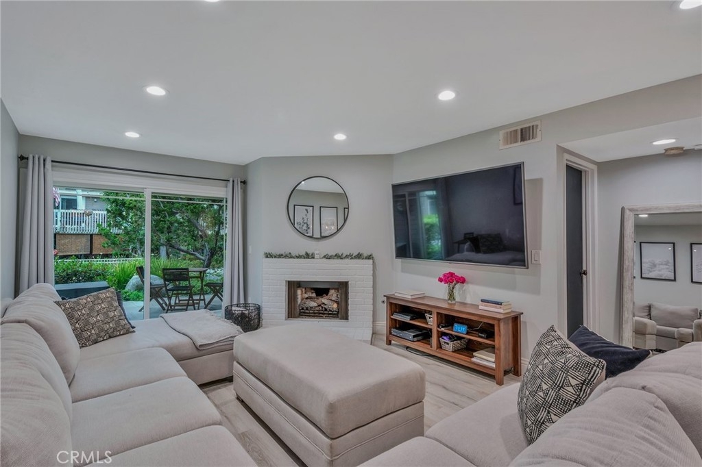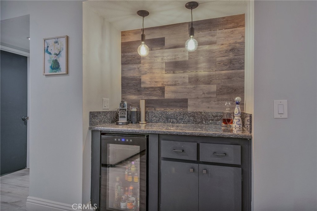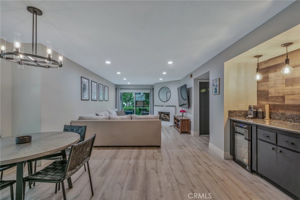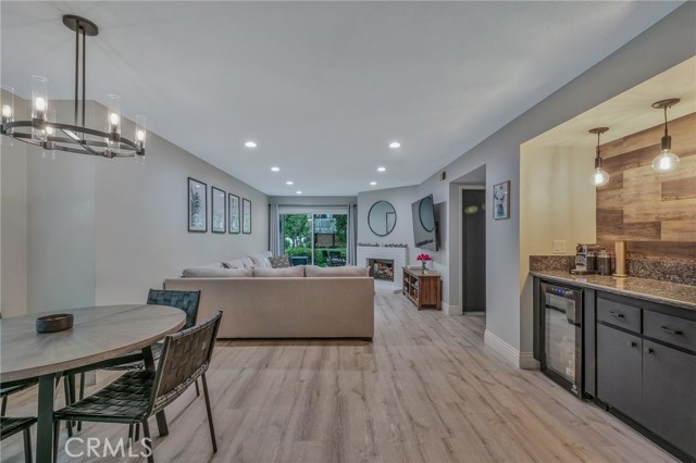 Welcome to your stylishly updated 2-bedroom, 2-bathroom condo in a desirable Cobblestone Creek community. Located conveniently on the first floor, this home features newer paint, vinyl flooring and an updated kitchen. The kitchen boasts modern white cabinets, floating shelves, and top-of-the-line appliances, making meal prep a delight. Host friends and neighbors at the updated bar, complete with a wine fridge and stylish pendant lights. The spacious primary bedroom offers ample storage space with dual closets and extra comfort with dual sinks in the en-suite bath. The secondary bedroom includes its own private patio, offering a serene retreat. T Relax in the living room by the cozy fireplace or step out onto the back patio to enjoy the tranquil sounds of the community creek. This condo is ideally situated close to the community pool and includes a two-car garage. Enjoy the convenience of being a short distance from the new shopping center, adding to the appeal of this fantastic location. Don't miss the opportunity to call this peaceful and stylish condo your home!