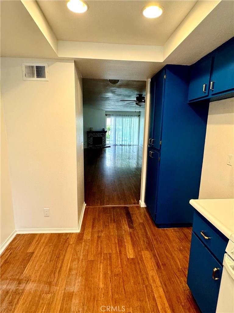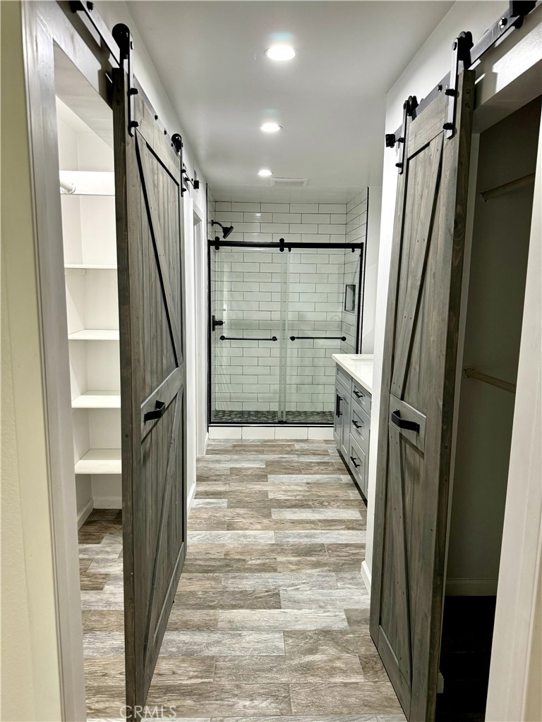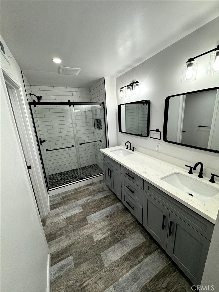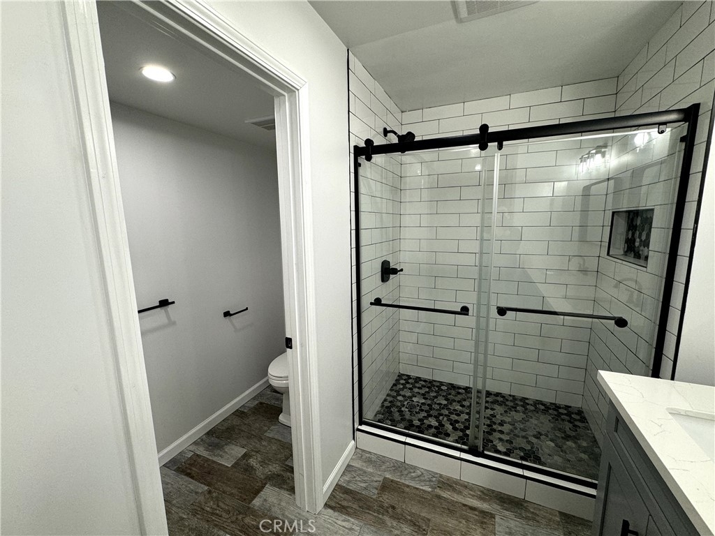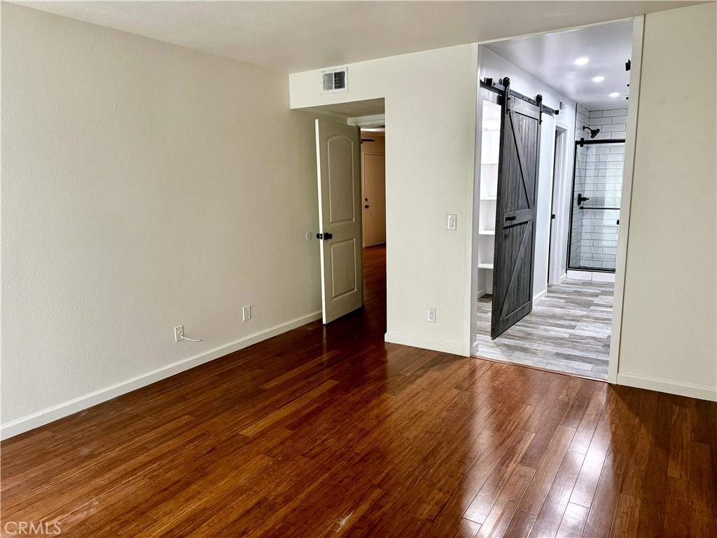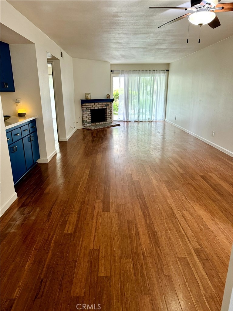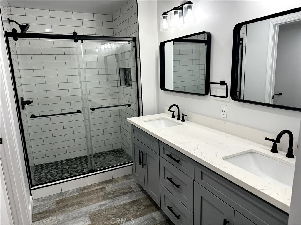 Escape to tranquil living at Cobblestone Creek, a peaceful oasis centered around lushly landscaped creeks. This single-level 2 bed/2 full bath desirable downstairs condo offers a prime location with limited foot traffic and is close to the detached 2-car garage. Entering the open floor plan, you’ll be immediately drawn to the spacious living room with a cozy brick fireplace that flows directly onto the large private covered patio overlooking the babbling creek. The master suite is a serene retreat, boasting direct patio access and a fully remodeled en-suite bathroom with a quartz double vanity, and stylish barn door closets. The second bedroom also enjoys access to an additional private patio and has plenty of closet space with the second remodeled full bath with upscale tile floors nearby. The freshly painted updated kitchen boasts modern bold blue cabinets with plenty of storage, a new faucet, and bamboo wood floors flowing throughout. The in-unit washer/dryer space adds convenience. Enjoy the complex’s pool, spa, walking paths, and gated security. Just minutes from amusement parks, shopping, dining, and freeways, this creekside condo offers the perfect blend of serenity and accessibility in a highly sought-after community. Welcome to your private retreat.