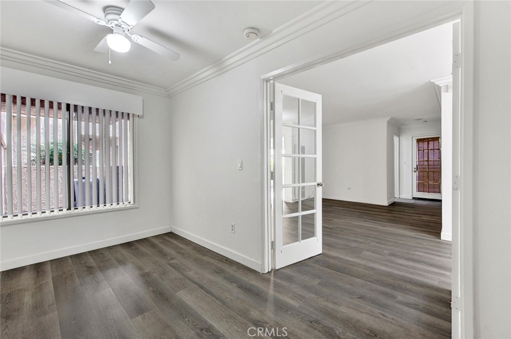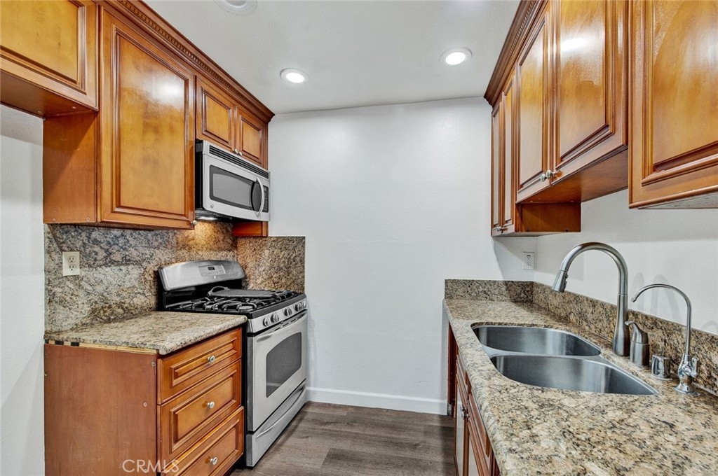 HIGHLY DEMANDED GARDEN CREEK VILLAS COMMUNITY WITH FOUNTAINS AND STREAMS THROUGHOUT THE RELAXING SURROUNDINGSMAKES IT RIGHT AT HOME. THE GATED COMMUNITY GIVES SECURITY AND PIECE OF MIND. COMMUNITY AMENITES ALSO INCLUDE A SPARKLING POOL & SPA WITH CLUBHOUSE. GREAT FLOOR PLAN FOR THIS 2 BEDROOM PLUS AN ADDITIONAL DEN WITH 1 BATH SHOWS LIGHT & BRIGHT. FRESH PAINT & NEW FLOORS ARE READY FOR MOVING DIRECTLY IN. LARGE LIVING ROOM SPACE WITH COMFY DINING AREA. A MUST SEE KITCHEN WITH GRANITE COUNTER TOPS AND STAINLESS STEET APPLIANCES. ALL KINDS OF SPACE AND STORAGE FOR THE GOURMET COOK. WASHER & DRYER HOOK UPS MAKES LAUNDRY CONVENIENT. 2 CAR DETACHED GARAGE INCLUDED. WALKING DISTANCE TO SUPERMARKET & RESTAURANTS