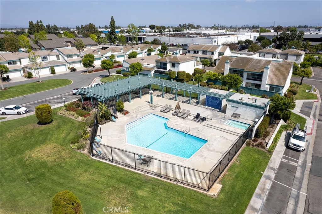 This "Camellia" model is in full bloom! Discover the vintage charm of a two-story 3 bedroom 2.5 bath townhome in the Garden Greens Park community of Garden Grove. Open family room includes a lovely glass fireplace and great natural lighting. The adjoining kitchen offers a spacious pantry, ample storage, and quartz countertop, plus a breakfast bar for quick dining and cooking prep. Enjoy the convenience of an electric oven, dishwasher, and refrigerator. Laundry hookup is discreetly located behind the stairway. Fully fenced back patio provides privacy and a gate to access the greenbelt and community pool. Master bedroom includes an ensuite bathroom, floor-to-ceiling mirror door closet, and window AC. Second bedroom features sliding glass doors to a private balcony with greenbelt view. Third bedroom is an airy loft that can also be an office or playroom. All rooms easily upgradable. Front-facing 2-car garage has storage space galore and located just across a cozy courtyard from the house. Neighborhood offers lush greenbelt, walking paths, community pool, spa, and picnic area. Easy access to major freeways, shopping, and top-rated Garden Grove Unified School District with Garden Park Elementary, Bell Intermediate, and Pacifica High School nearby. Guest parking is plentiful.