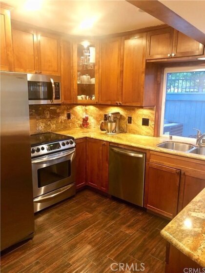 This 3 bedroom town home has the best of both worlds: a beautiful property and a beautiful location. Downstairs you’ll find a spacious living room with a fireplace, and upgraded kitchen with granite counter tops, and a convenient half bath. Upstairs features all 3 bedrooms and 2 more full baths, including a private bathroom attached to the master suite. Other features include 2 patios, a 2 car garage, A/C, washer and dryer, and luxurious glass windows and doors throughout that fill the home with natural light. This is all in addition to the incredible greenery of the Garden Greens community, with amenities such as a large pool, picnic area and spa, conveniently located just off the 22 freeway.