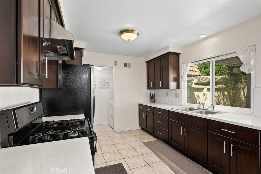 Lovely Townhome located in desirable area -Garden Park Townhomes Community. Excellent opportunity with this 3 Bedroom and 3 Bathroom home with full bedroom and bath downstairs and 3 full baths (two showers and one Tub), Beautifully remodeled kitchen with adjacent inside laundry room, dining room and dual sided fireplace leading to large living room. Upstairs has Primary Suite with upgraded bathroom has both a step in and a wall closet for lots of space. Additional upstairs third bedroom is almost 22 foot long and it appears it could be modified to have bedroom and den/office or additional bedroom. Greenbelt along the front is very pleasant but your main entertaining will be in the patio leading to the two car garage. Patio is quite spacious with fruit trees. Garden Park Community has Pool and Spa with Clubhouse and many open greenbelt areas. Lowest price/square feet for a 3 bedroom Townhome in Garden Grove - an excellent investment opportunity.