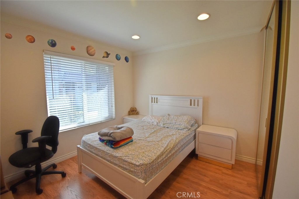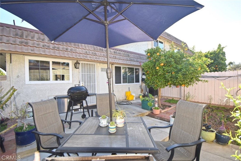 Bright and airy townhouse quietly nested at the end unit- Open living room w/Fireplace, all bedroom with mirrored closets- Laminated floor in all bedrooms, Living room and dining area- Tile floor in bathroom - Crown molding and recess light with dimmer and new windows thru-out- Titled floor kitchen with granite countertop and newer cabinetry - Two car detached garage (Plus can park 01 more car in front of garage) Connecting to main house by a court yard- Community gated pool, spa, and club house- Close to shopping Center, Restaurants, Markets, and easy freeway access- Ready to Move-in