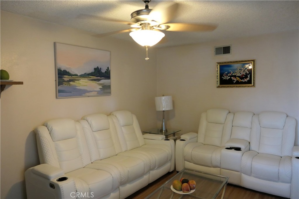 Beautifully quiet home with TWO HUGE MASTER BEDROOMS (and could be easily transformed into a THREE BEDROOM home!!), interior tract location, indoor laundry, triple pane vinyl windows, plantation shutters, laminate flooring, an ENTERTAINER’S DREAM back patio, wonderful sitting front porch area, tons of storage, open kitchen with 2 seater breakfast bar, and a fantastic HOA with pool and spa right across the street that feels like a resort area, all of this feeding highly desired Garden Grove High School. Wonderfully manicured grounds including mature pine trees and beautiful camellias everywhere as you walk through the front patio with brick lined walkway. Enter the foyer into the beautiful laminate flooring that is throughout the downstairs, then into the fantastically large living room anchored by a brick /stone custom fireplace , accented by plantation shutters, and nice lighted ceiling fan. Kitchen opens beautifully to the dining room/family room and has four burner GE range, stainless steel Whirlpool microwave, stainless steel Maytag dishwasher, tile counters, an abundance of wood cabinetry, large pantry, two seater breakfast bar, stainless steel dual sink, upgraded brushed nickel faucet, plus a fantastic picture window looking out to the large patio area. Formal dining room is incredibly expansive and spacious with a beautiful lighted ceiling fan and could be transformed into a separate family room. Downstairs has a meticulously clean half bath with upgraded counters and fixtures. Exterior expansive patio is an entertainer’s dream highlighted by an oversized gazebo, multiple sitting areas, gorgeous rose garden, stone walkway, and direct access to the garage with built-in multiple storage units. Dual master bedrooms upstairs that are both huge, one measuring 14‘ x 13‘, insulated ceiling fan, and ceiling to floor mirrored wardrobe sliders with organizers in the extra deep closets, plantation shutters, plus hook ups for TV. The extra upstairs master bedroom is incredibly large (22‘ x 12‘) which could easily be made into two nice size bedrooms making this a three bedroom home. This room has a large walk-in closet with organizers, lighted ceiling fan, and direct access to a full bathroom with meticulously clean shower over tub, tiled shower walls, glass sliders, nicely upgraded fixtures, shower wand, and NEW flooring. Sellers will entertain the reasonable offer. Thank you for showing and good luck !!!