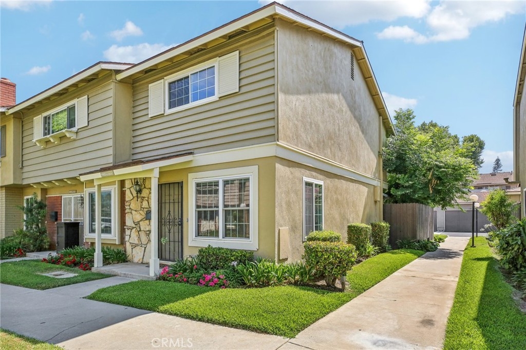 Welcome Home to Garden Valley! Spacious end unit with detached 2 car garage accessed from the garden patio, perfect for entertaining or simply relaxing and it even includes a lemon tree. The well placed windows and extra side windows make this home bright and inviting. The upstairs features 2 large bedrooms and an updated bath. The garden-like community features pool, playgrounds, basketball courts, clubhouse, and low HOA dues. UCI Medical Center, Anaheim Convention Center, Orange Outlets, Disneyland, Theaters and more are very close by. Don't miss out on this opportunity to be part of a wonderful community in a great location!
