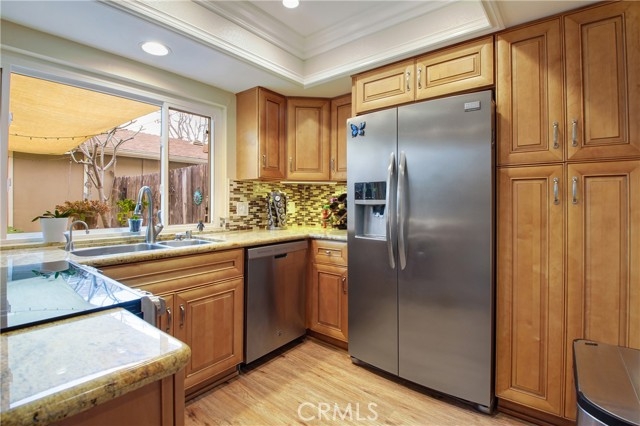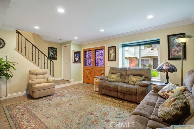 ** DON'T MISS THIS OPPORTUNITY TO OWN THIS BEAUTIFULLY REMODELED 2 Story Home in a centrally O.C. location !!!! This 3 bedrooms 2.5 bath home boasts an Open floor Plan: from the elegant double door entry plus top of the line WYNSTAN Security Door, Step into the spacious Living room, featuring a cozy gas/wood burning dual fireplace made with polished Travertine, elegant crown molding & beautiful laminated hardwood flooring that extends to the Dining area & kitchen; that has been updated with beautiful granite countertops & custom cabinets . The newer double pane slider leads to the back patio with customize concrete into an oversize 2 car garage with added extra shelving . Convenient updated guest bathroom & laundry area downstairs; plus recessed lighting all thru-out the first floor........When you make your way upstairs , you will find 2 bedrooms with wall to wall mirror closet doors & beautiful ceiling fans. A SKYLIGHT to illuminate hallway, very spacious hall bathroom fully updated , and of course the primary Bedroom Suite with its own spacious & beautifully remodeled bathroom. All baths have Panasonic Ultra-Quiet Ventilation fans!!!! Newer Central Heating & A/C units and more!!!!! Community Amenities include a sparkling pool, basketball court, kids playground & a brand newly remodeled Clubhouse. This property is conveniently located walking distance to shopping & dining, close to Disneyland, Angel Stadium,Honda Center , UCI hospital, the Block of Orange etc. Near the 22, 5 & 57 FWY.** ..LOW HOA DUES!!!!!!