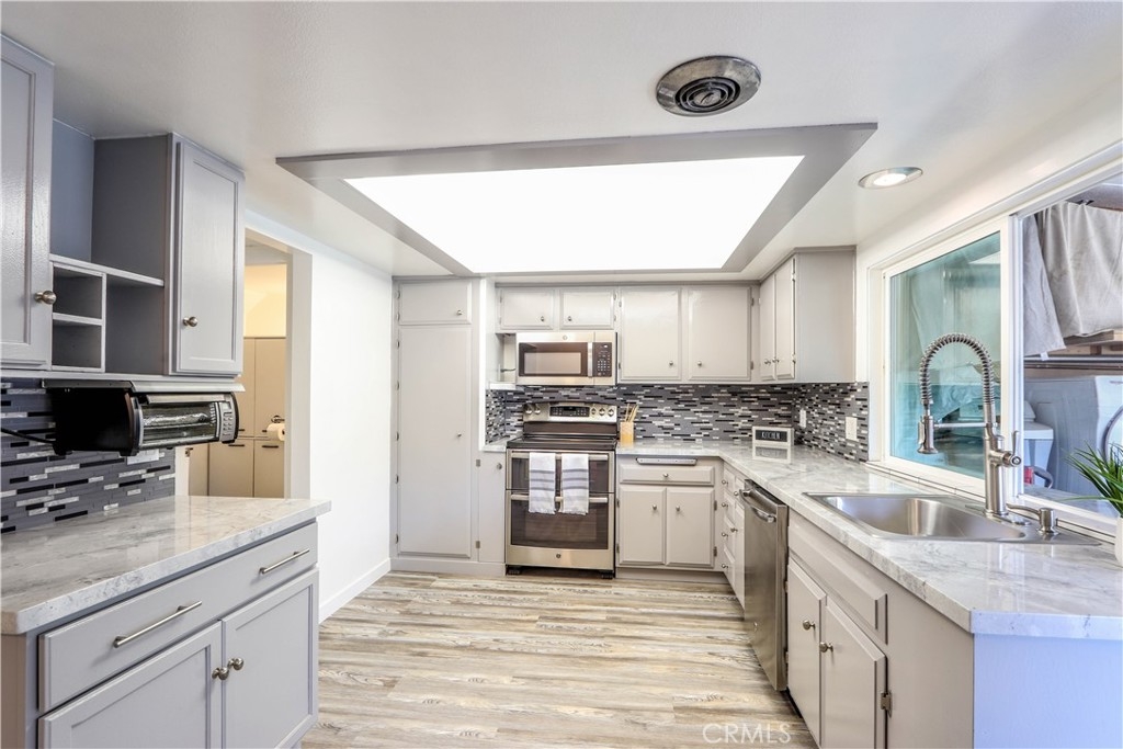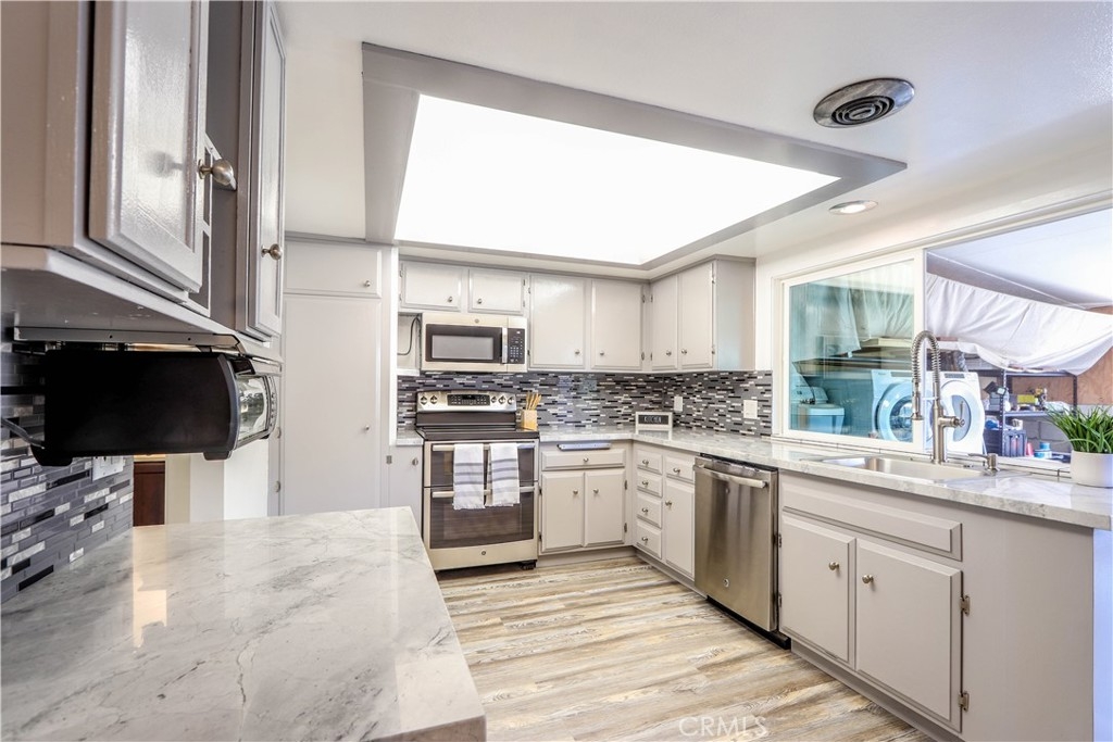 Prestigious 4 bedroom with endless upgrades. This home boasts 1,452 sqft, one of the larger 4 bedrooms of this development and zoned as a single family residence. Fully remodeled kitchen including granite countertops, stainless steel stove, microwave and dishwasher, recessed lighting and instant hot water for sink and dishwasher; built in coffee bar for your morning sip. New flooring and carpet throughout. Washer and dryer have been relocated from inside of home to partially enclosed patio, also provides access to 2 car garage. Many more upgrades including: New central heating and AC, new dual panned windows and slider, entire home freshly painted, window shades, soft water system, the list goes on. HOA is beautifully maintained, offering a clubhouse with billiard pool table, park, sports court, pool & spa. This home is ideally located to everything you need, including: store, schools, freeways, Disneyland, Crystal Cathedral, UCI Hospital, the Block of Orange and much more.