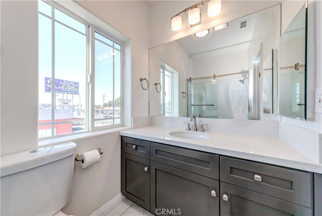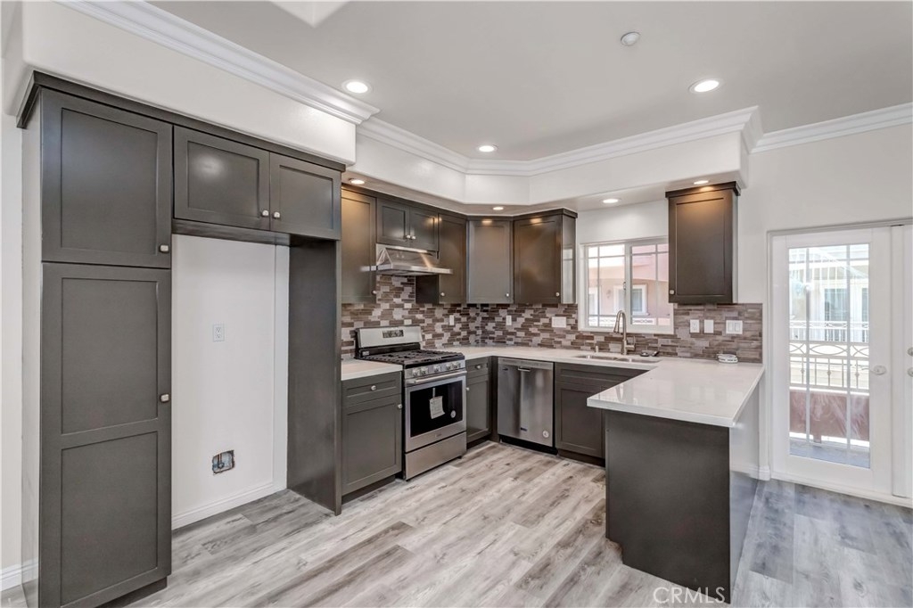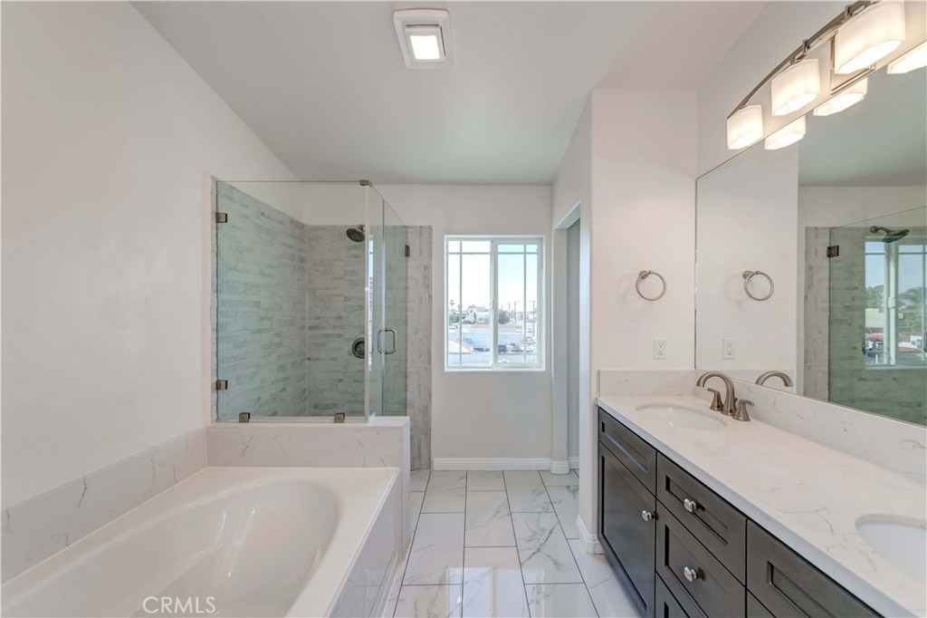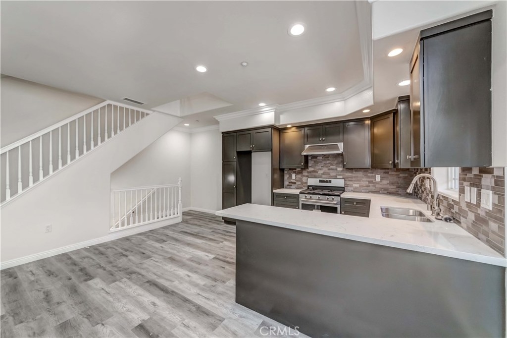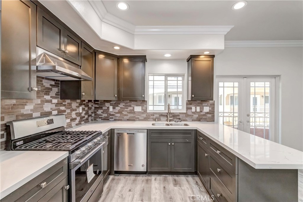 Beautifully remodeled home that is located in a bustling city, one has conveniences that are but a block away while having a community that is itself artistically renaissance designed with colorful villas at every corner. With waterproof laminate floors, custom-made cabinets painted and stained by craftsmen onsite, and spacious Master bedroom, topped of with luxurious bathroom featuring a tiled shower with customized glass enclosure, and timeless Quartz counter tops, one is sure to be pleased! Minutes from IN-N-OUT, Panda express, Starbucks, Planet Fitness, Chase Bank and more. Near Freeway 22, 405 and 605. Must See!