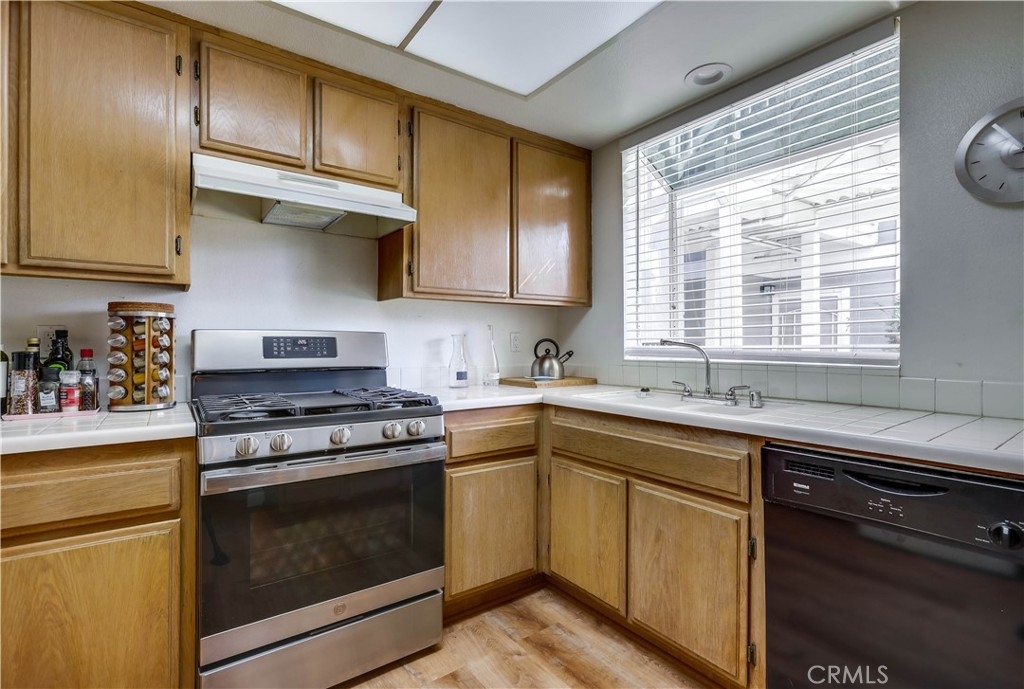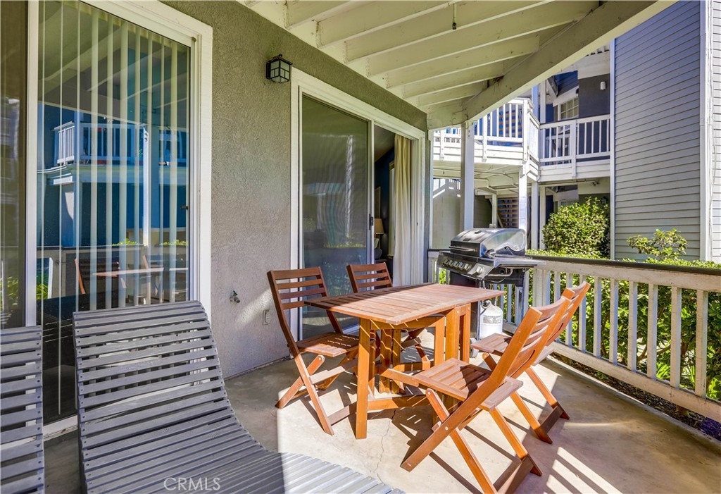 Welcome to your serene escape in Garden Grove! This bright and spacious 1-bedroom, 1-bath home in Greenbrier Terraces perfectly blends comfort, style, and functionality within a secure, gated community. Inside, the open-concept living area flows seamlessly to a large private patio, perfect for outdoor dining or lounging. Enjoy a rare double-sided gas fireplace that adds warmth and ambiance to both the living room and the bedroom. The kitchen features a new stainless-steel gas range, while the smart split-bath design offers two separate sink areas and in-unit laundry for added convenience. The bedroom includes a walk-in closet with generous storage space. A detached two-car garage with high ceilings and built-in shelving provides exceptional practicality—no more parking struggles or lack of storage. The community offers a pool and spa surrounded by mature landscaping, creating a peaceful, park-like atmosphere that feels like a private retreat. Ideally located near Costco, local dining, and easy 22 Freeway access, this move-in-ready condo delivers the best of Garden Grove living: comfort, charm, and everyday convenience in one appealing package.