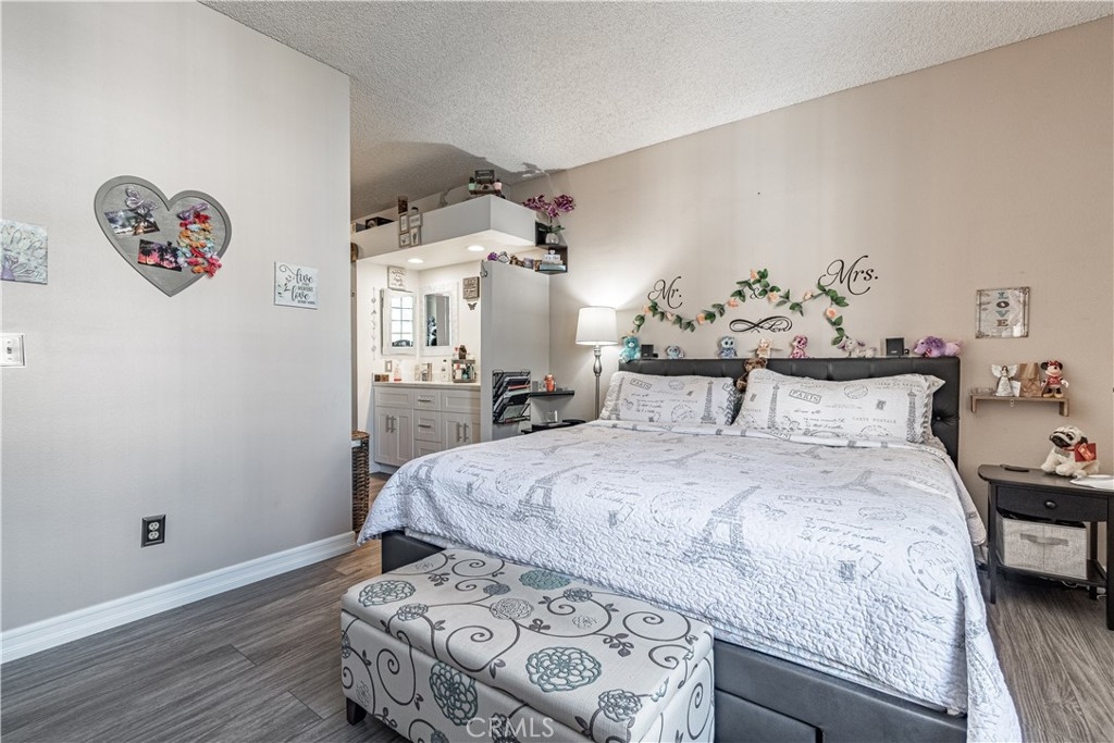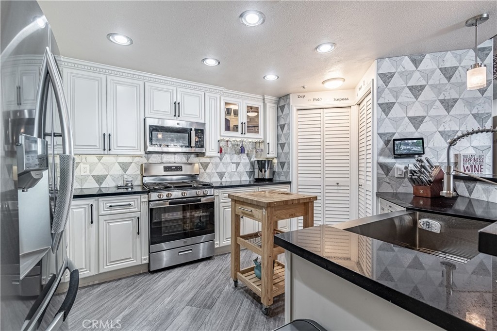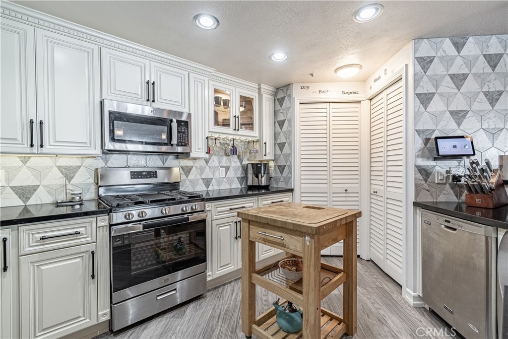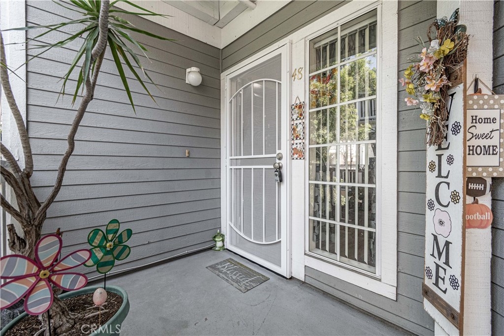 PRIME location in this gated community of Garden Grove. The attached 2-car garage with direct condo access to this single-level home is the most sought-after floor plan in the development. This beautiful condo features an open concept floorplan with OVER 75K in UPGRADES. Upon entering, you'll walk into the living room with a cozy electric fireplace with a custom mantel, an oversized private deck off the living room overlooking the pool with a private exit door that leads you to the pool, a remodeled kitchen with quartz counters / custom cabinetry / SS appliances / breakfast bar with pendant lighting, a laundry closet, and a dining area. Down the hallway, you'll find a full updated bathroom to the left with a tub/shower combo. The spacious primary suite features 2 mirrored closets and an updated en-suite bathroom with a dual vanity and standing shower. The secondary bedroom is good-sized as well. Central A/C. Tesla EV charger installed in the garage along with NEW tile floors. NEW water softener. NEW waterproof luxury vinyl plank flooring throughout. Patio furnishings included in the sale. Community pool / spa. HOA dues cover water/sewer, trash, and maintenance of common areas. This move-in ready home truly has it all! Talk about value!!!
