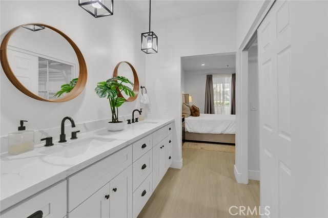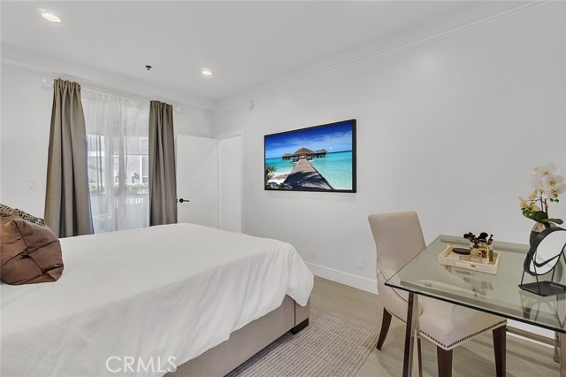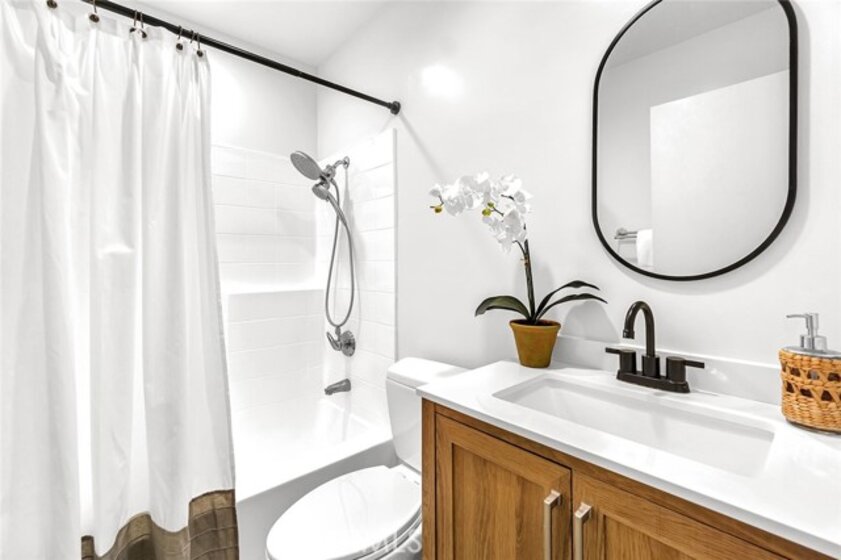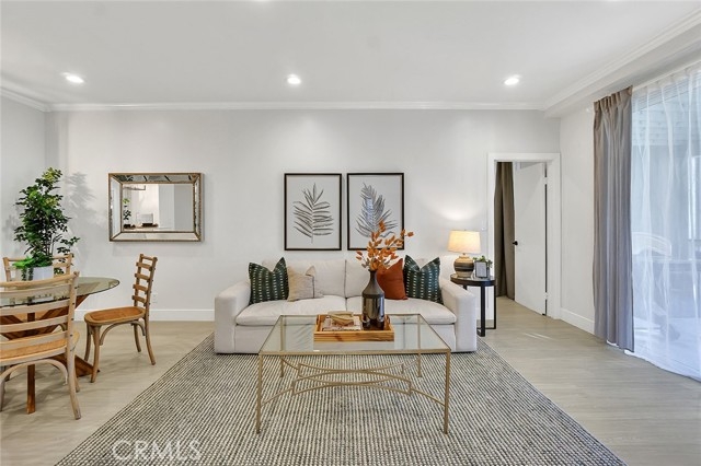 Charming Garden Grove Condo! Located in the desirable gated community of Greenbrier Terrace, this single-level 2-bedroom, 2-bathroom home offers 1,057 square feet of comfortable living space and is truly move-in ready. Enjoy access to resort-style amenities, including a heated pool and spa. Step inside to find smooth-finish walls, LED recessed lighting, and a bright, open layout that seamlessly connects the dining and family rooms. The spacious kitchen is thoughtfully appointed with a white subway tile backsplash, quartz countertops, newer stainless steel appliances, a gas stove, deep pantry, and a pass-through window to the living area—perfect for entertaining. A laundry area with an electric dryer is conveniently located just off the kitchen. The primary bedroom is generous in size and features a large walk-in closet, double-sink vanity, and a spacious shower area. The second bedroom is ideally situated on the opposite side of the condo, adjacent to the updated hall bathroom, which includes a new, larger vanity. Additional highlights include central HVAC, private covered parking, and a detached 2-car garage with extra storage. The home also offers a high level of privacy, both indoors and out, and includes a private patio for relaxing or entertaining. Don’t miss this opportunity to own a beautifully maintained home in a tranquil community, close to local shopping, dining, and freeway access!