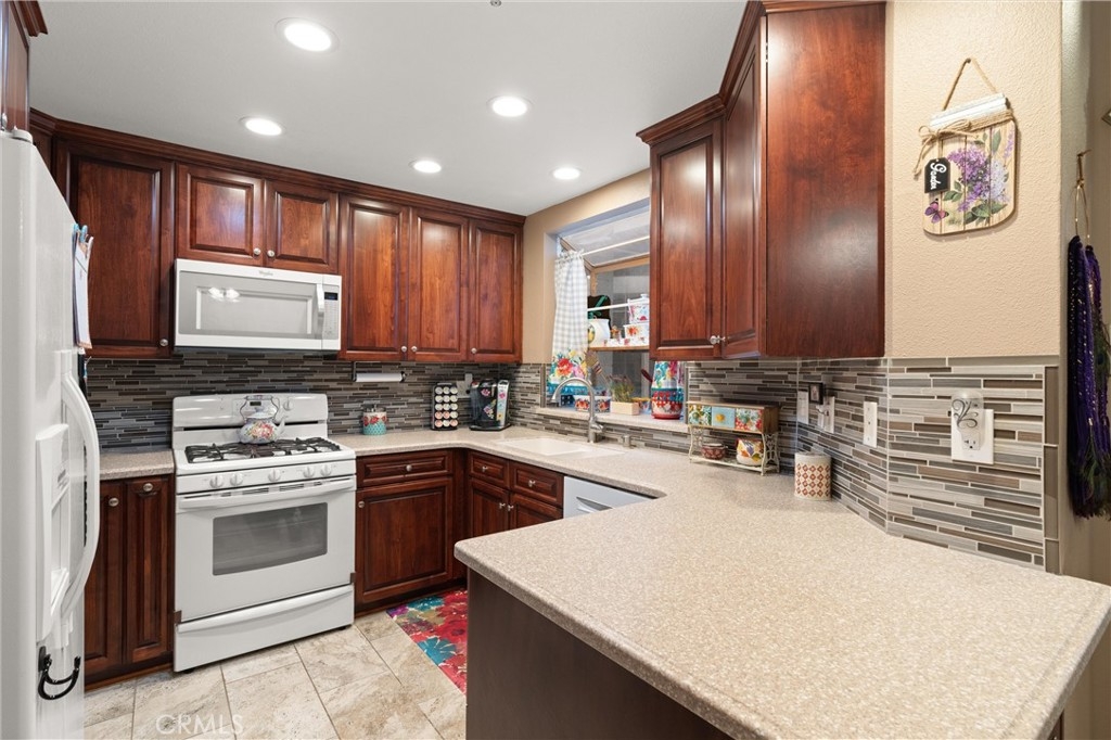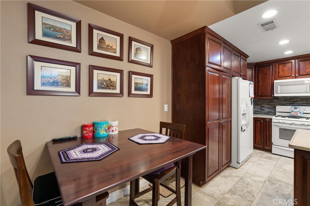 Beautifully Upgraded Greenbrier Terraces 1 Bedroom Floorplan with 2 Fireplaces and a 2 Car Garage! Completely remodeled in 2017! Located on the lower pool level features all newer custom kitchen cabinets that are deeper than normal cabinets for more storage space, corian countertops, newer appliances, retextured ceilings, crown moldings and baseboards, LED lighting and ceiling fans, custom floor tile, new interior doors, indoor laundry, central A/C and heating, light and bright living room with custom mantle fireplace and additional built in storage, spacious bedroom with 2nd fireplace and custom mantle, private patio slider, walk in closet, beautifully upgraded 1.25 bathroom with large shower, new vanities, all newer plumbing and electrical fixtures, entertainer's covered patio with custom shades just steps to the pool and spa, water and trash paid in this sought out gated community. Includes refrigerator, washer/dryer, this is a must see one of a kind condo!