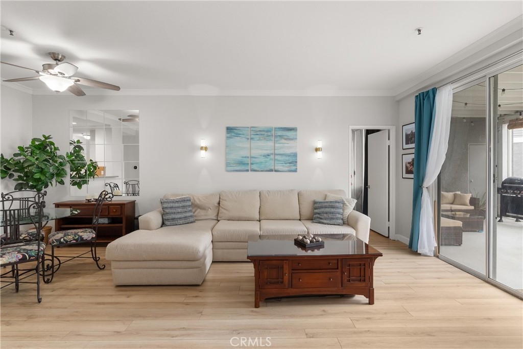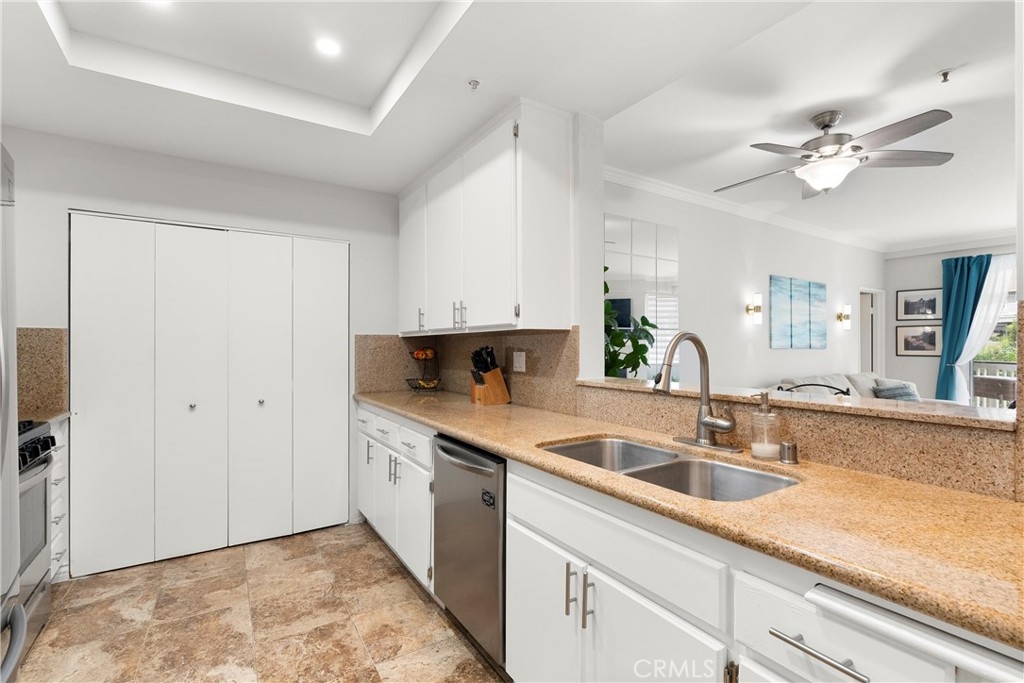 Life inside Greenbrier Terrace moves at a gentler pace. This fully gated community welcomes you with swaying trees, landscaped courtyards, and the promise of relaxation around one of four sparkling pools and four inviting spas. Here, there’s always space to stretch out, breathe deep, and unwind. Inside, the home opens to soaring ceilings that elevate the living space and fill it with light. Luxury vinyl flooring underfoot and crown molding above add warmth and refinement, while sliding doors lead you to a spacious balcony, your personal retreat for morning coffee, quiet evenings, or lively gatherings with friends. The kitchen is both stylish and functional, complete with granite counters, stainless steel appliances, and generous storage. The primary suite offers balcony access, a walk-in closet, and a dual-sink bath, while the second bedroom and full bathroom provide space for guests, family, or an office. Comfort is effortless with central A/C and the convenience of inside laundry. A true standout feature is the two-car attached garage with direct access, a rare find that blends ease with security. Beyond your door, the resort-style amenities invite you to rest, recharge, and embrace the feeling of retreat. Perfectly situated in the heart of Orange County where you’re close to shopping, dining, and freeways. Whether you seek solitude, celebration, or the simple joy of everyday living, this home offers it all. Welcome to your Garden Grove retreat.