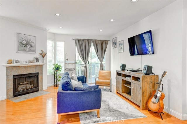 Welcome to this lovely two-bedroom, two-bathroom condominium nestled within the highly desirable gated community of Greenbrier Terraces. Step inside to discover an open and inviting floor plan filled with natural light. The spacious living room features recessed lighting, laminate flooring, and a cozy fireplace, creating the perfect ambiance for relaxation or entertaining. The kitchen is a dream for any home chef, offering ample cabinet space and stunning quartz countertops ideal for cooking and gathering. The primary suite includes a sliding glass door that opens to a large private patio — perfect for enjoying your morning coffee or evening breeze. The ensuite bathroom offers an oversized tub/shower combination and mirrored wardrobe doors. The secondary bedroom is located on the opposite side of the home, providing additional privacy for guests or family members. Additional highlights include an in-unit laundry area and a generously sized detached two-car garage. Residents of Greenbrier Terraces enjoy access to a sparkling community pool and spa. Conveniently located near freeways, restaurants, and shopping. HOA-approved and move-in ready — this home offers comfort, convenience, and style. You’ll love living here!