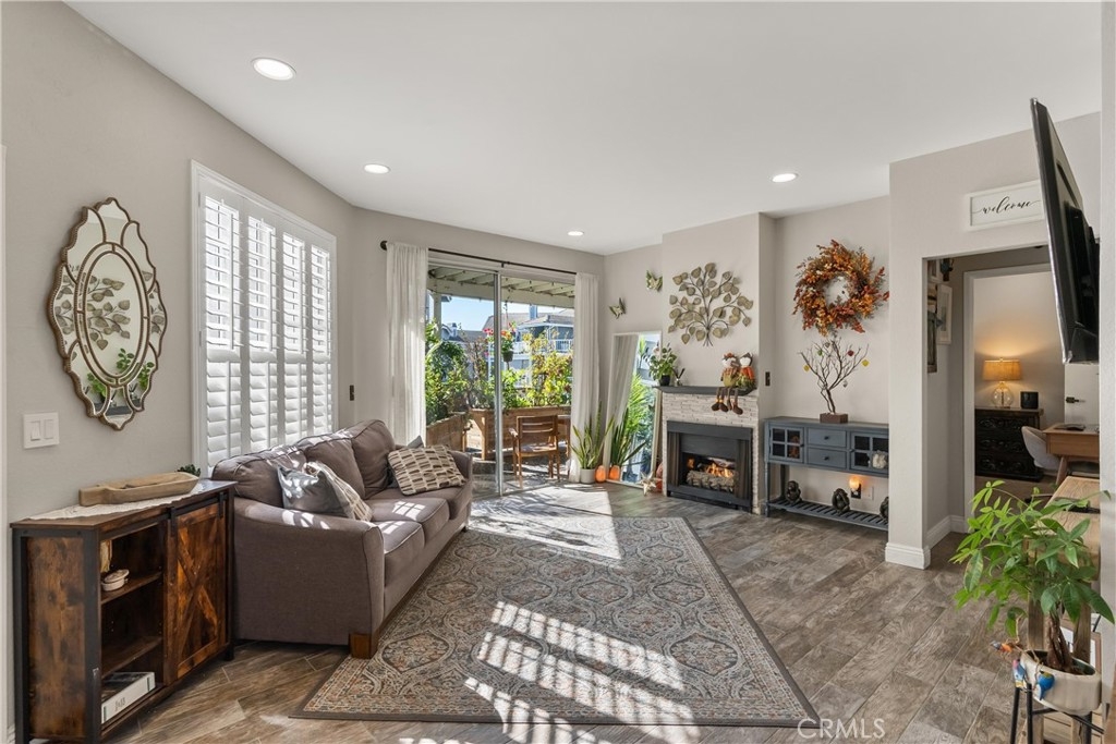 DON'T MISS THE VIDEO TOUR! FHA APPROVED!! Step into this gorgeous, single-level home, nestled in Garden Grove's exclusive GATED COMMUNITY of Greenbrier Terrace. Enjoy the rare conveniences this stunning home has to offer, which includes POOL VIEWS, a 2-car garage, interior laundry, AC, and beautifully remodeled kitchen and baths! The stunning kitchen awaits with quartz counters, custom painted cabinetry, gold hardware, stainless appliances, and a convenient breakfast bar. The stunning bathroom has direct access from the primary bedroom and the living area, and features fully remodeled finishes, beautiful vanities, and a newly remodeled tub/shower. The spacious living room is enhanced by a gas fireplace that leads you to your oversized private patio. Additional highlights include a large primary bedroom with its own fireplace, a generous sized dining area, and so much more! The community features 5 gated entries, 4 pools and spas, plus private parking patrol. The HOA covers water/sewer, trash, and common area maintenance. Perfectly situated near freeways, shopping, dining, parks and schools. This turnkey home is ready for you to move right in!