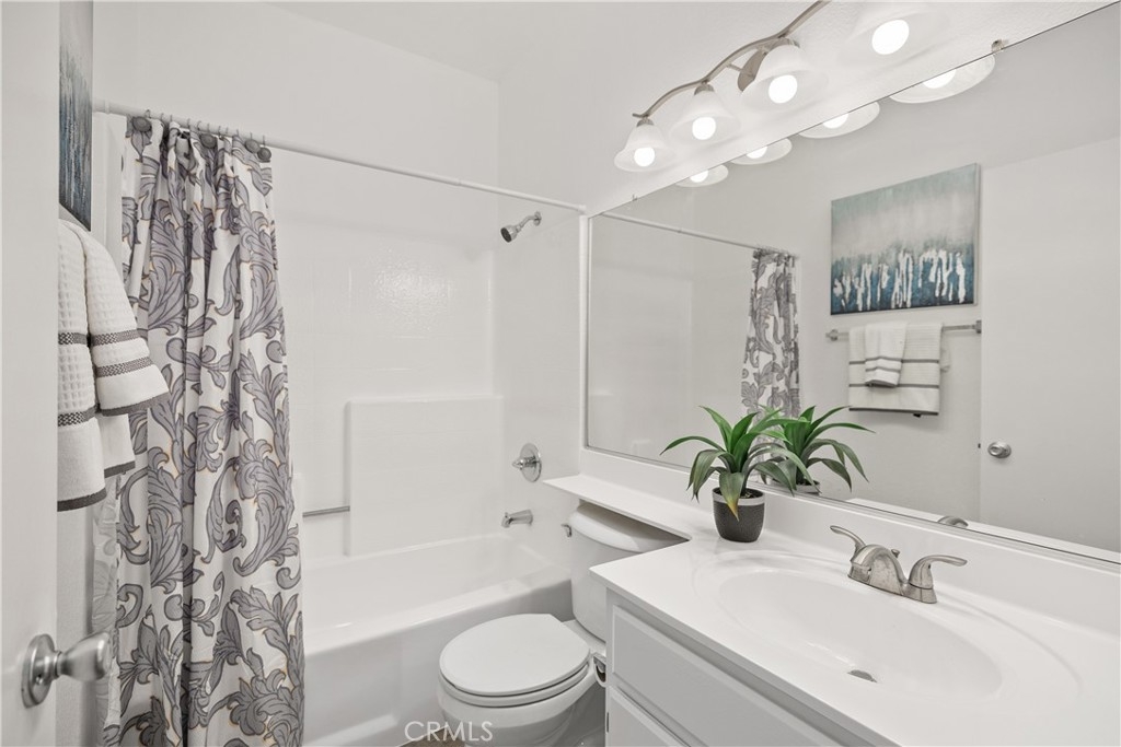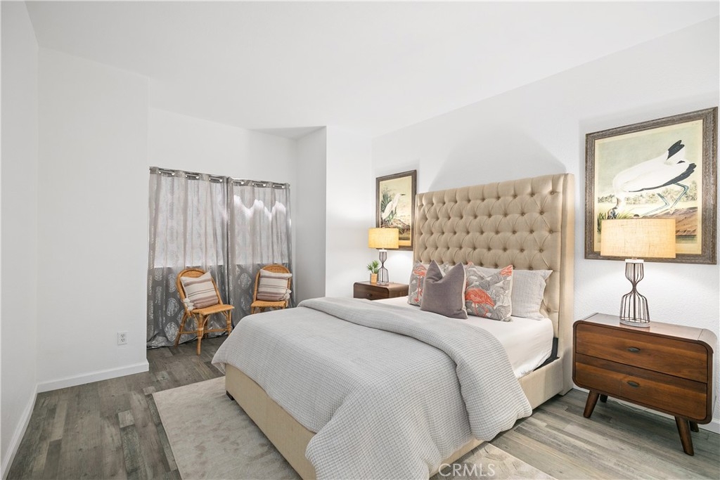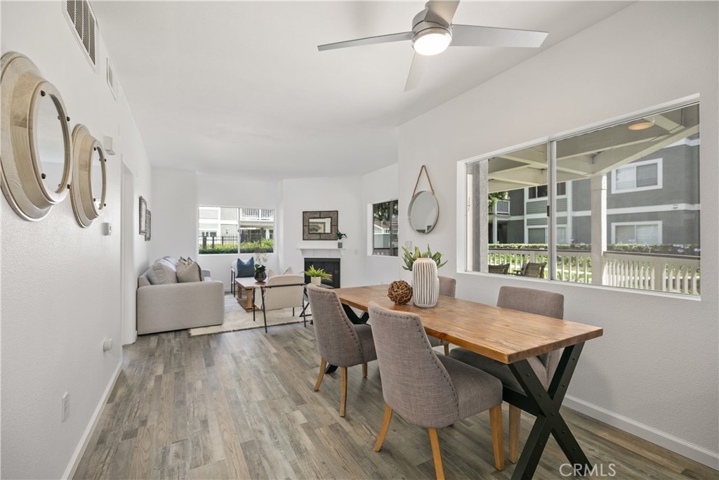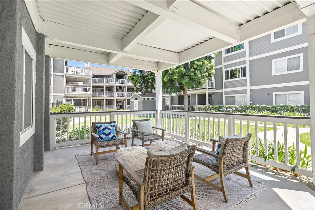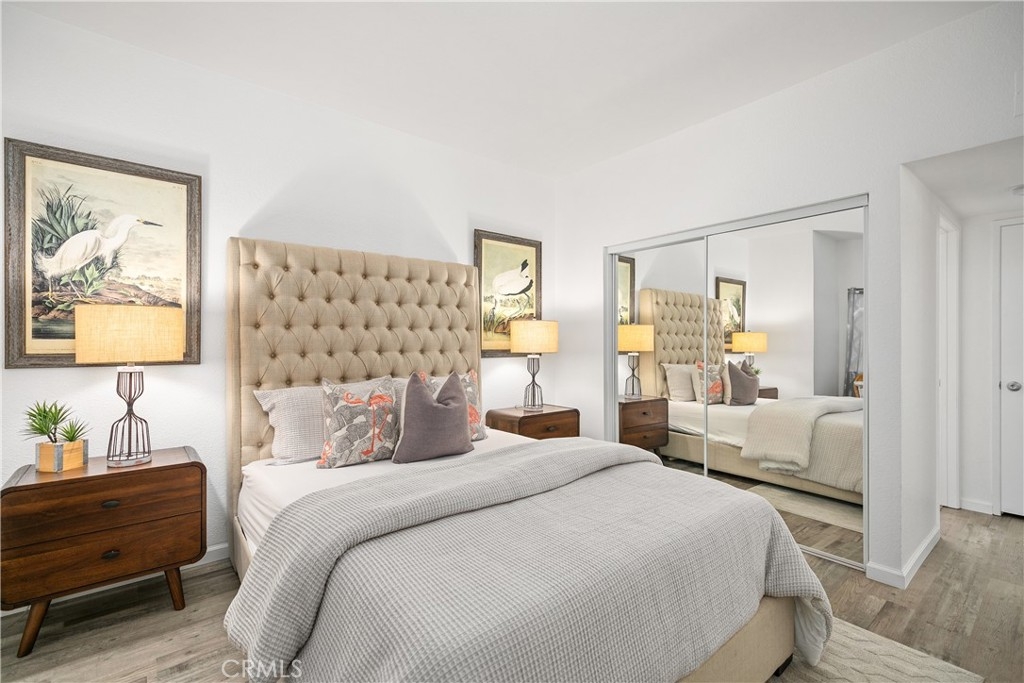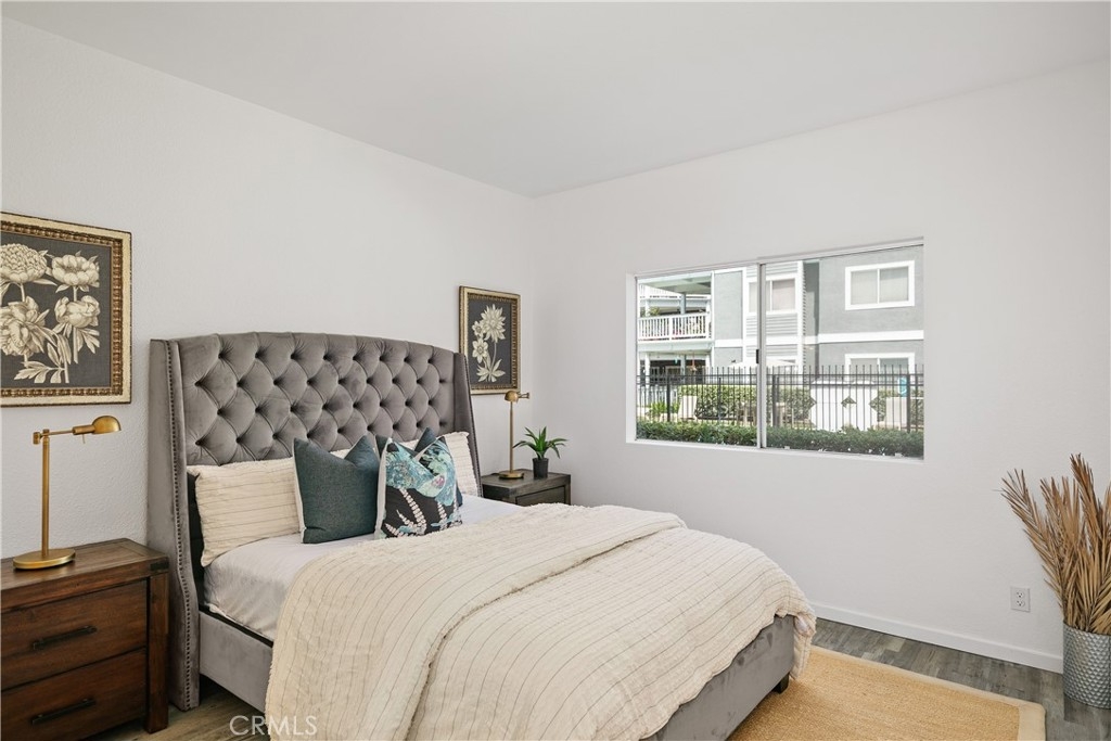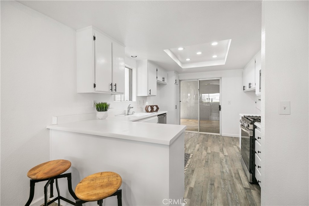 Welcome to this gorgeous, pool-level condominium in the lovely, gated community of Greenbrier Terraces. Ideally located less than a mile from Historic downtown Garden Grove - where the Strawberry Festival happens every Memorial Day weekend! You will feel right at home when you step into this pristine, completely renovated condo. The enormous pool-view patio is the first delightful feature you will see. From there, step into the spacious living room with patio & pool views, and a romantic gas fireplace. Next, the open concept floorplan naturally leads you into the cheerful dining area with landscape & patio views. Then...step into the radiant kitchen - with shiny, new stainless-steel appliances including a gas range, microwave, and dishwasher. The kitchen also offers lots of cupboard space, a pantry, full-size washer & dryer hook-ups, and a sliding glass door to the water-heater storage closet. The multiple, well-placed windows permit abundant natural light to permeate throughout the home. There are two generous master suites. The first has a pool view, a walk-in closet, a separate shower, and a water closet for the commode. The second has a full bathroom with a tub/shower, a large closet with new mirrored doors, and a roomy linen closet. Both bathrooms have reglazed surrounds & sinks, and new faucets & fixtures. Additional upgrades include brand-new gray barnwood-style LVP flooring, scraped ceilings, professional paint, refurbished kitchen cabinets with new handles, reglazed porcelain kitchen sink, new water heater, freshly painted exterior window trim, new screen on fireplace, new ceiling fan in dining room, new front door handle, lock & deadbolt, and new AC coils outside/inside in 2020. The 2-car garage has an automatic overhead door, built-in shelves and is near the unit. The complex provides 4 pools, 4 spas, on-site maintenance, and regular landscaping of the lush grounds. Near Disneyland, shopping, restaurants, banks, schools and more. Welcome to your new home!