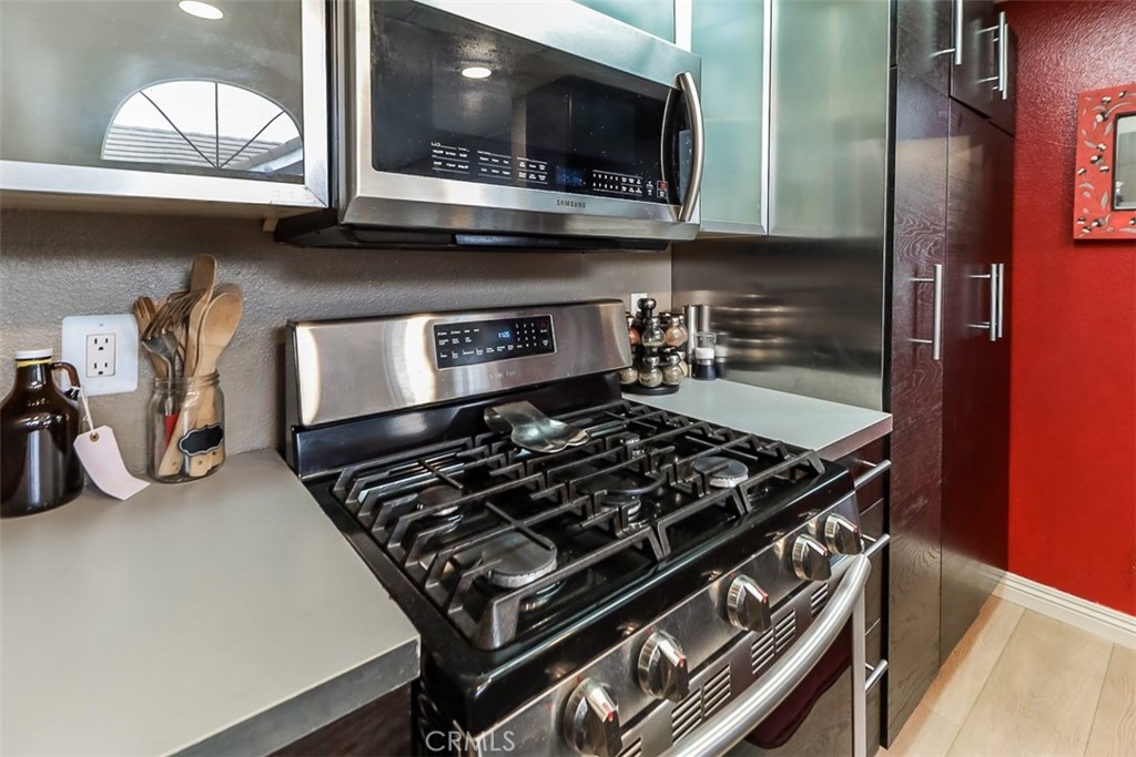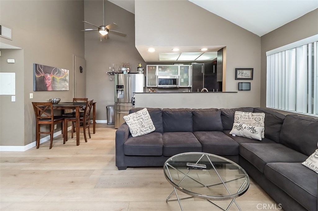 This is a must see for O.C, new water proof flooring, fresh paint, this amazing 2 bedroom 2 bathroom CONDO located in one of the best maintained communities in Garden Grove that's behind a gated community. This top floor condo features high ceilings, upgraded kitchen cabinets, huge additional 200 (plus) square feet storage area (Not included in total living square footage), inside laundry, spacious two car garage with storage cabinet, big patio for those BBQ's. The kitchen/living area is bright with lots of natural light; the pool is a short walking distance from the unit. Two car garage is detached, but also very close to the unit. Perfect for your first time home buyers, or clients looking to down size.