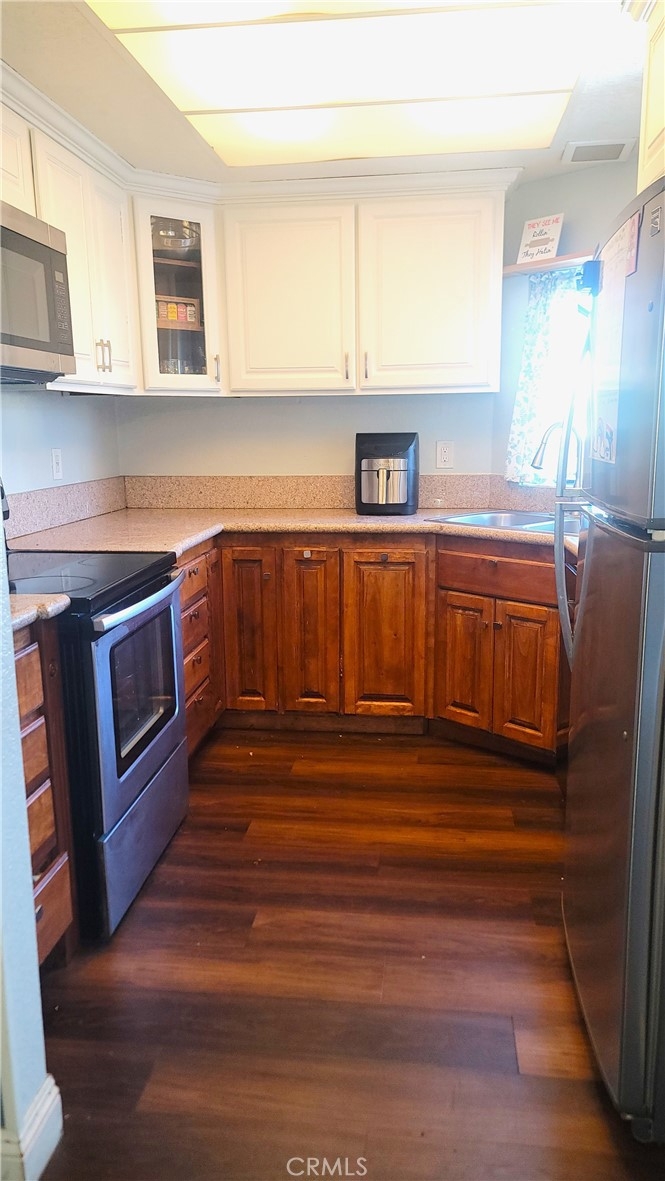 Rare find in Garden Grove "The City Of Youth And Ambition". Beautiful upstairs end unit features 2 bedrooms 1 bathroom with inside laundry, high ceilings, tile and laminate floors. Relax in your outdoor patio overlooking pool and spa. Close proximity to freeways, Disneyland Park, Great Wolf Lodge Water, Honda Center, UCI Medical, dinning at every level, and much more...FHA approved complex.