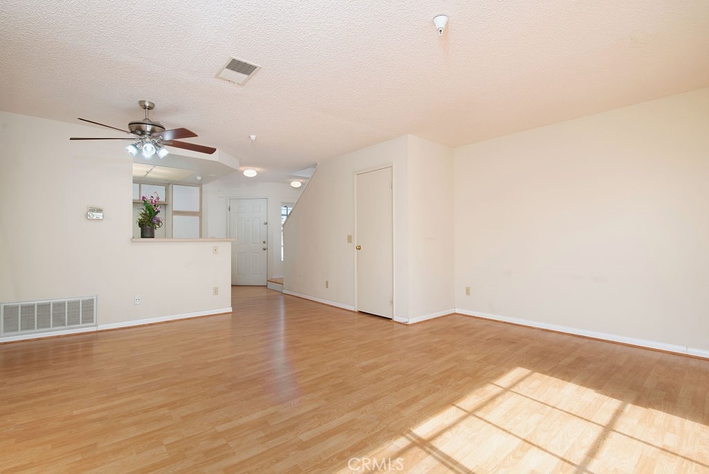 End unit, 2 bedrooms townhouse style. Dining area connects with spacious living room w/ direct access to bright/private/spacious balcony. Spacious new living room seamlessly connects with the kitchen, breakfast bar and other living areas. There is a convenient upstairs, in-unit laundry area w/ stackable washer/dryer, easily accessible from both bedrooms with new wood floor. The unit is located in safe-family oriented neighborhood with underground gated parking (2 parking #53) and ample guest parking. It's also conveniently located within walking distance to Garden Grove high school, Garden Grove Public Library, Police Station and is a short driving distance to 22 & 5 freeways. HOA includes water/trash.