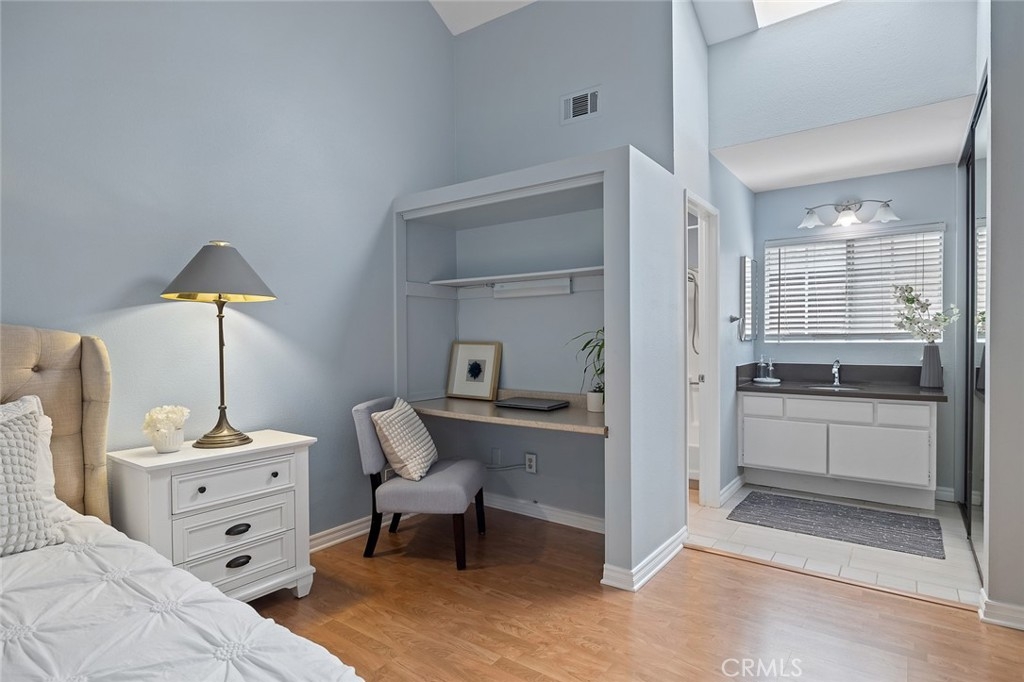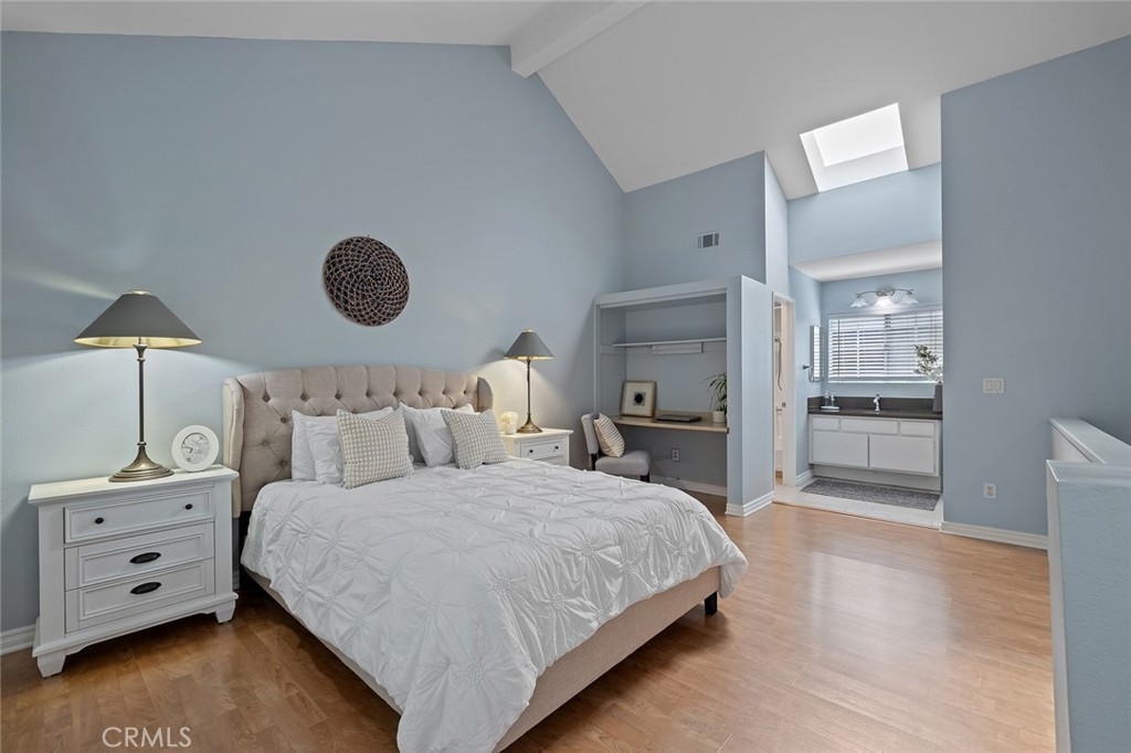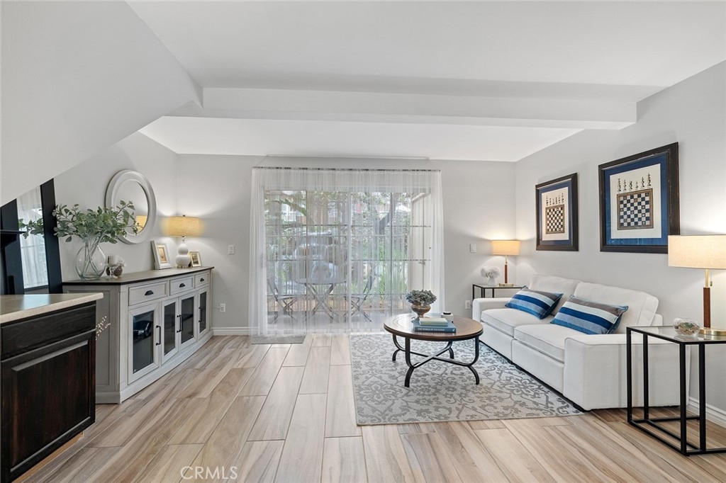 This beautifully remodeled Lake Grove home is located in the heart of Garden Grove. This home has been tastefully remodeled, with a resort-inspired feel, offering a perfect blend of everyday comfort and luxury living. Boasting of an open floor plan, meticulously maintained and thoughtfully upgraded throughout. Featuring remodeled kithchen and bathroom, wood look tile flooring, new interior paint, dual-pane windows, and central air and heat for year-round comfort. Enjoy the convenience of having your own in-unit laundry and a private patio with peaceful views of the community stream with waterfalls, creating a serene outdoor retreat. The home also features neatly concealed wiring along the baseboards for a clean, streamlined look. The grand primary bedroom is a standout, featuring soaring cathedral ceilings and its own private balcony, adding both charm and a sense of openness. Move-in ready and located in a tranquil community, this home offers a wonderful blend of comfort and style. Best of all, HOA includes Water and Trash. Close to highly rated schools, Little Saigon, shops, restaurants, with easy access to freeways. It's an opportunity you don't want to miss! Come and see this home today!