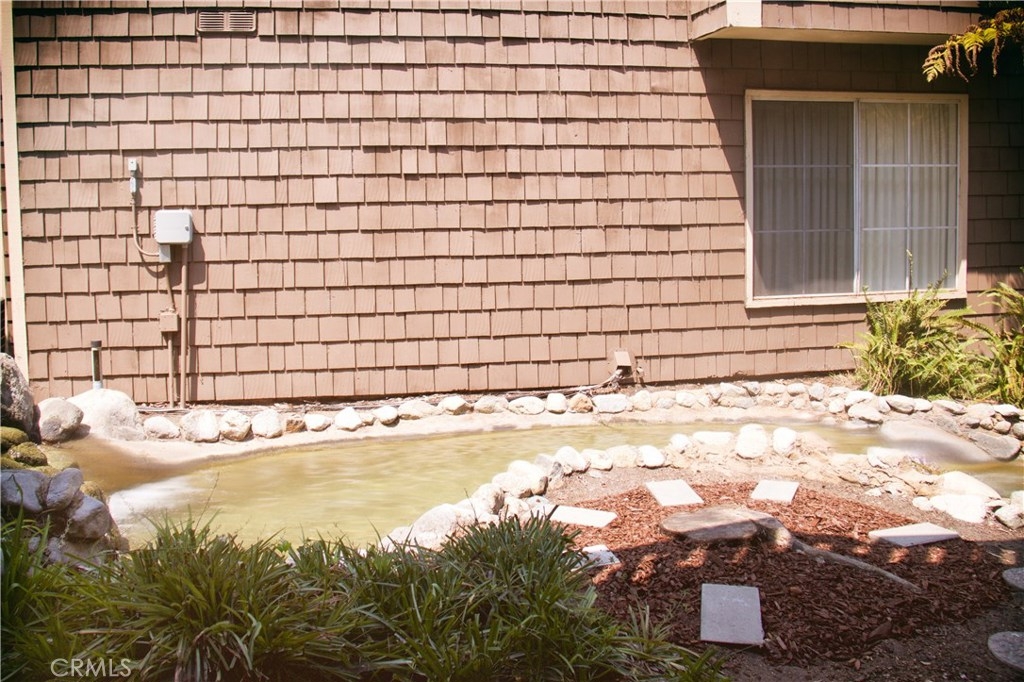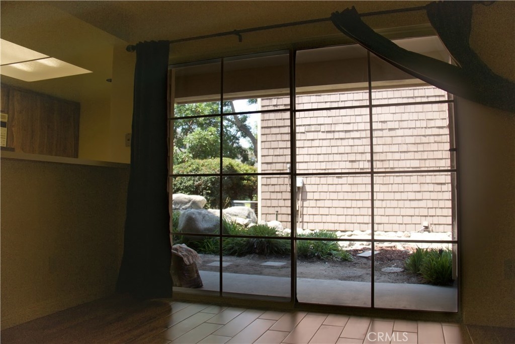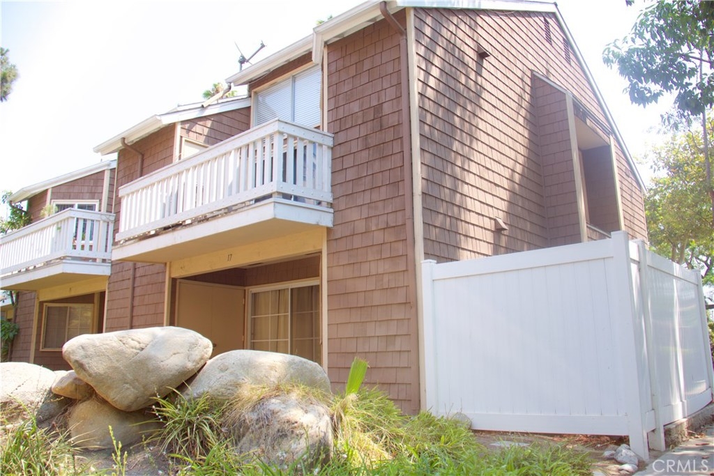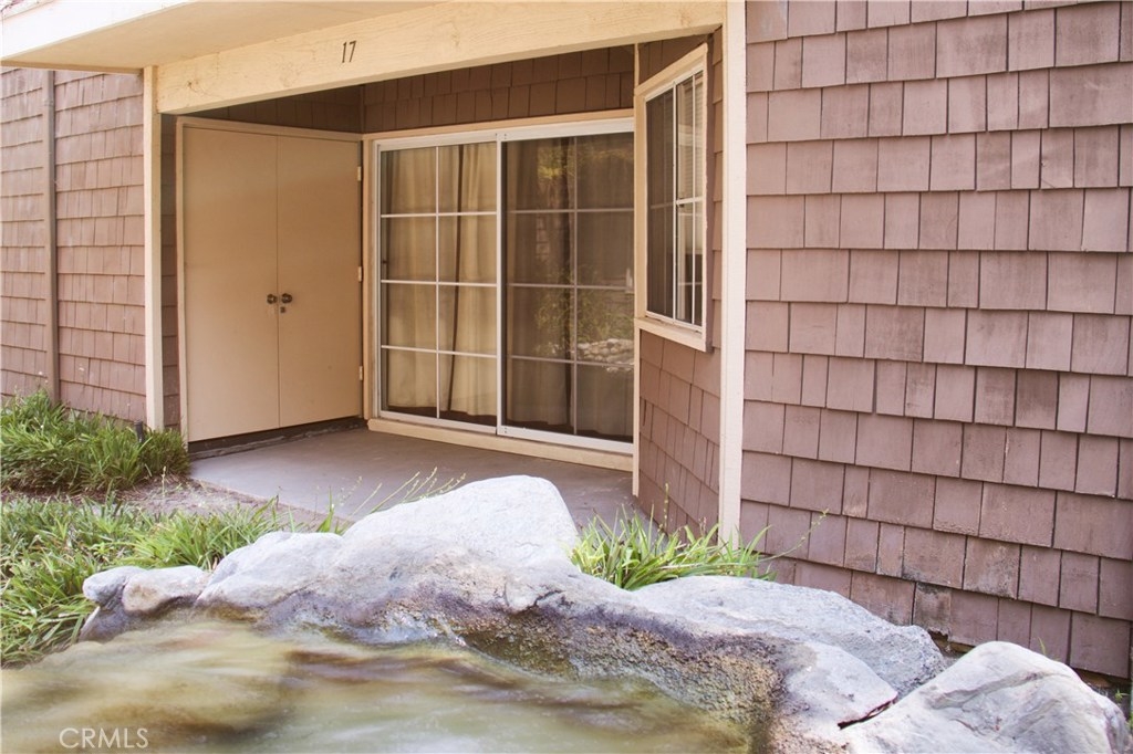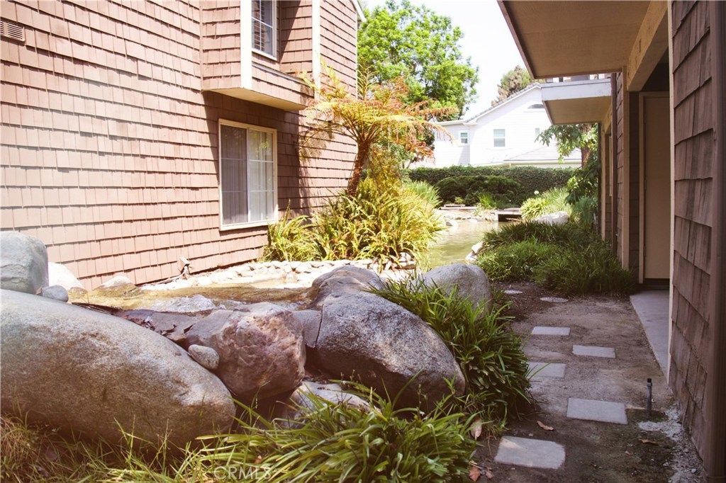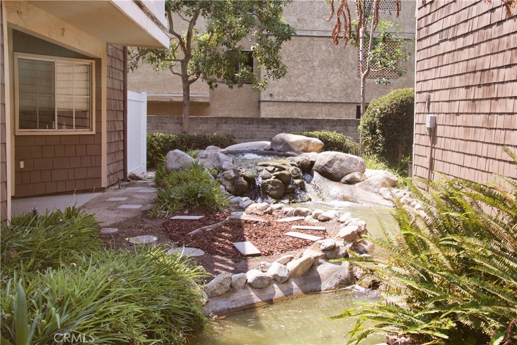 Lower level corner end unit condo in the gated community of Lake Grove. Tile in the living room, dining room, kitchen, and bathroom. Laminated floor in bedroom with mirrored closet doors. View of water stream from the kitchen, and living room. Separate laundry closet and private patio. Two-car detached garage nearby with 2 additional storage closets within. It is located near city hall, city park, Coastline Community College, and freeways. The 2-car garage location is #108.