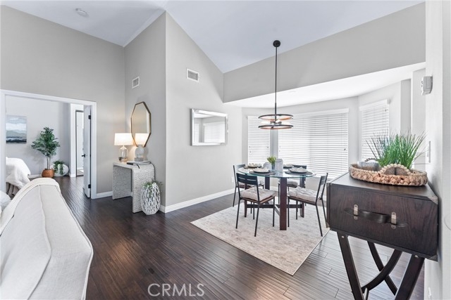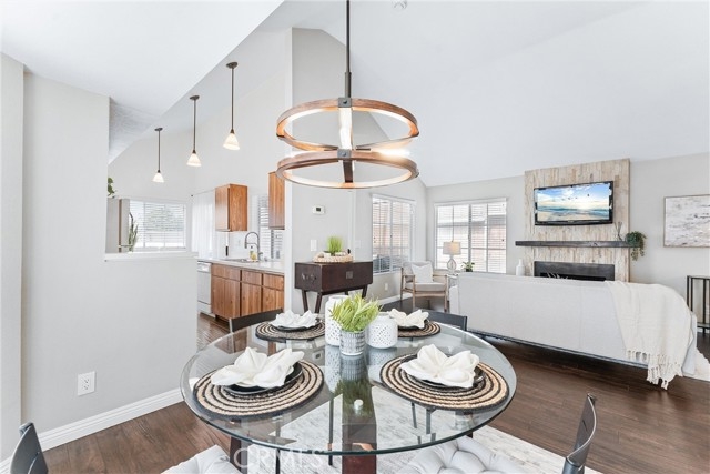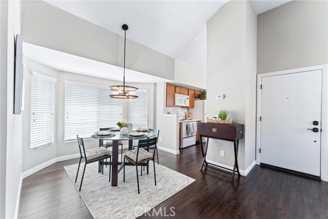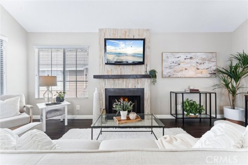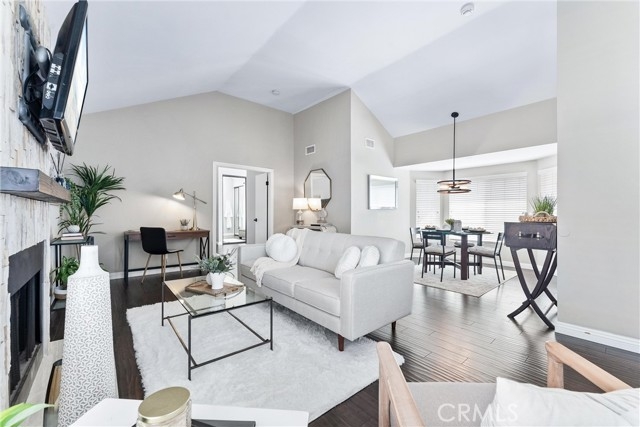 STYLISH CONDO GEM !Located in a tranquil area 0f Lake Grove. This condo offers a peaceful retreat w/ modern amenities. As you enter, you are greeted by laminate flooring that runs seamlessly throughout the entire space, offering durability & easy maintenance. Natural lights streams in through the large window offering view of the balcony from the living room. Living room cozy yet spacious enough for a comfortable sofa set, a coffee table & an entertainment center if desired. Highlighted by showcasing a fireplace w/ a stacked stone feature wall & a custom wood mantle, creating a warm & inviting atmosphere. The bedroom, located off the living room, comfortably fits a king-sized bed & includes a sizable closet w/ shoes cubbies & shelving, maximizing space efficiency. A large window in the bedroom allows for plenty of natural light. The bathroom is conveniently located near the bedroom & living areas, offering a bathtub/shower combination, a vanity w/ storage space underneath, & a toilet. The dining area is ideal for enjoying meals & small gatherings. The kitchen is situated at the end of the main living area. It is equipped with all the essentials for cooking & meal preparation, including ample counter space & storage in shaker-style vanity cabinets. At the end of the kitchen is a versatile area that can be use as a study area or casual dining. Front door off the living room, leads you onto a private balcony. This outdoor space is perfect for enjoying fresh air and relaxation, with enough room to set up a sitting area. This sets this balcony apart is its integrated laundry area, equipped w/ connections for a washer & dryer. This feature is not only convenient but also mitigates the risk of water damage inside the condo if a washer were to leak. The new AC system was installed in 2018 ensures comfortable temperatures year-round, complementing the efficient heating system already in place. Additional unit specific, Hot water shut off valve has been installed for emergency water leak in the unit. Conveniently located detached two-car garage nearby, providing secure parking & 2 extra storage space for other belongings. In summary, this one-bedroom, one-bathroom condo with a balcony, integrated laundry area, and detached two-car garage offers a blend of comfort, functionality, and practicality in a serene community combined with resort style feel. HOA includes water & trash. Excellent location near shopping, entertainment, Costco, etc. DON'T MISS OUT!