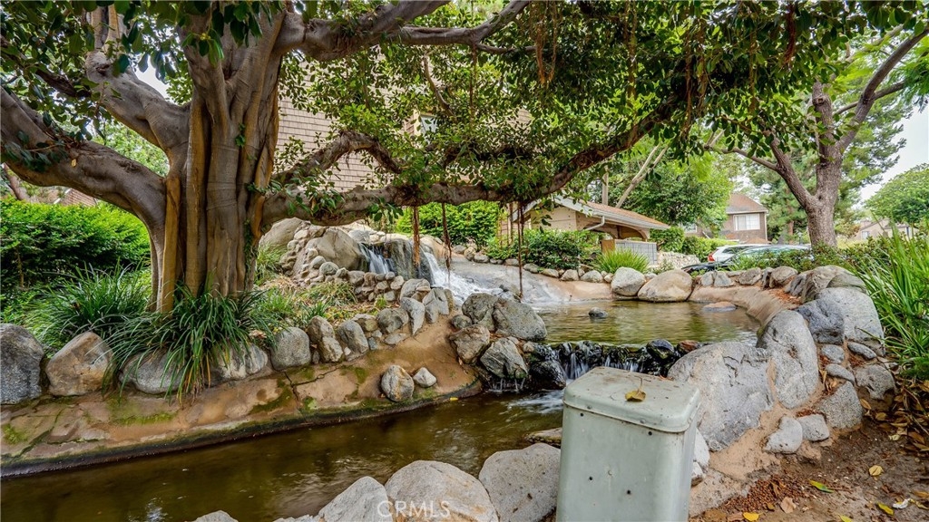 Welcome! Beautiful townhome style 1 bedroom, 1 bath unit sitting in the well desired a beautifully landscaped, gated community, in the heart of downtown Garden Grove. Features include Community Pool and Spa, Lush Landscaping with Waterfalls, Creeks, Walking Paths and Lush Landscaping. This unit has an open living space with lots of natural light, high ceilings, and a kitchen with windows looking out to the front, allowing more natural light. Kitchen opens to a spacious dining and living room area with a gorgeous view of the outdoor landscaping. Living room has a glass slider which opens to the back patio where you can sit with your morning coffee and watch the ducklings and the many species of birds while listening to the splashing of the water falls. Outdoor closet houses the full sized washer and dryer. Upstairs is an extra large open bedroom. Wonderful views can be joyed from the quaint balcony outside the bedroom door. Bathroom has tub and shower combo, nice sized vanity with skylight for that added natural light and a large walk-in closet. The home also has Central Air & Heat and a detached 2 car garage with extra storage. This home is conveniently located close to Shopping and Restaurants with easy access to the 5, 55, 57, 91 and 22 Freeways. Association Fees cover Water & Trash. * * HURRY ! WON'T LAST FOR LONG !!