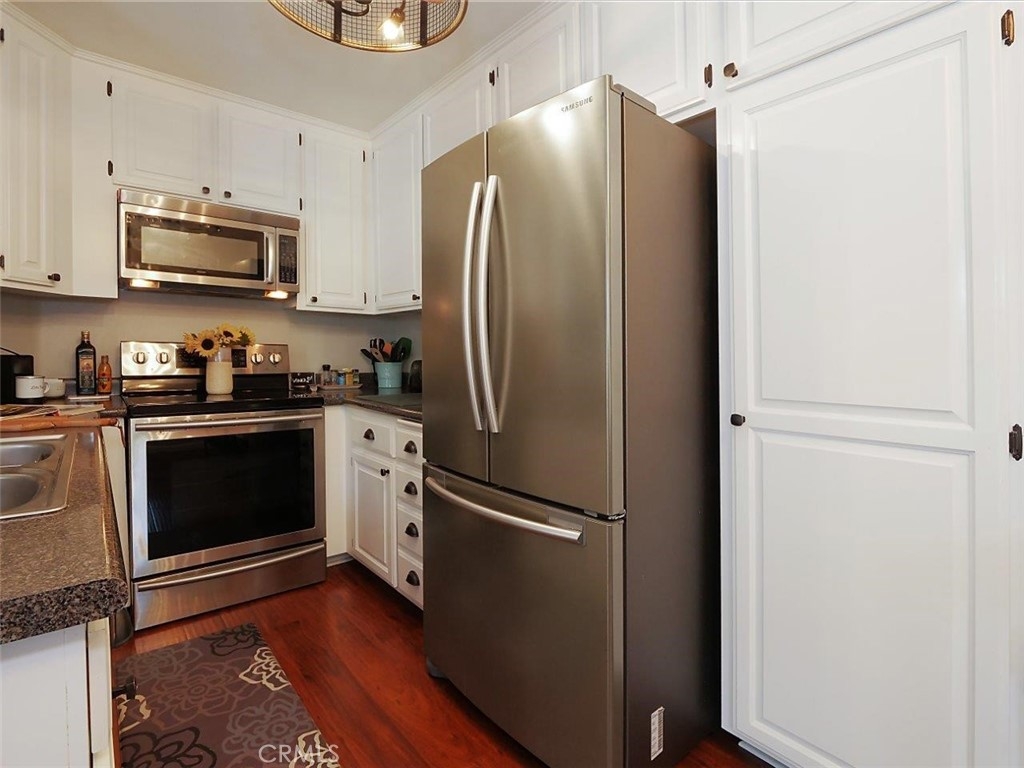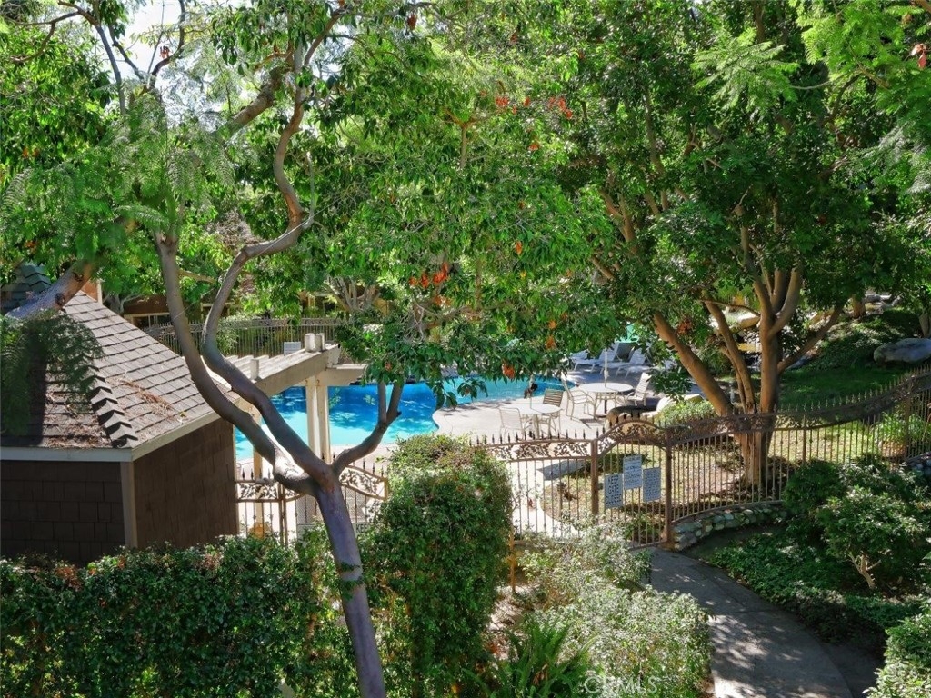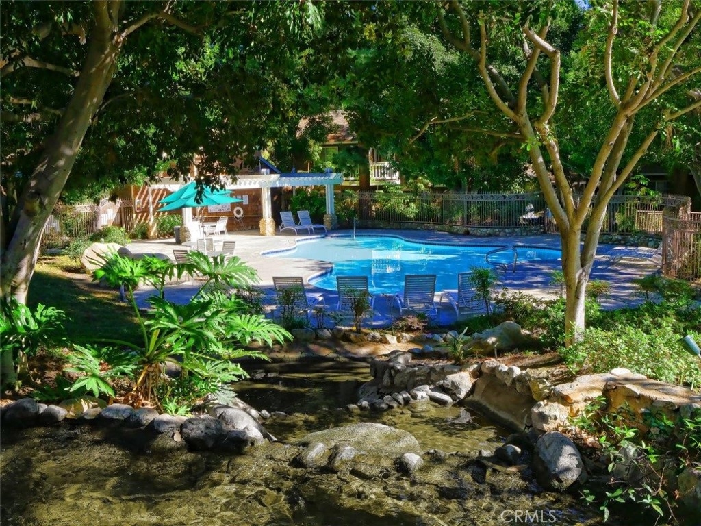 If you want a totally turn key condo in a gorgeous complex with waterfalls, ducks, and calming streams this place is for you! Top floor unit with high ceilings and lots of windows is light, bright, warm and inviting. Walk into the generous family room complete with wainscoting that opens onto a large, bright, private and expansive balcony that is overlooking the streams, trees and pool area. You will find full sized laundry is a closet out on the balcony for convenience and ease of use. The eat in kitchen has been updated and has Bosch stainless steel appliances, new cabinet hardware, new lighting fixtures. Durable laminate flooring in the living areas is easy to care for. The hall bath has been remodeled with new vanity, tile, fixtures and toilet. A new nest thermostat has been installed for energy efficiency. The entire HVAC system has been gutted and replaced including the duct work. There is a hot water shut off that has been installed just for this unit. If ever you need to turn off the water, you don't have to clear it with the HOA because your unit is separate from the rest of the complex because of this special shut off. New battery backup garage door opener so that if there is a power outage, you won't have trouble getting in and out of your private 2-car garage. Two generously sized bedrooms are located at the end of the hall. Master bedroom has an ensuite bath complete with vanity area. Freeway close and great convenient central location near everything: Historic Downtown Main Street, the Strawberry Festival at Euclid Park, the GEM Theatre/Amphitheater, coffee shops, SteelCraft outdoor urban eatery, Duck Donuts made-to-order, the Civic Center & public library, GGHS, more great restaurants, shopping, retail, food and fun! Everything is waiting for you here! Garden Grove school district. See it soon because it won't last! Complex appears to be FHA approved. Contact your lender to verify.